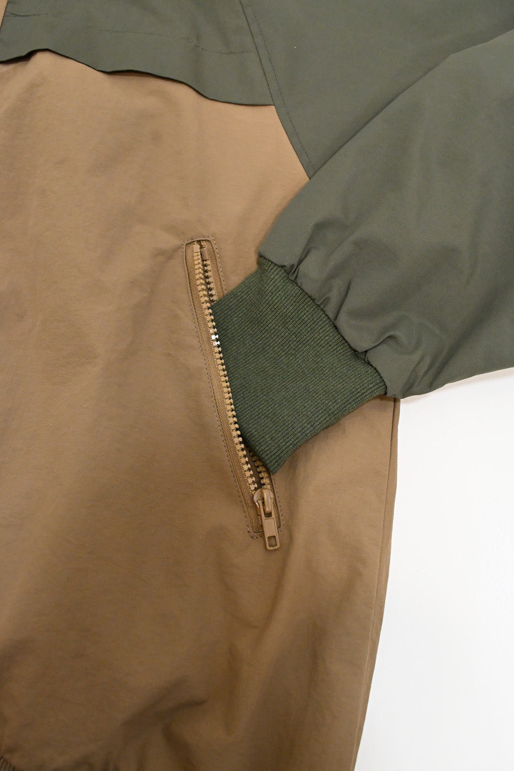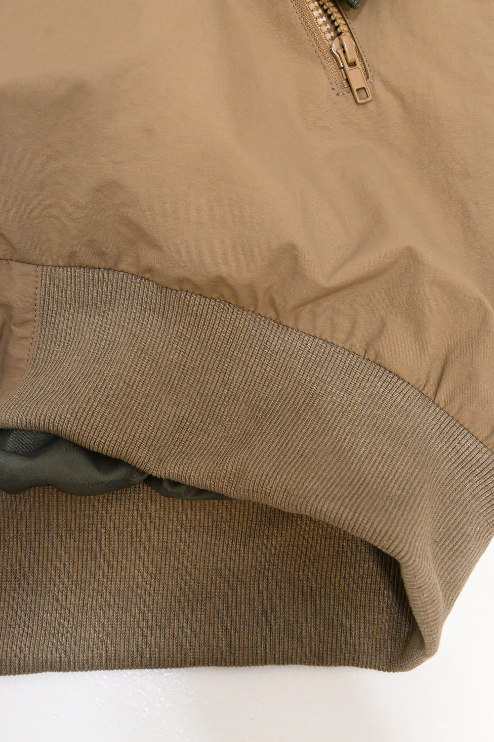 袖口と裾はリブ仕様で風の侵入を防ぎ、薄手の裏地付きで保温性と軽さを両立します。