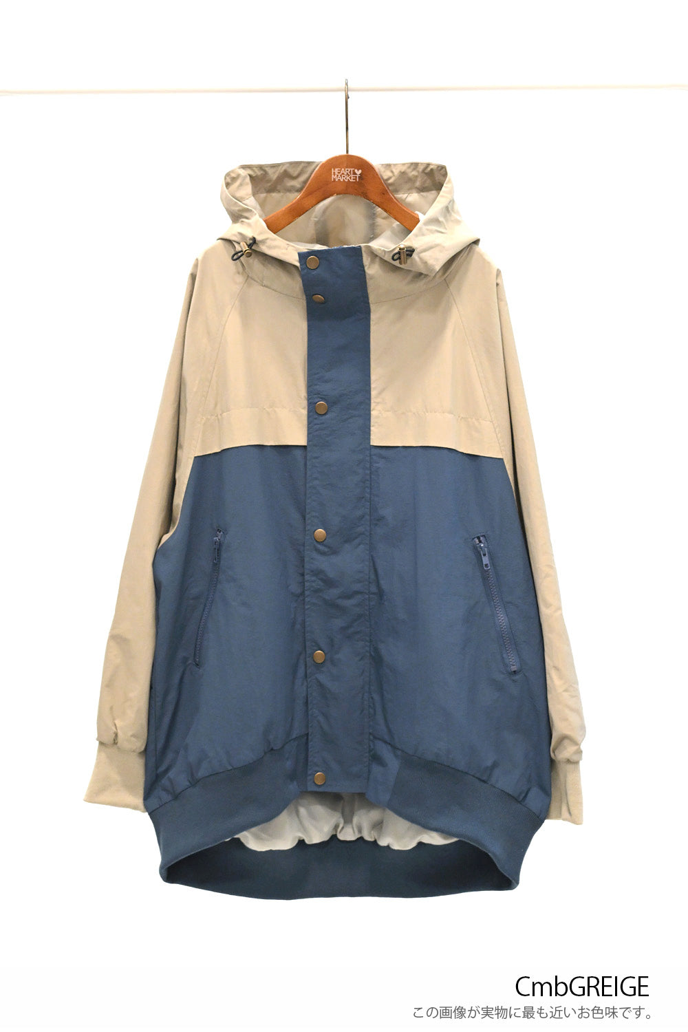 フロントはファスナーとドットボタンのW仕様。