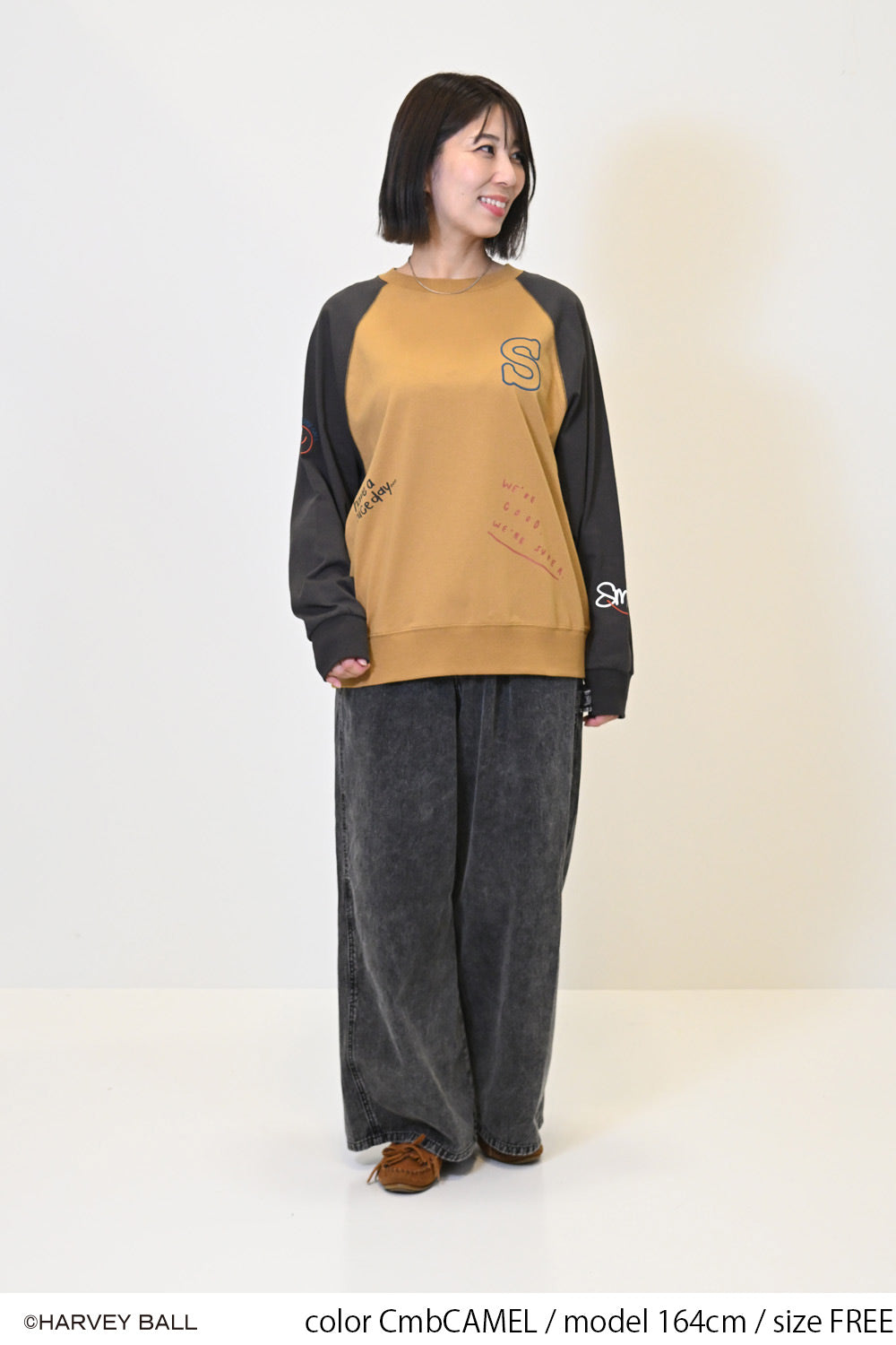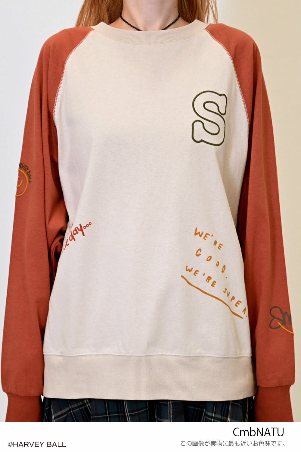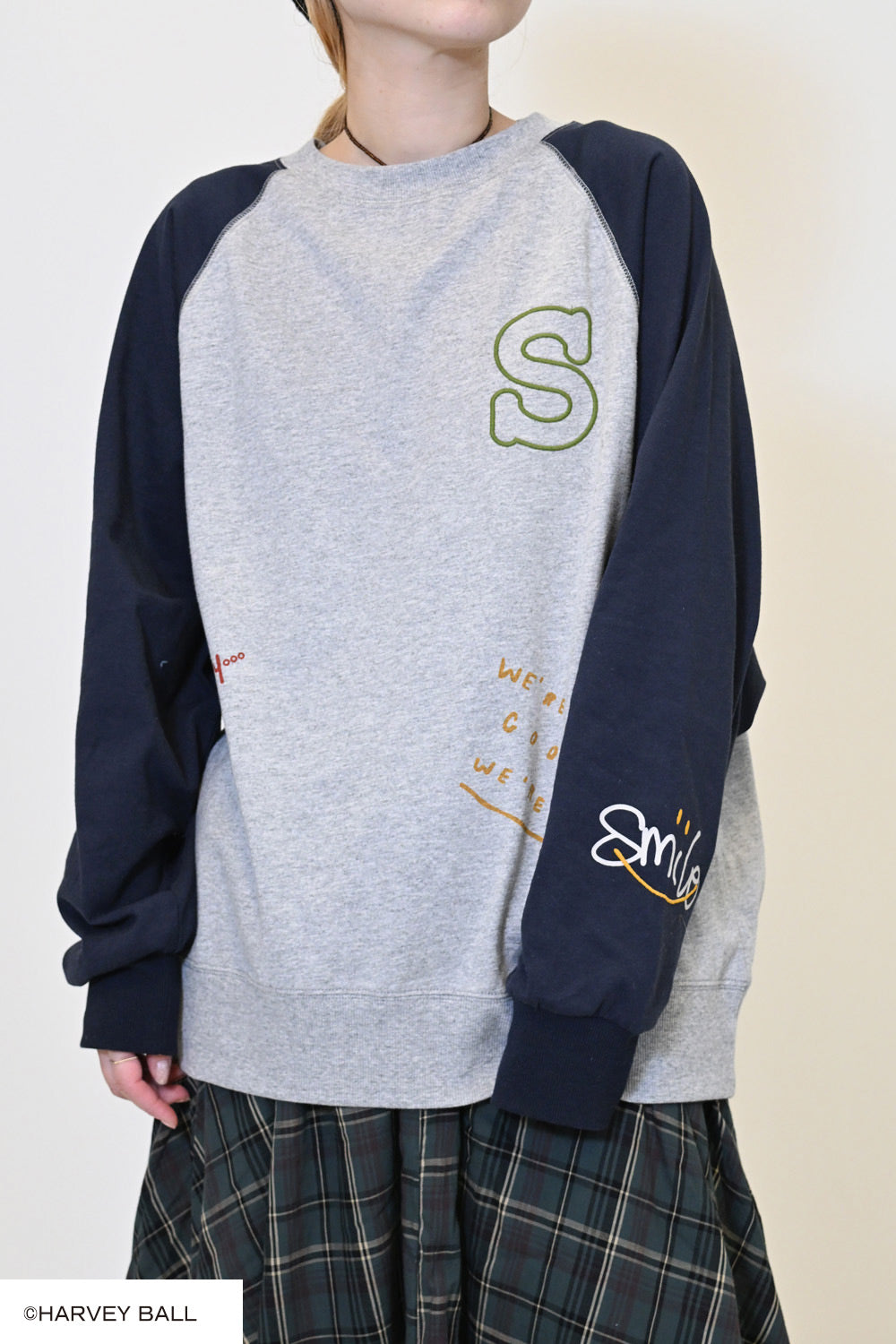 Sの刺繍がポイントの配色ラグランプルオーバーです。