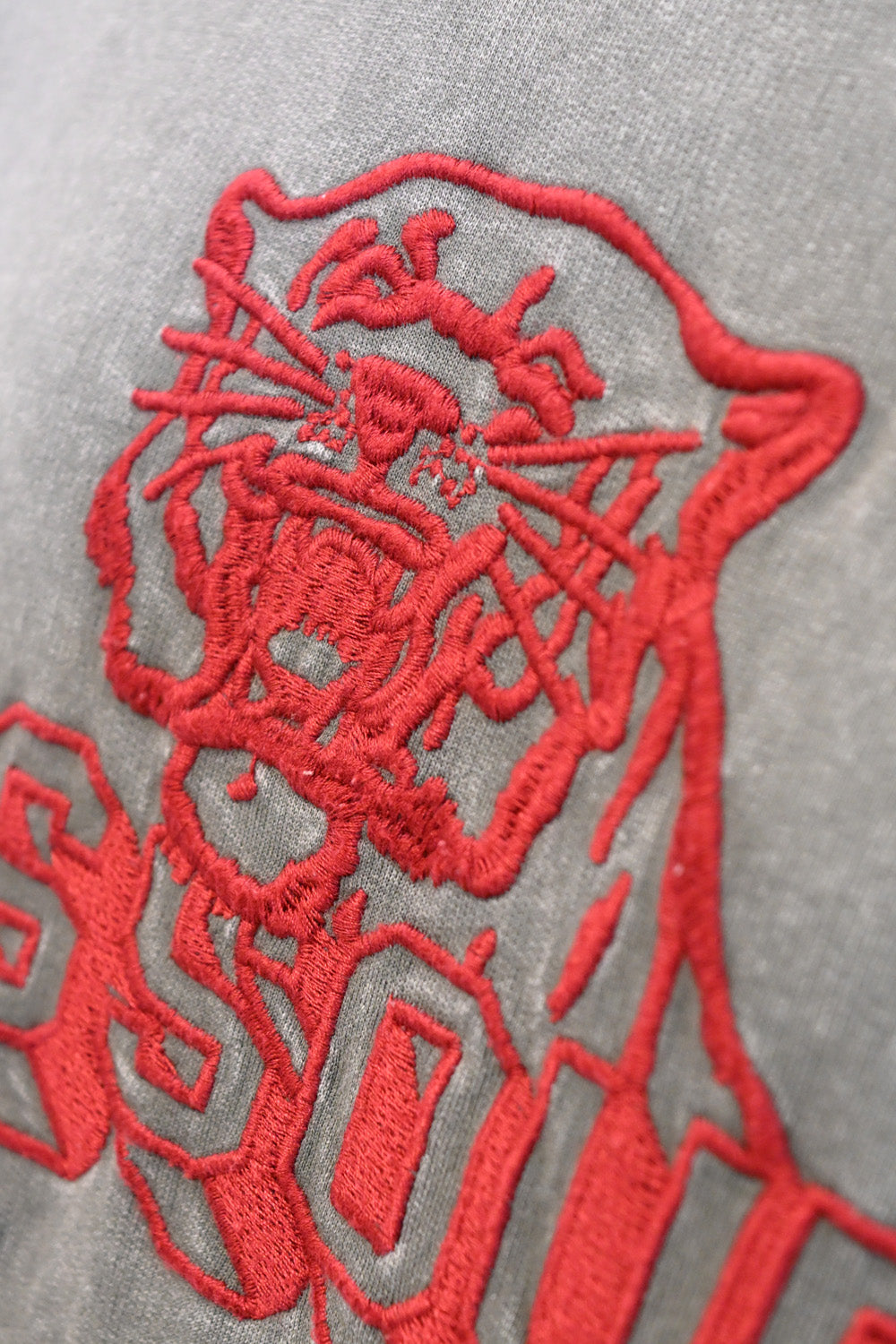 インパクトのあるトラやロゴは刺繍仕様で、袖には異素材が使用されており、価値観も高まります。