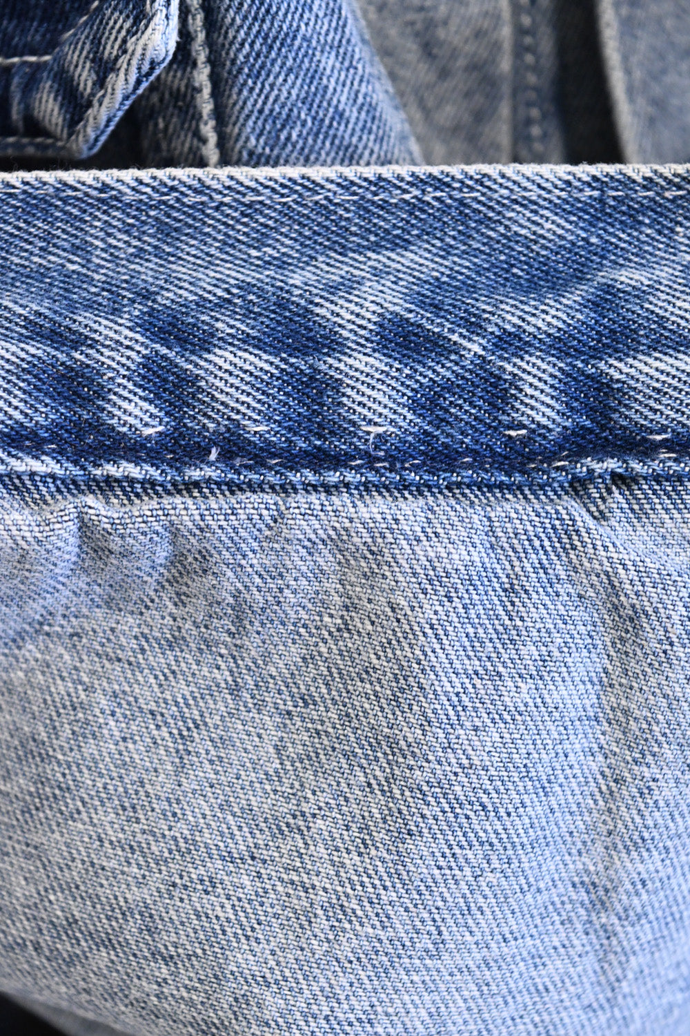 綿100%のしっかりとしたデニム生地を使用し、丈夫で長く愛用できます。