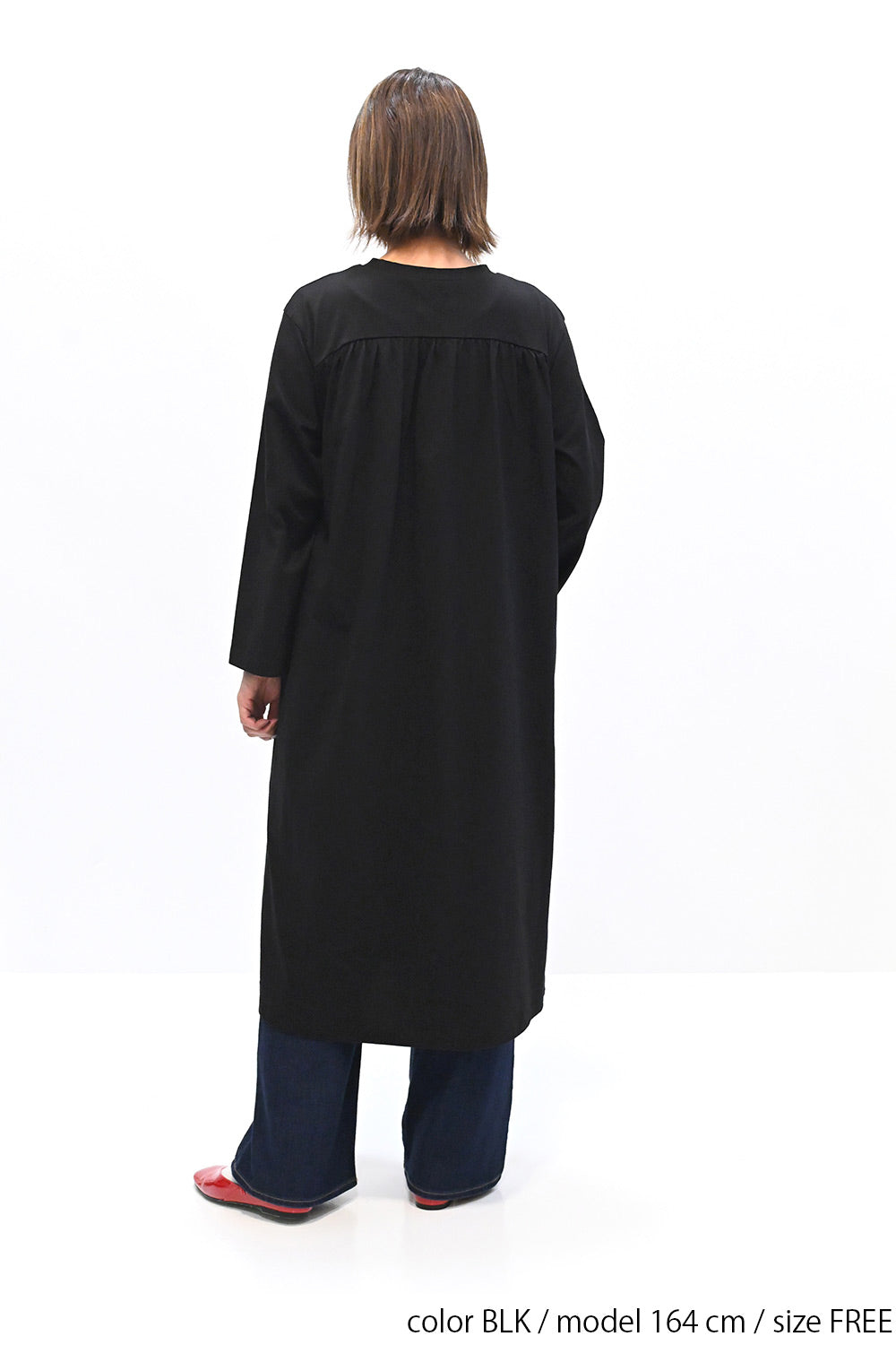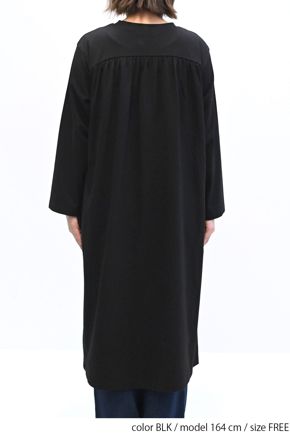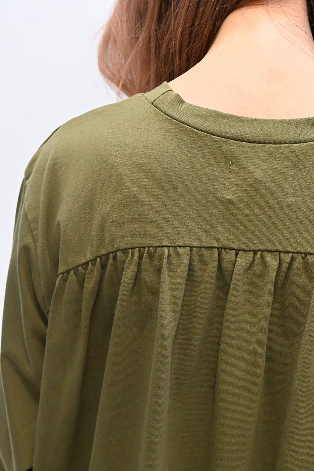 背面にはギャザーを施し、立体感のあるバックシルエットに。