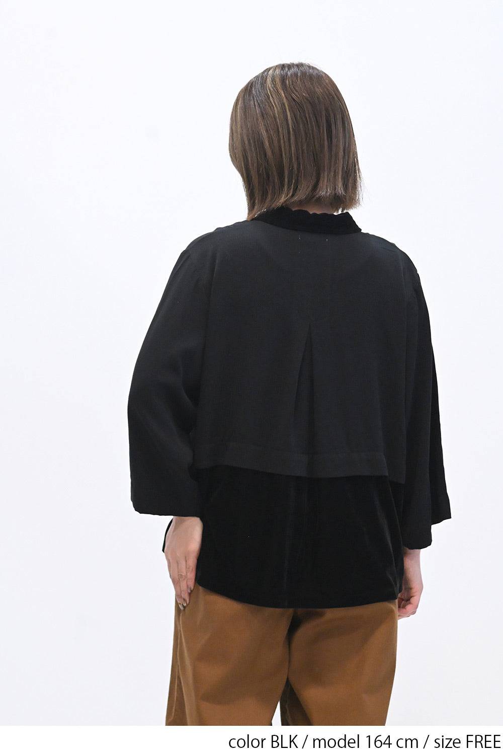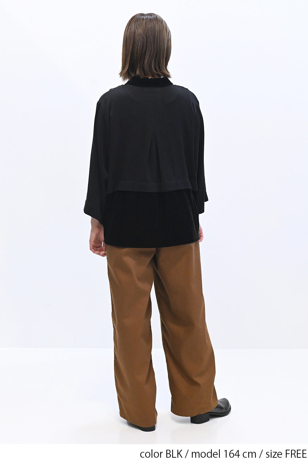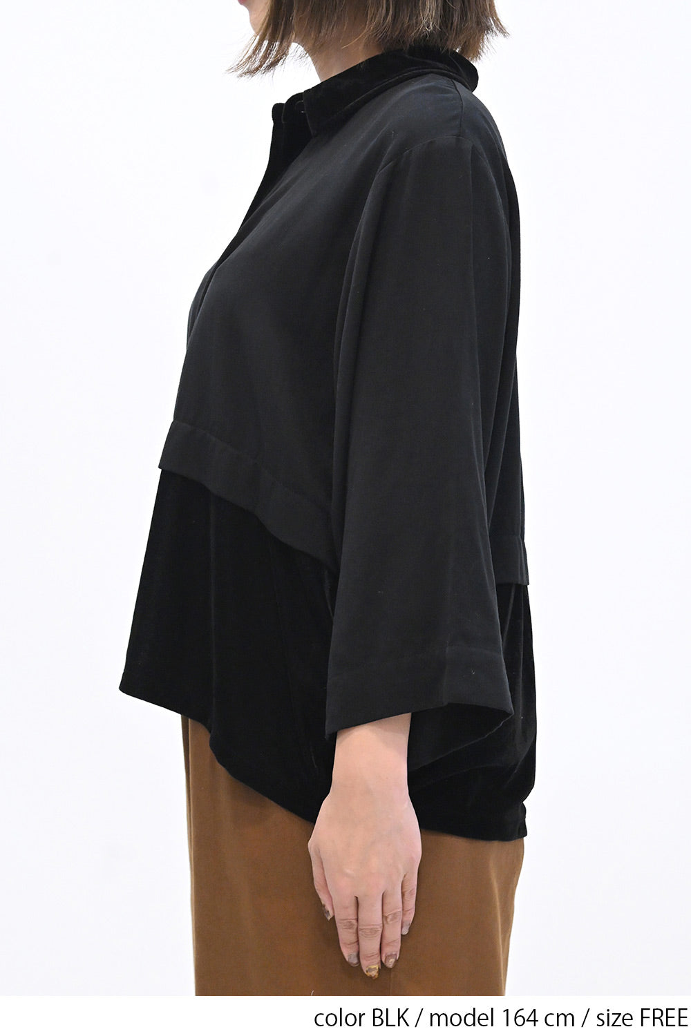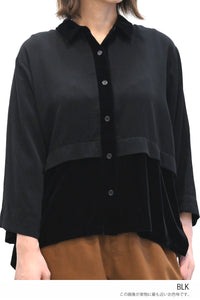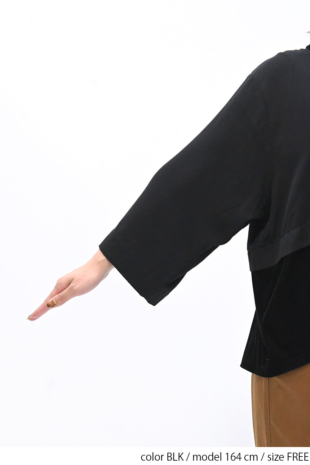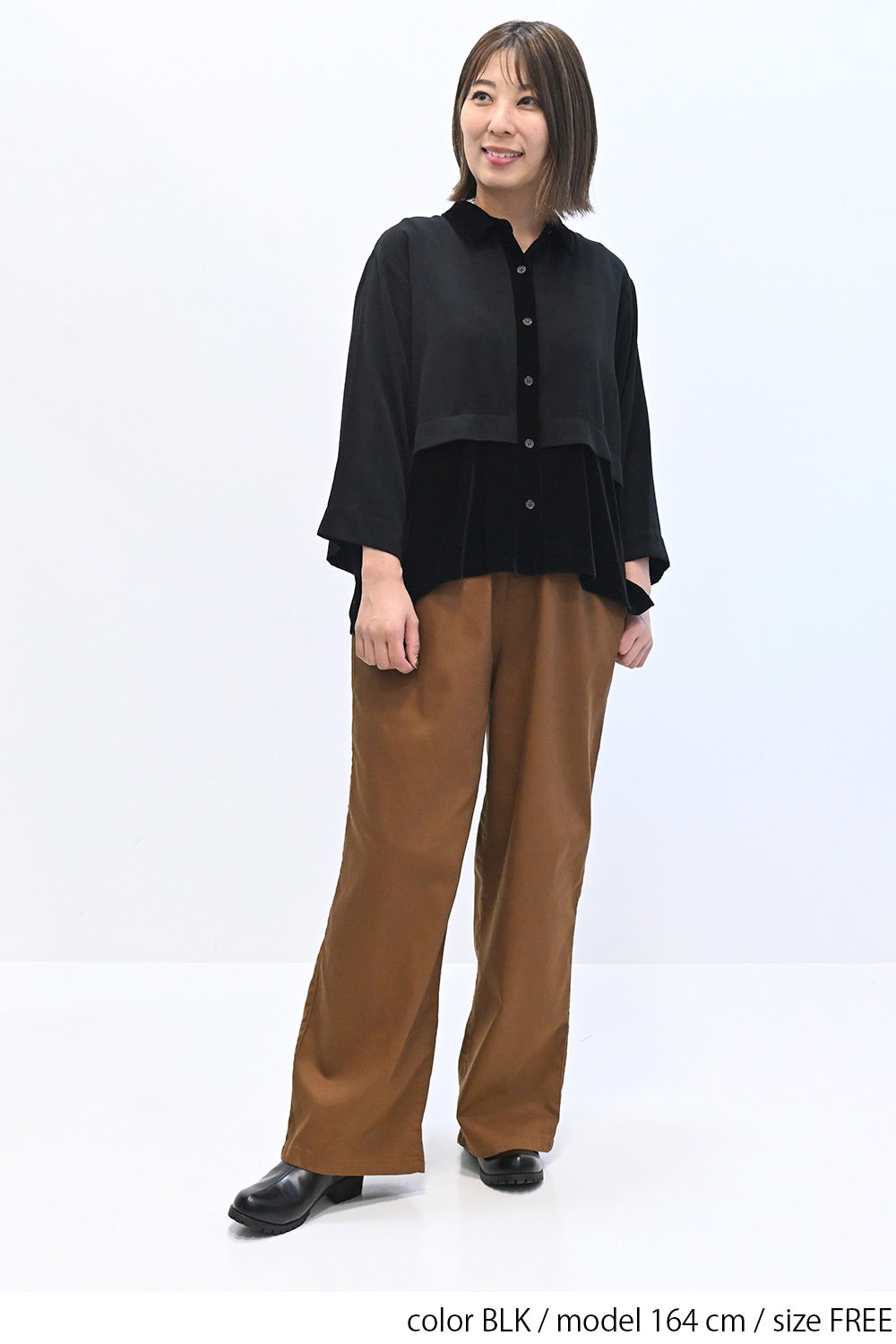 カットベロアを切り替えた、秋らしい雰囲気漂うワイドブラウスです。