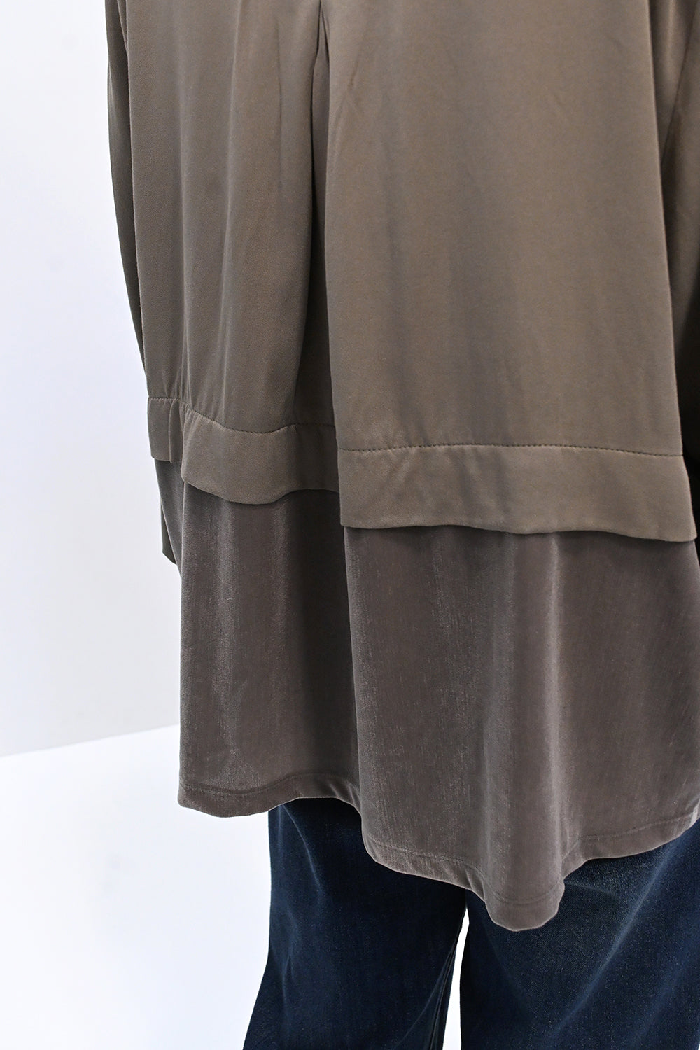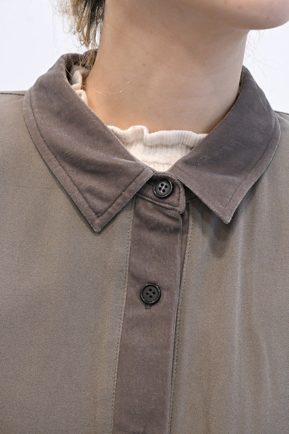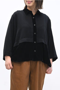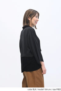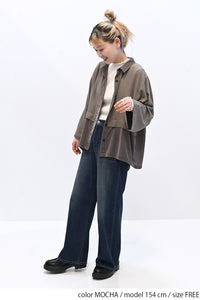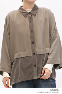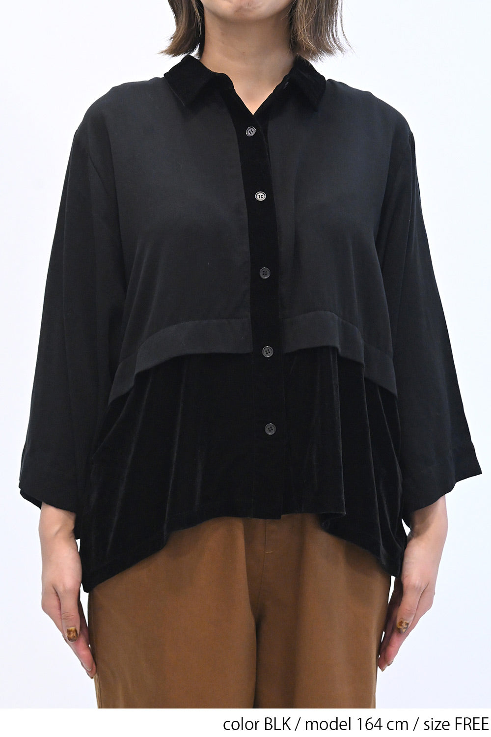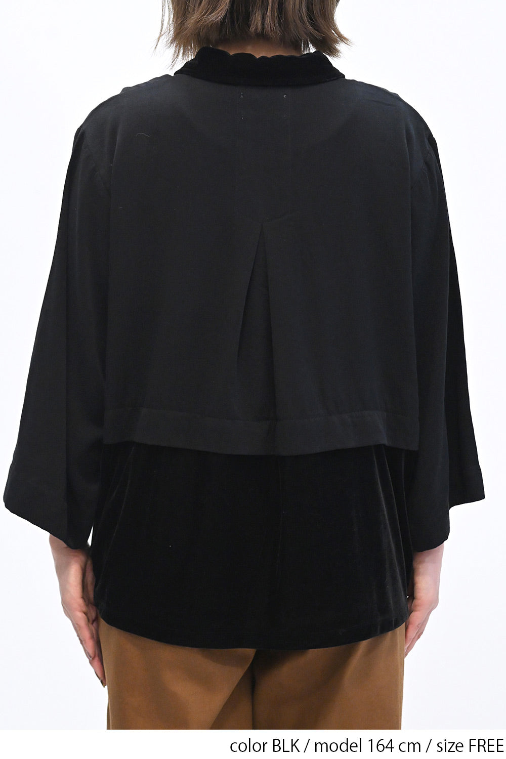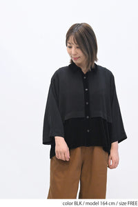 カットベロアを切り替えた、秋らしい雰囲気漂うワイドブラウスです。
