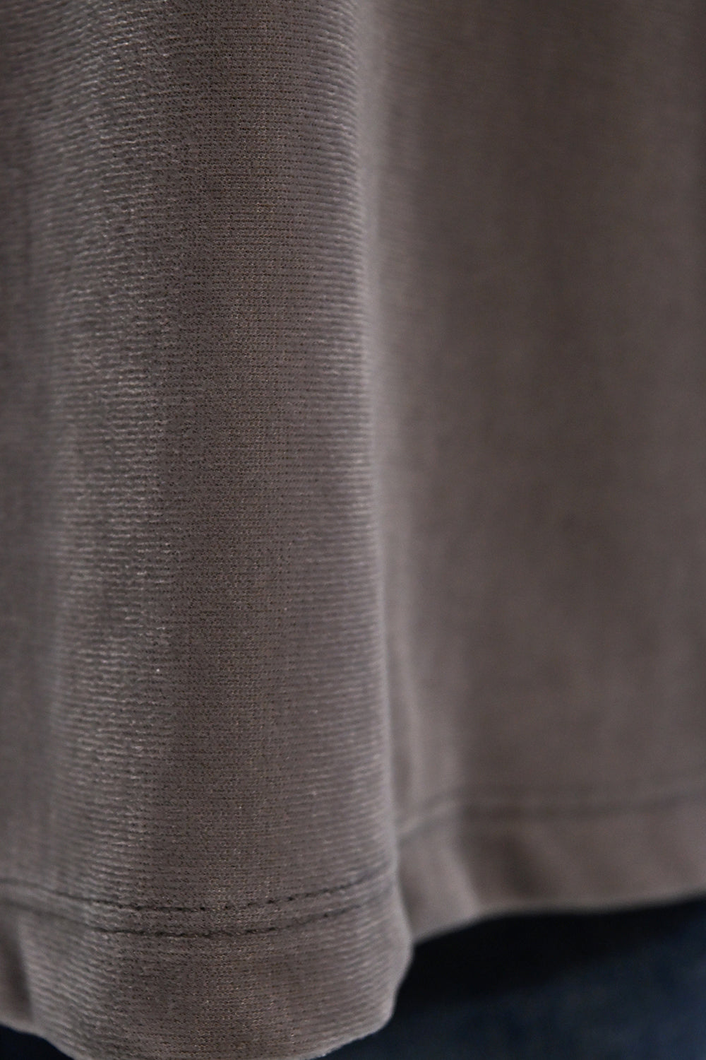 光の角度でさりげなく艶めくベロア素材が、シンプルなコーディネートに上品なニュアンスをプラス。