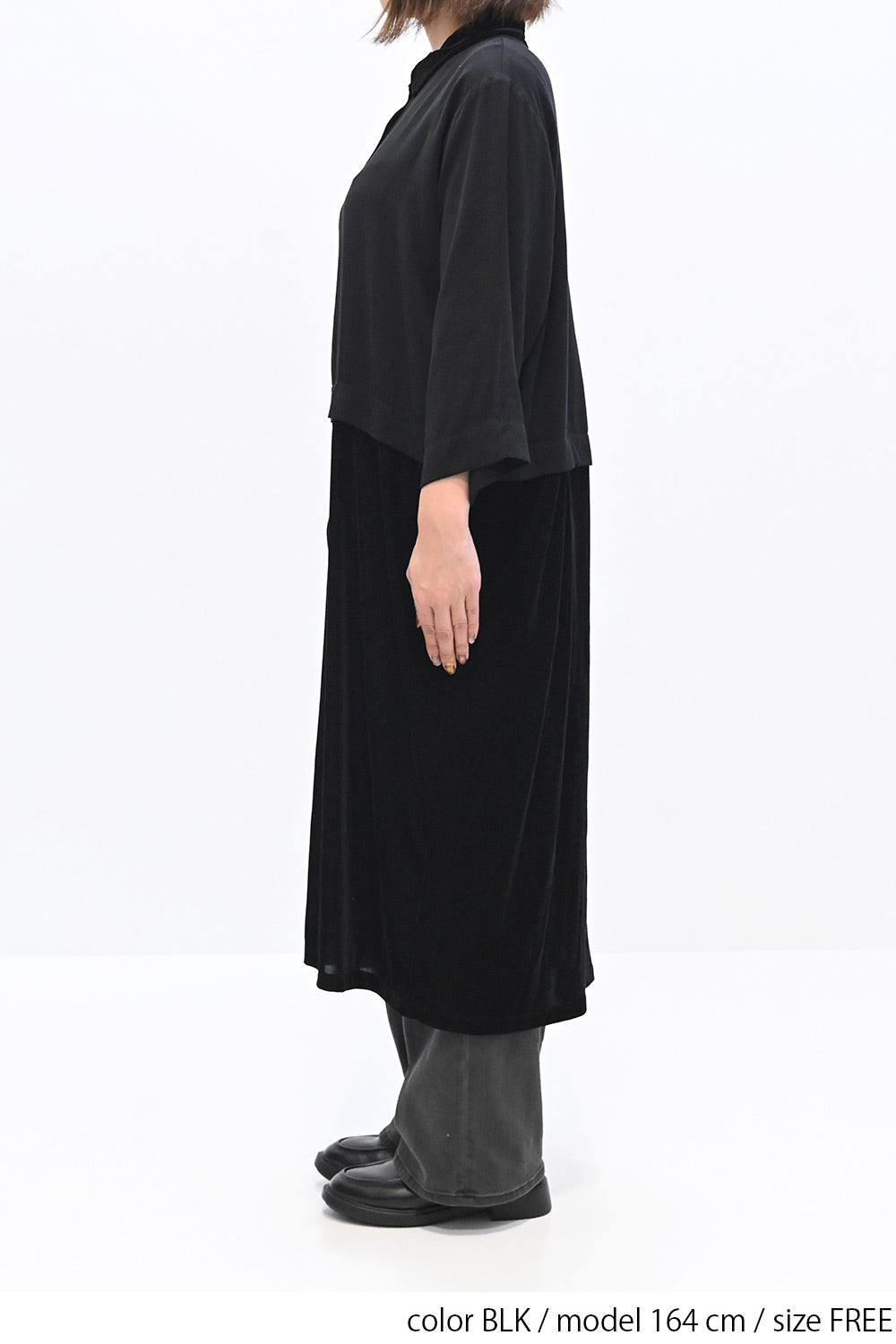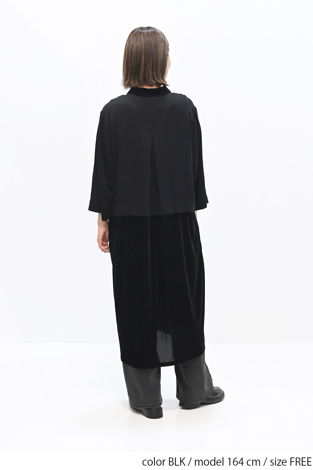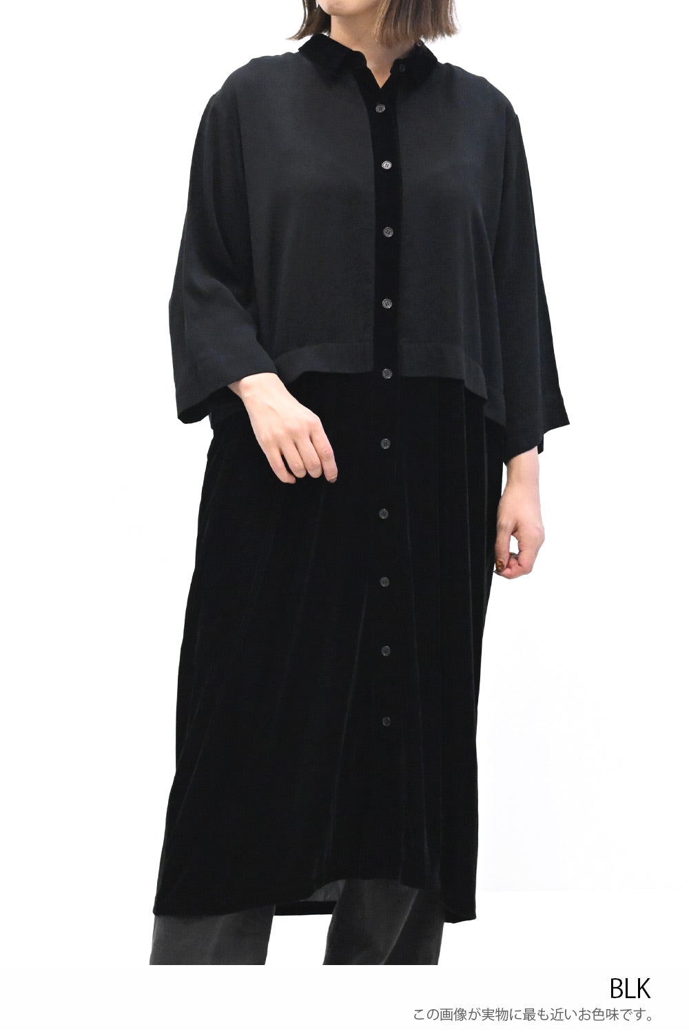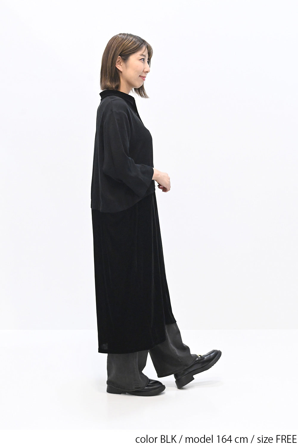 カットベロアを切り替えた、秋らしい雰囲気漂うワンピースです。