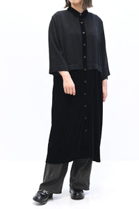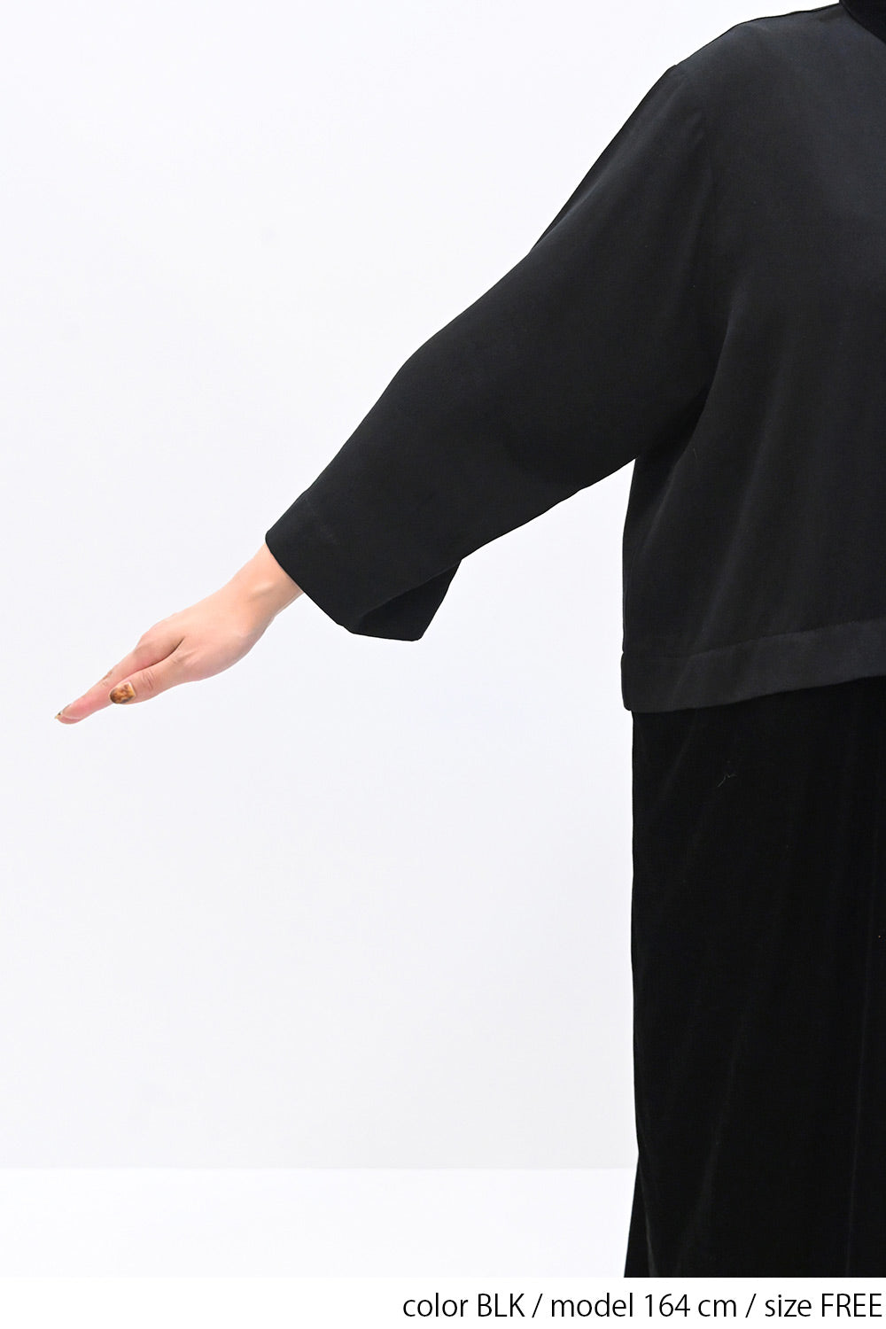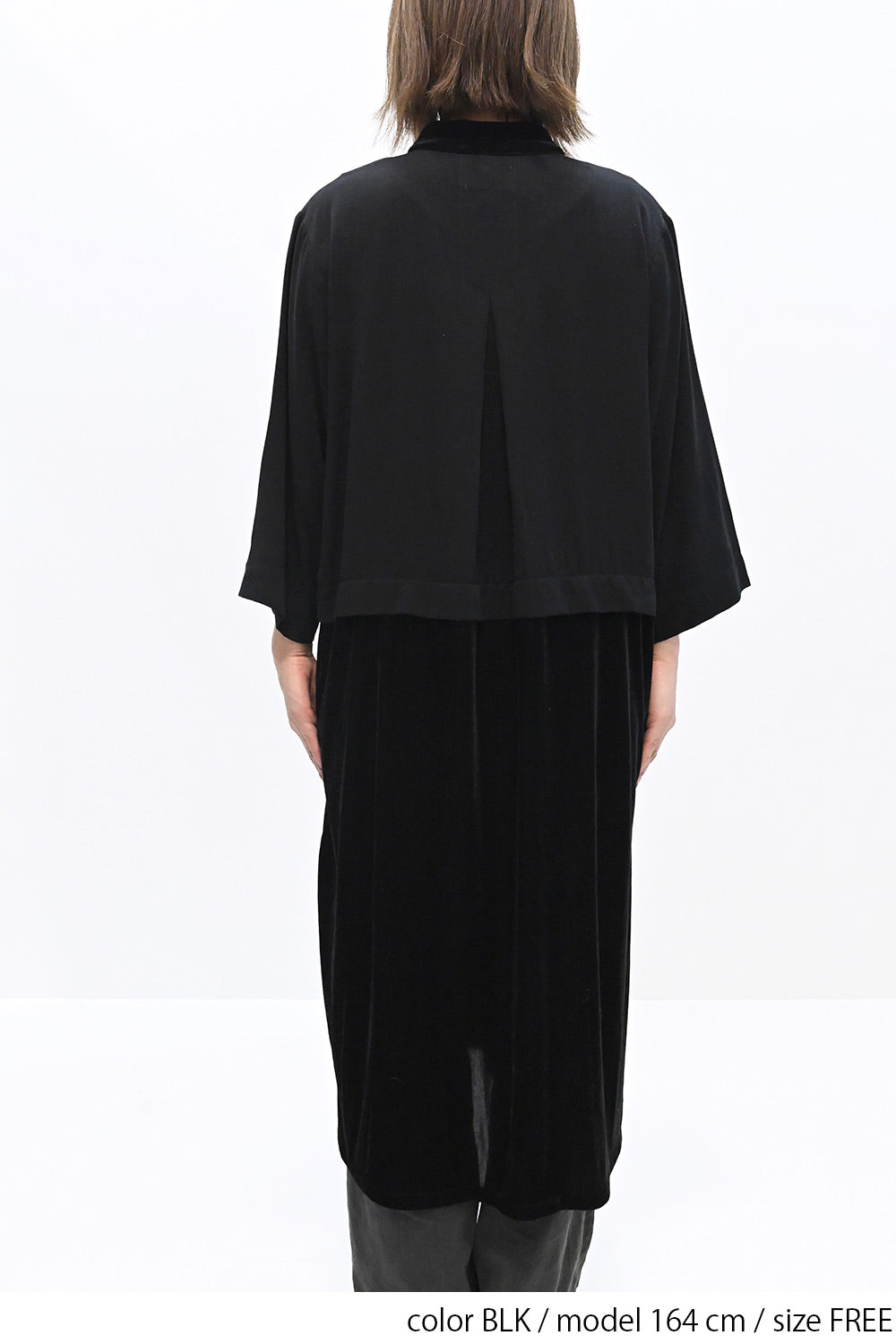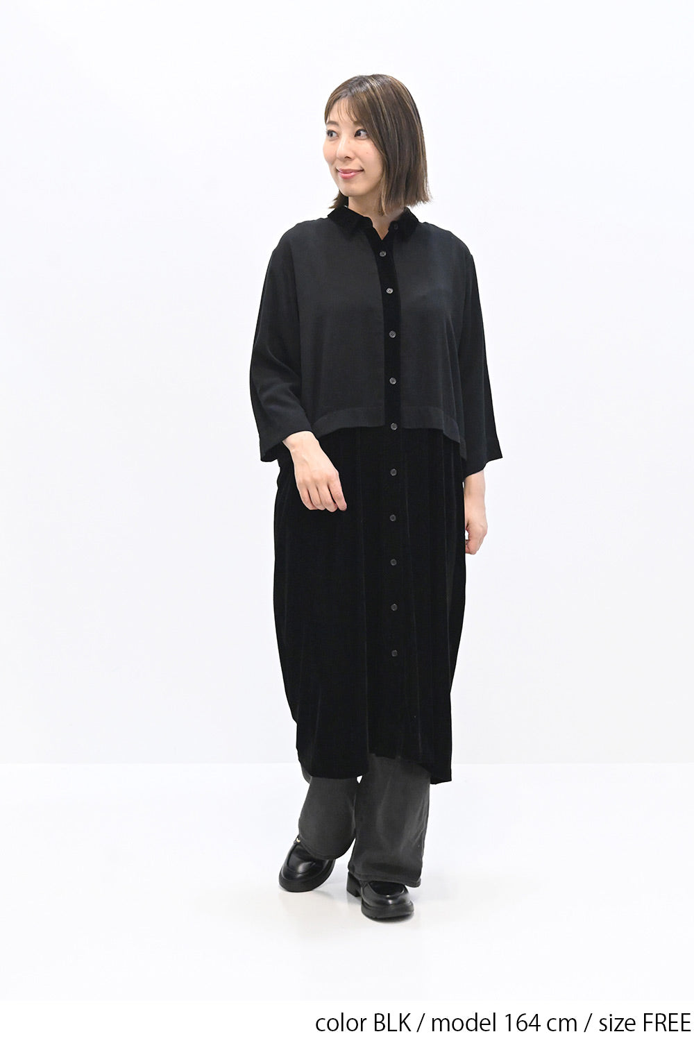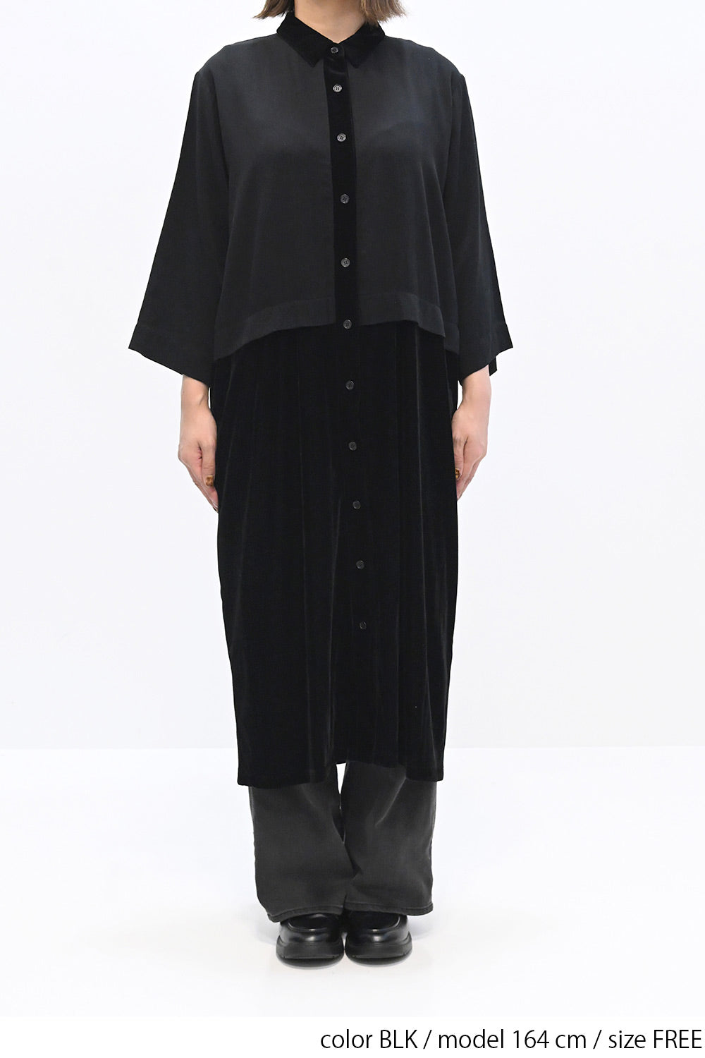 カットベロアを切り替えた、秋らしい雰囲気漂うワンピースです。