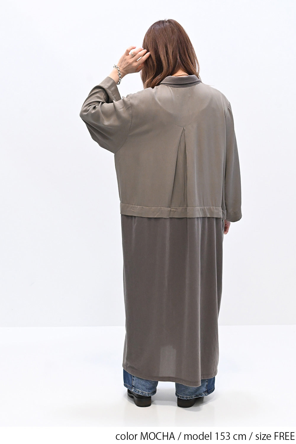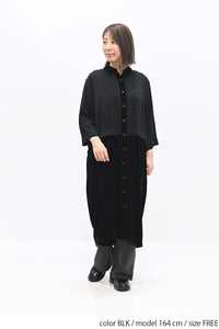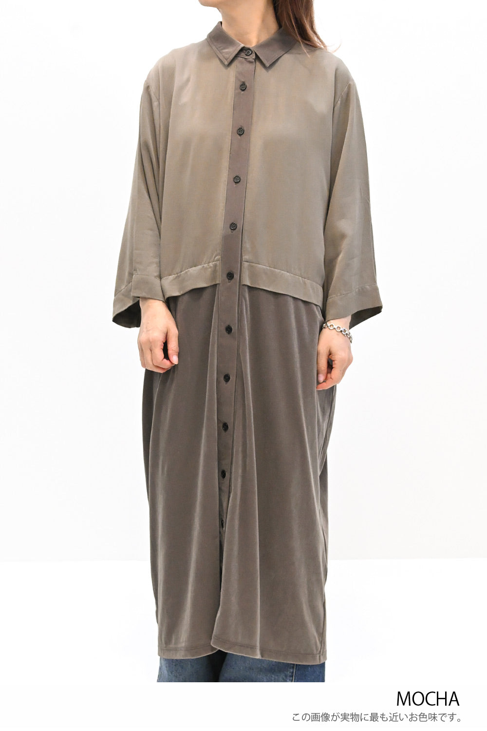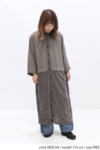 ボタンを留めてワンピースとして着るのはもちろん、Tシャツやタートルニットの上から羽織れば、軽いアウター感覚でも楽しめます。