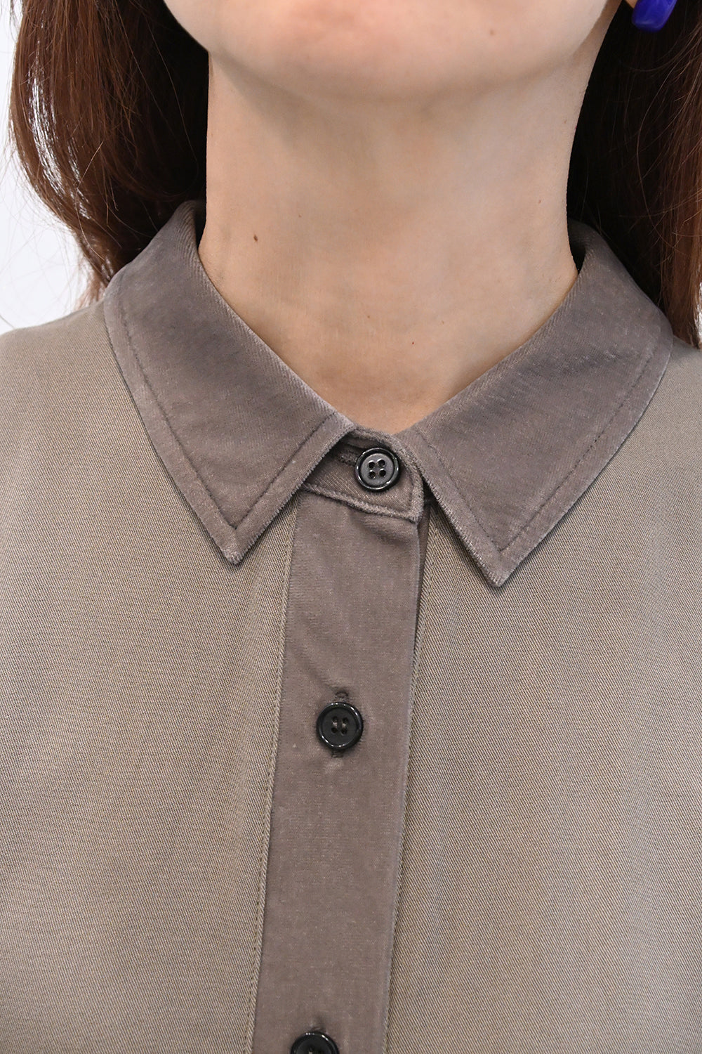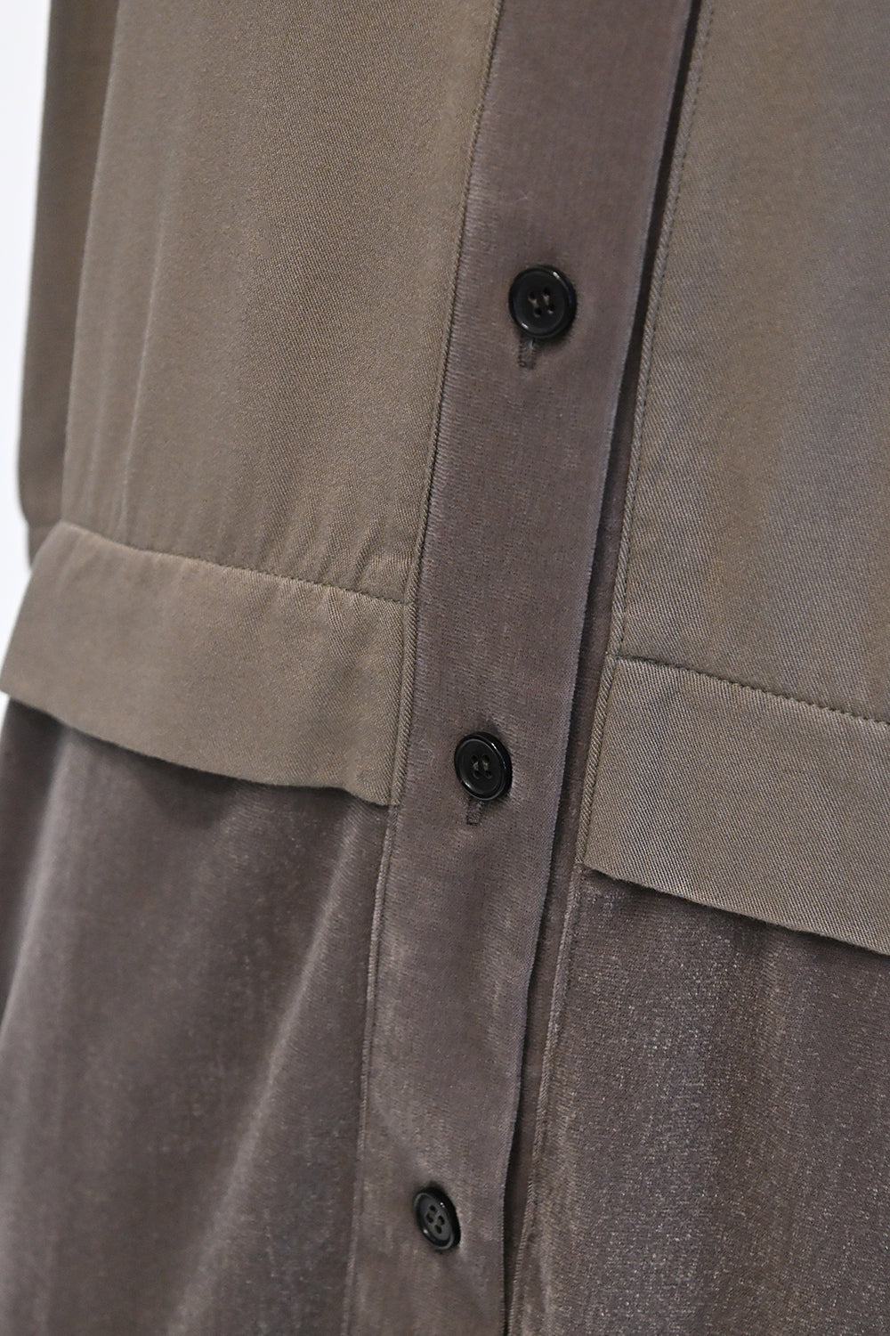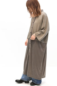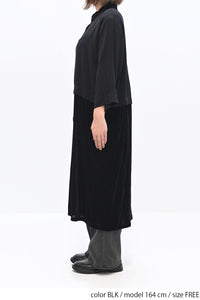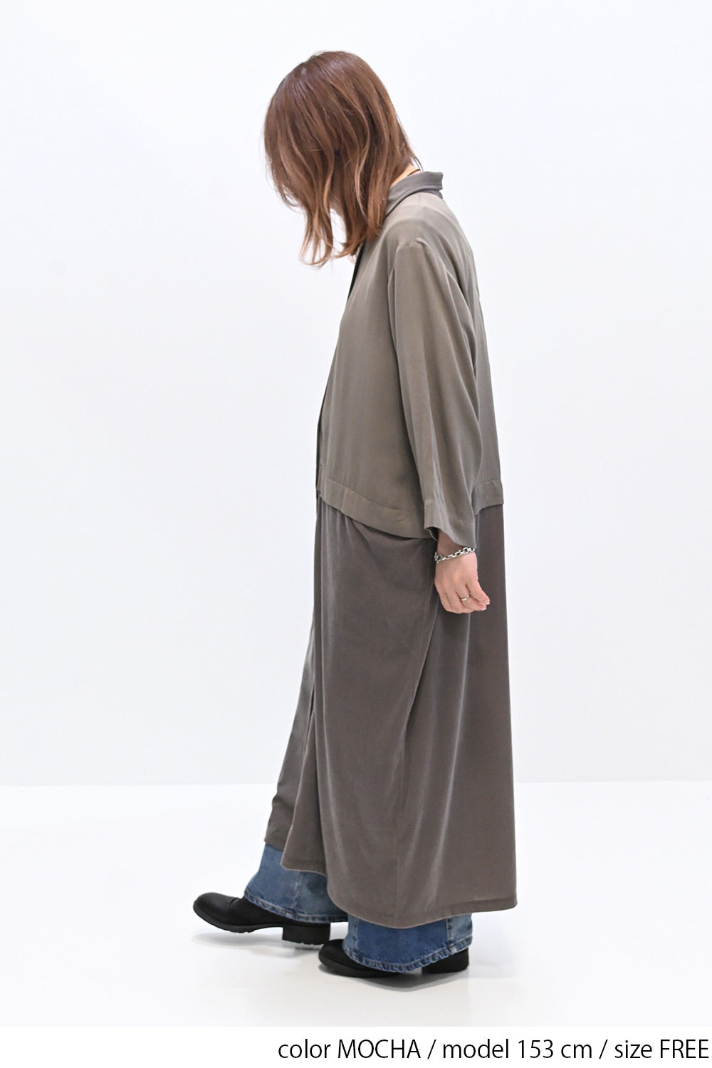 ボタンを留めてワンピースとして着るのはもちろん、Tシャツやタートルニットの上から羽織れば、軽いアウター感覚でも楽しめます。