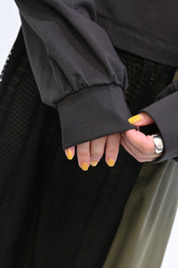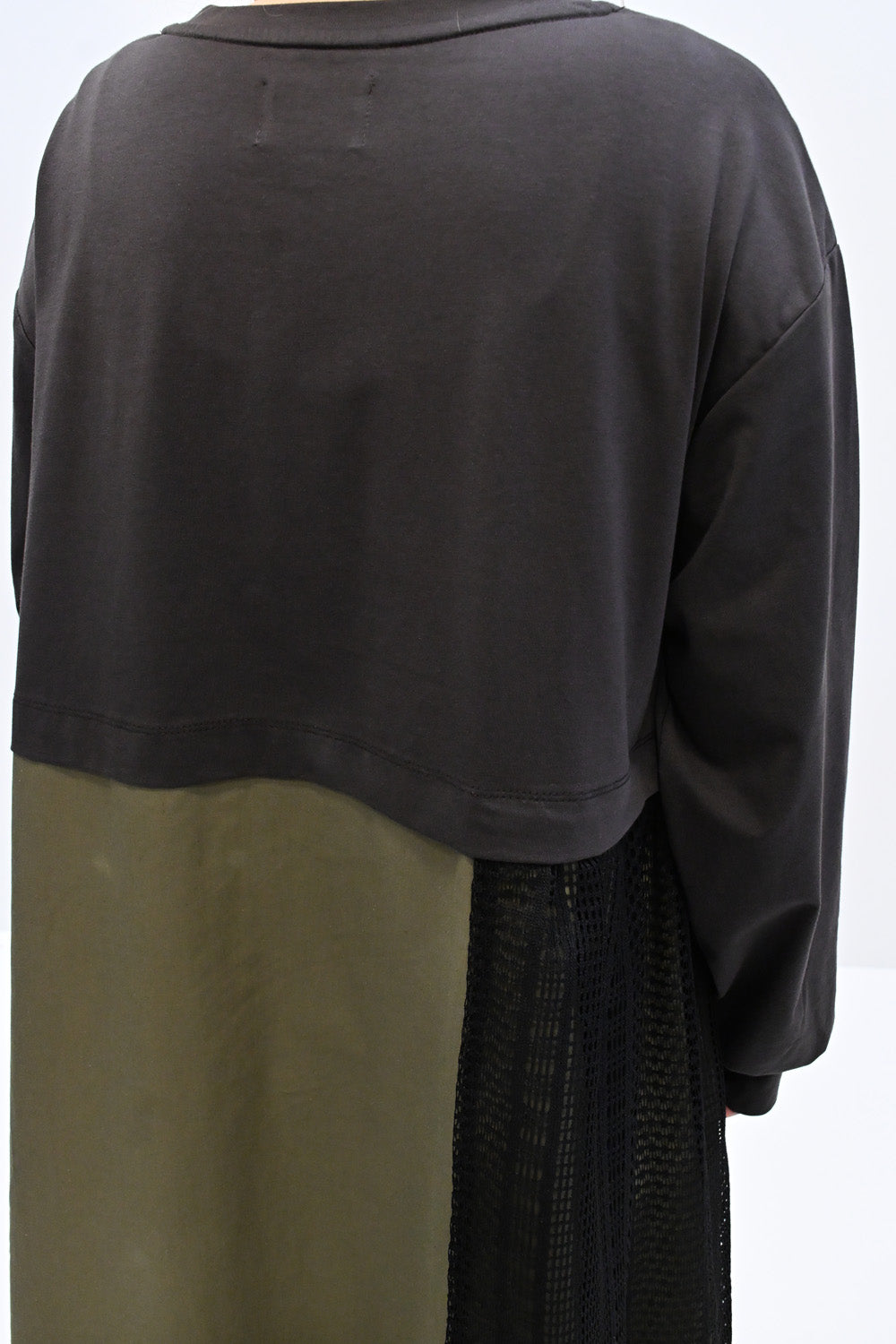シンプルながらも1枚で着映えする異素材切替デザインが魅力のアイテムです。