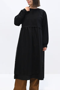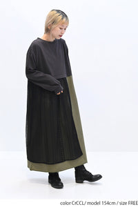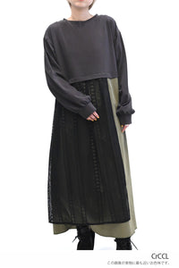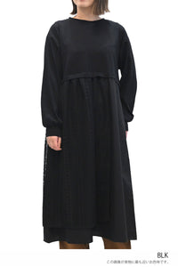ウエスト位置から異素材で切り替えられたワンピースです。