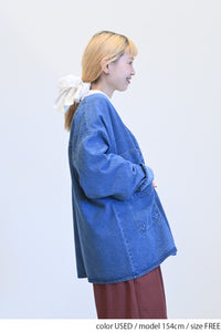 季節の変わり目の羽織りにちょうどよく、ブリーチ加工を施したデニムの風合いがコーデにこなれた雰囲気をプラスしてくれます。