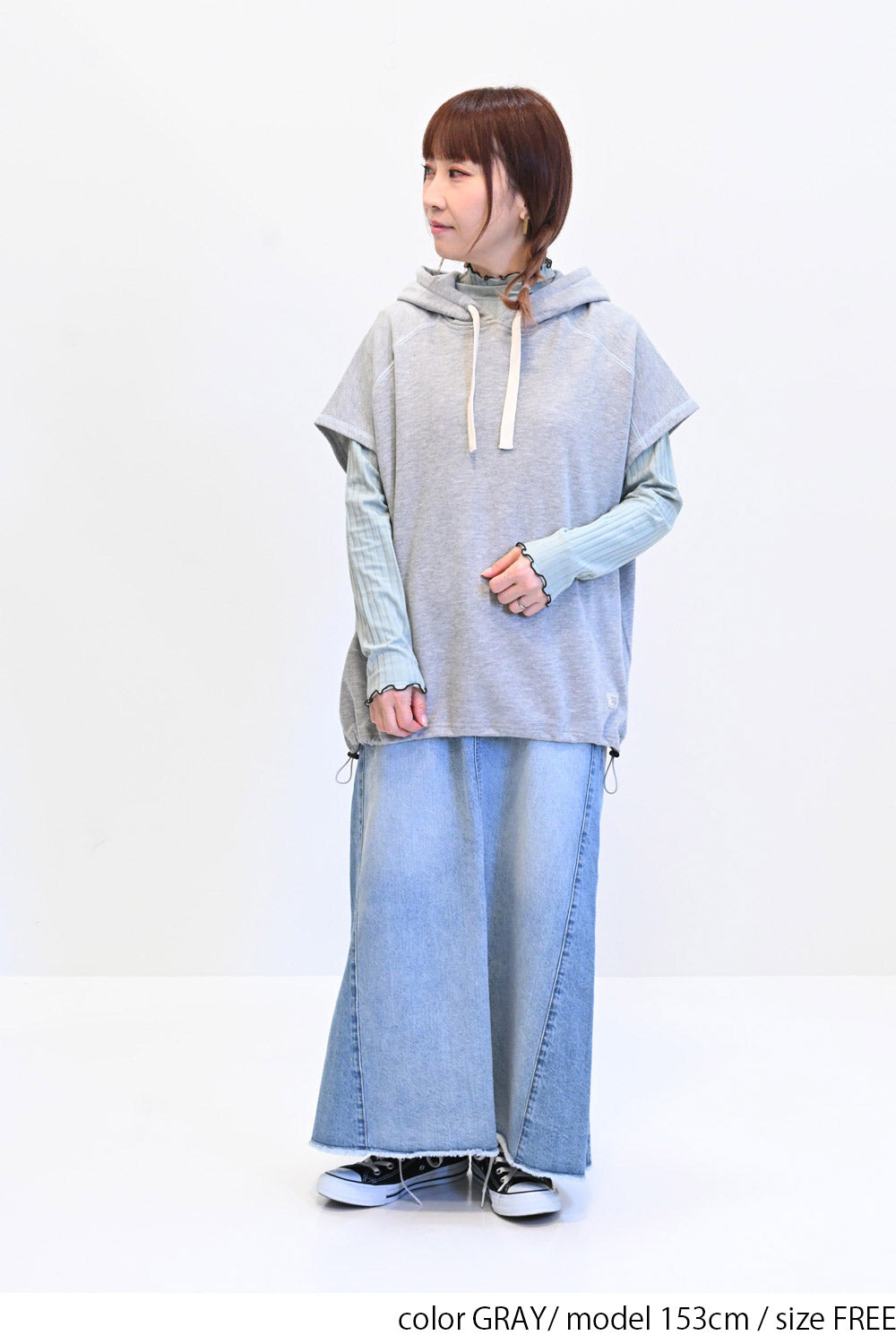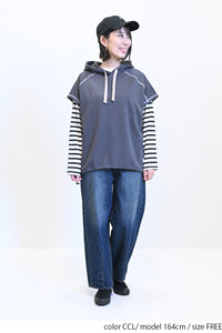 広めのアームホールとゆったりとしたシルエットで様々なトップスとのレイヤードが楽しめます。