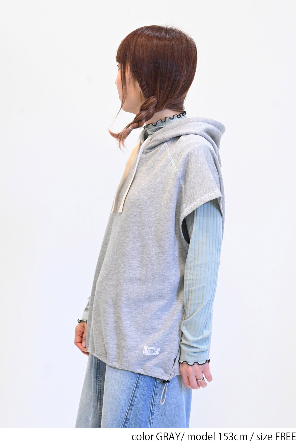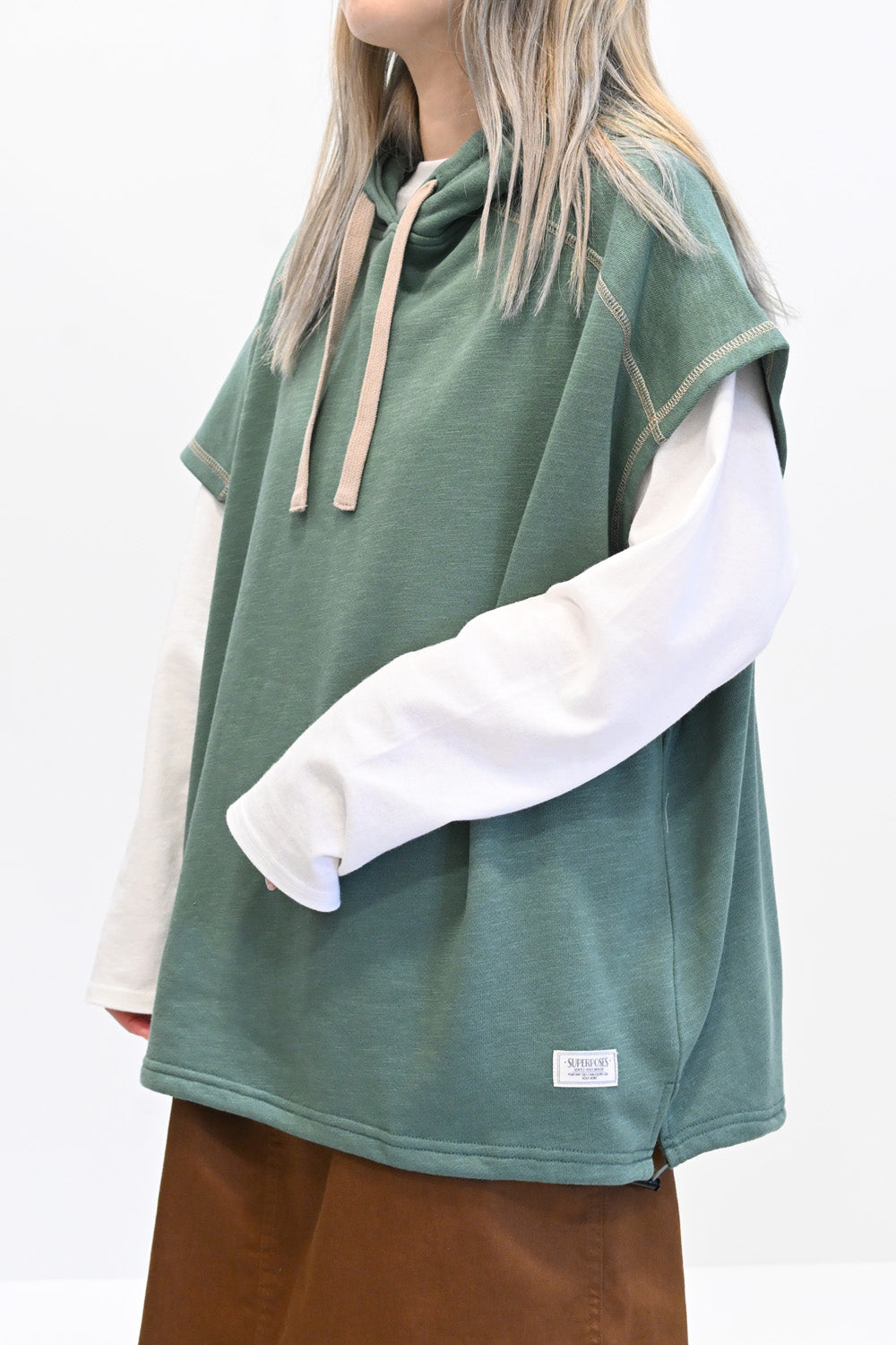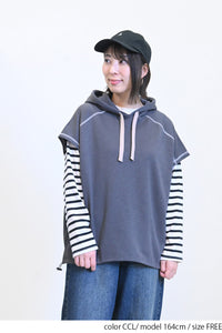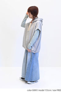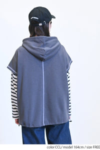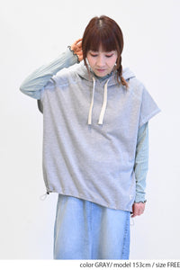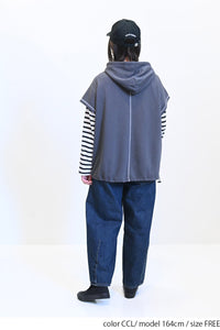 トレンド感を高めるスラブ裏毛フードベストです。