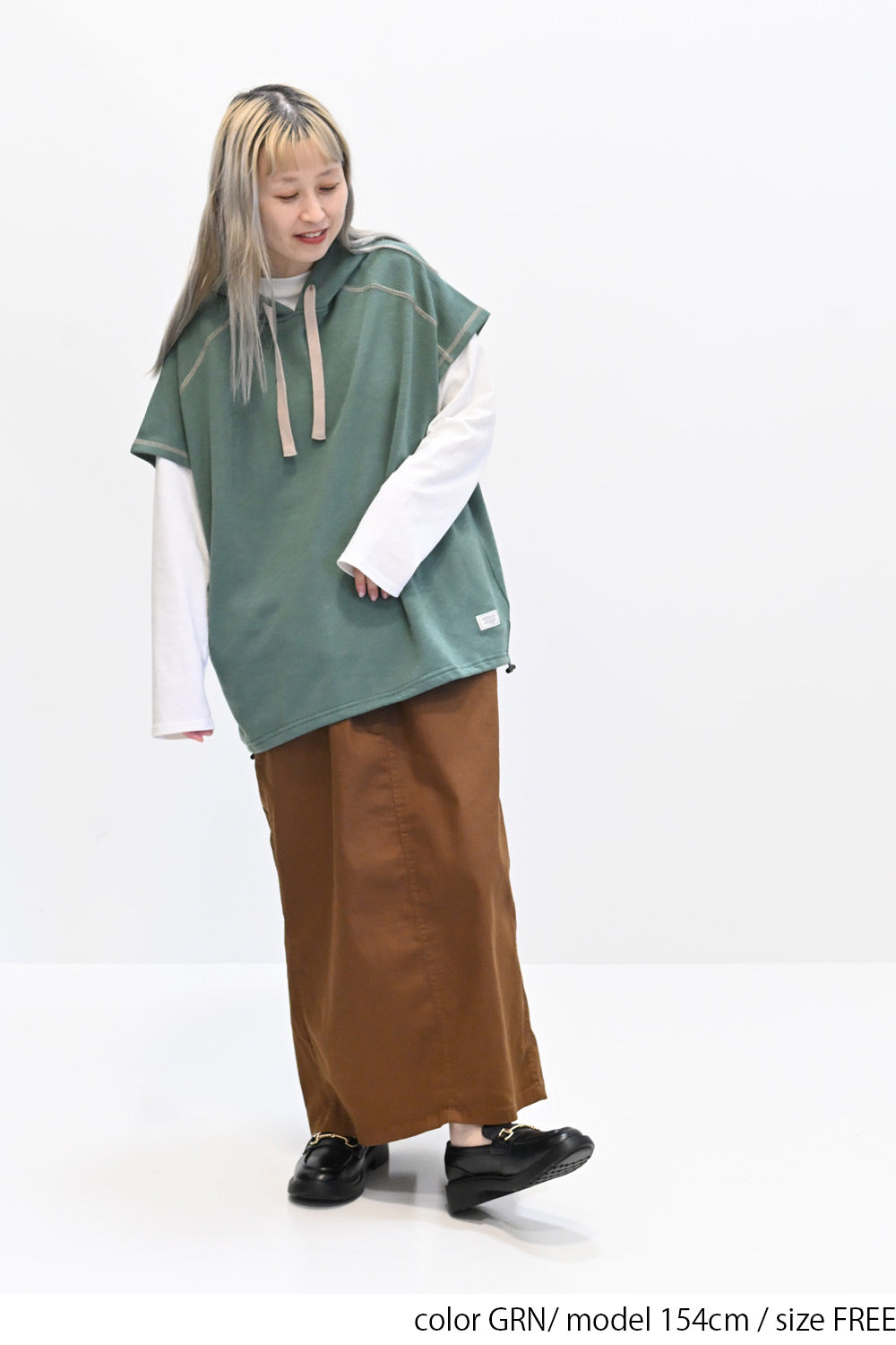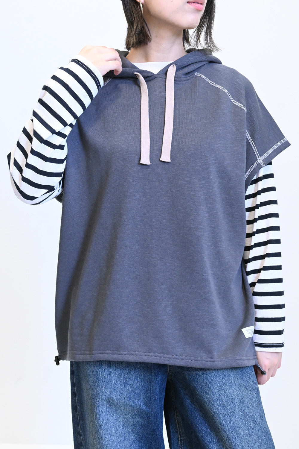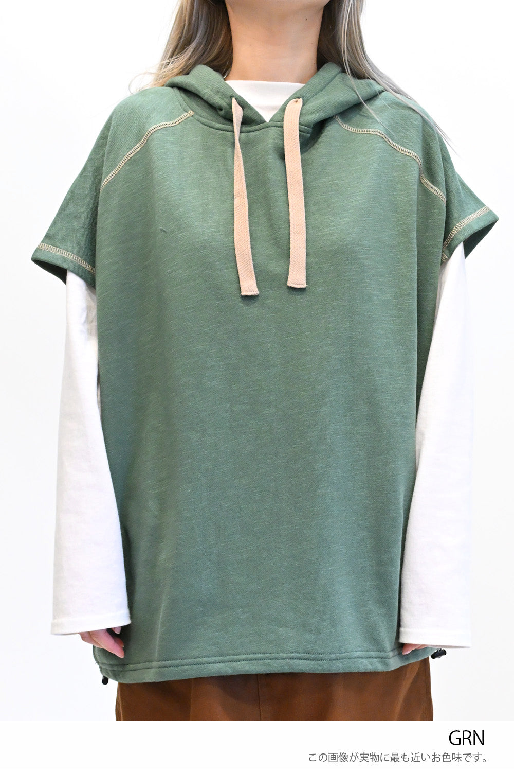 トレンド感を高めるスラブ裏毛フードベストです。