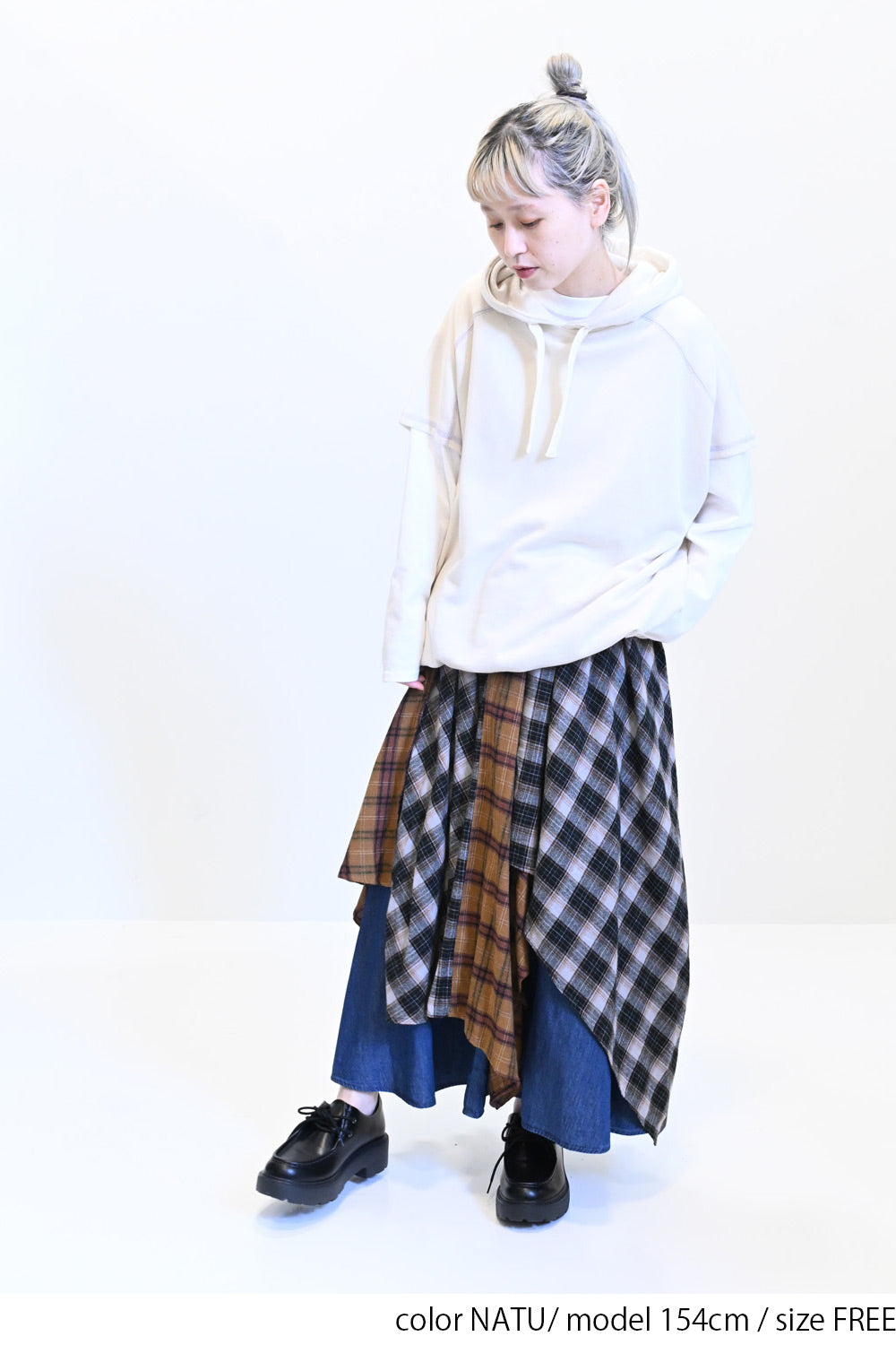 シャツやロンT、タートルネックなどさまざまなトップスとレイヤードしていただけます。