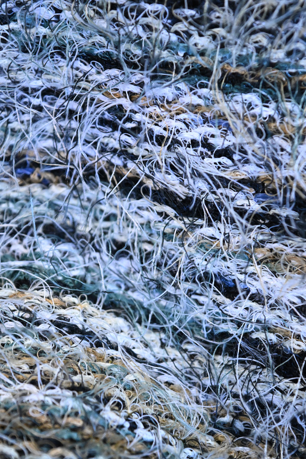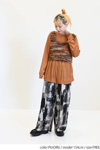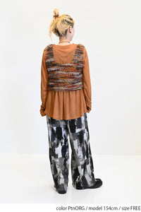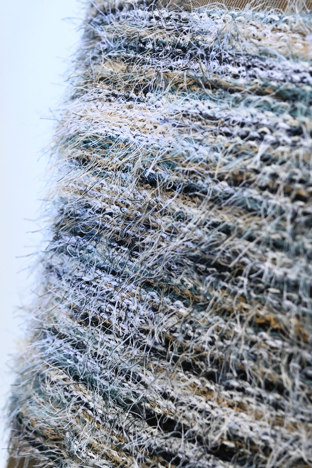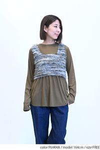 ビスチェは様々な色の糸がミックスされた、表情豊かなフェザーヤーン。
