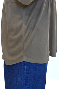 ロンTはやや透け感のある薄手で柔らかなポリエステル素材。