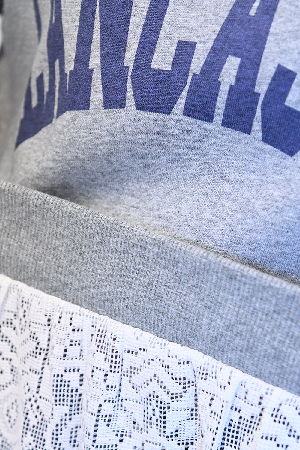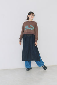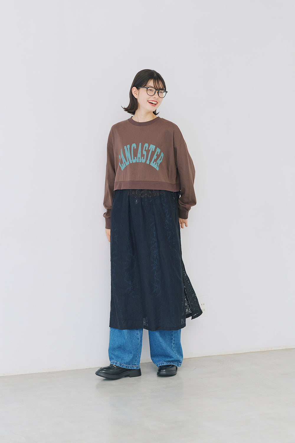 上身頃はショート丈のカジュアルなロゴがアクセントの効いたスウェット素材。