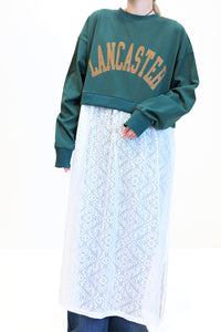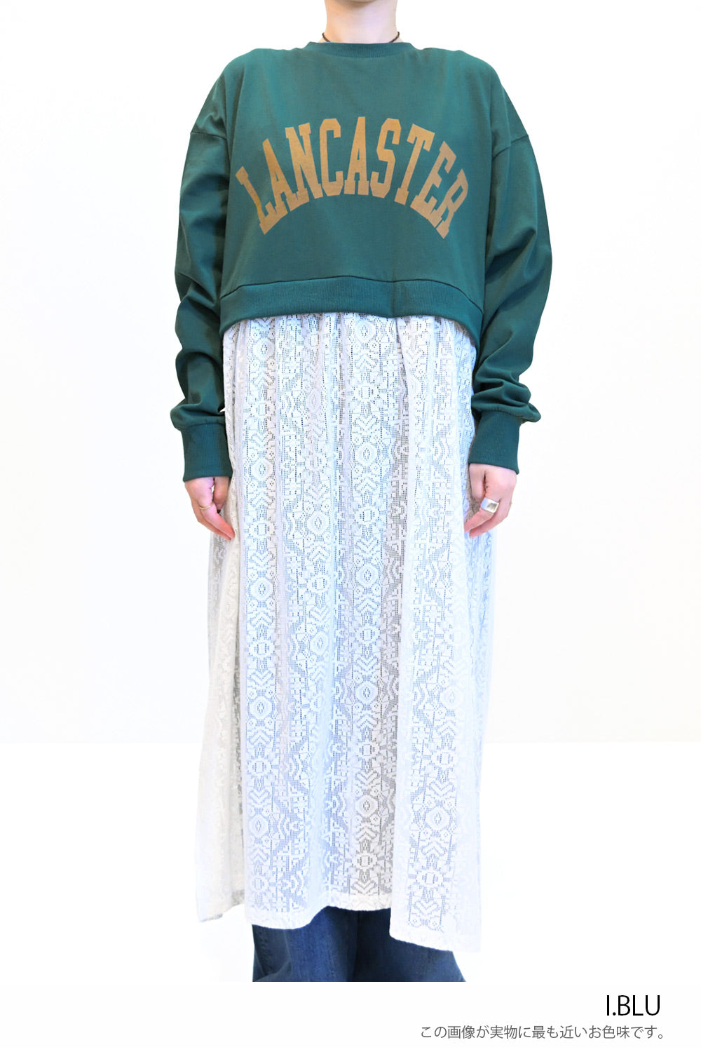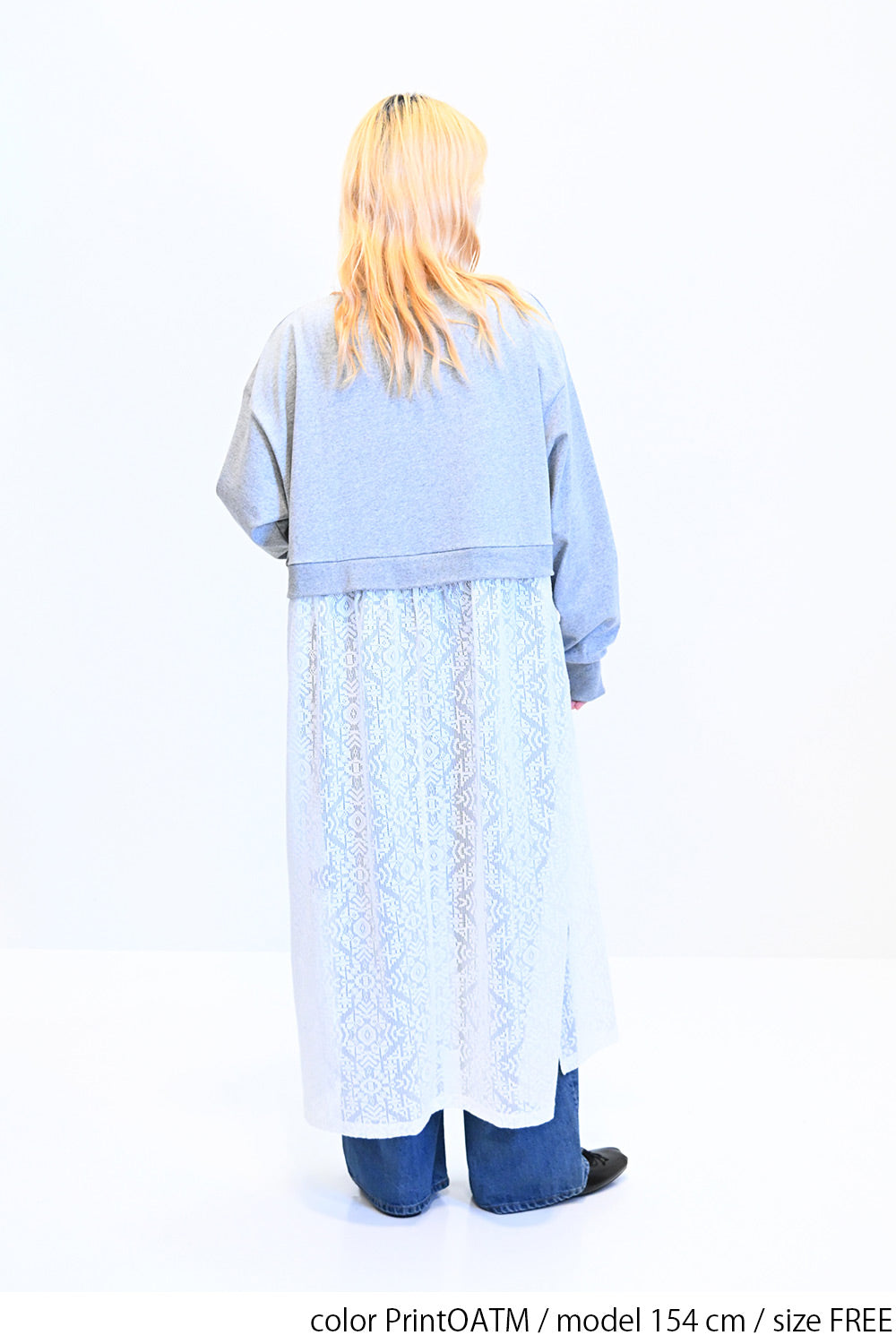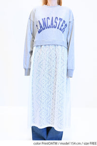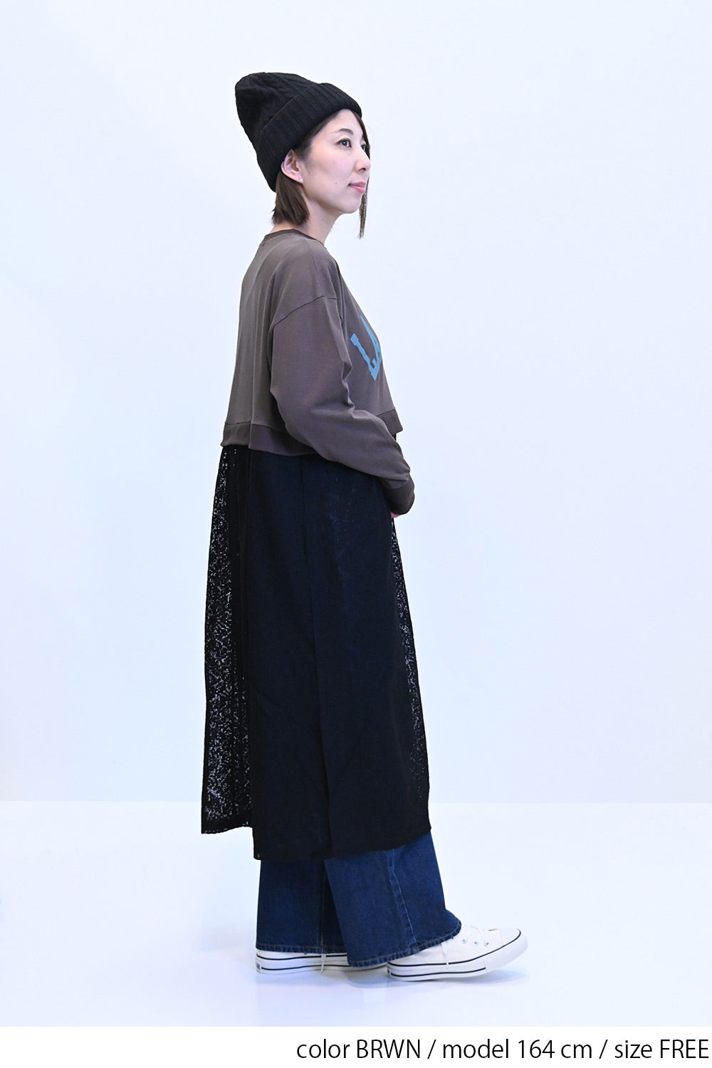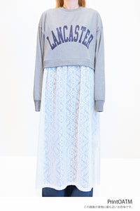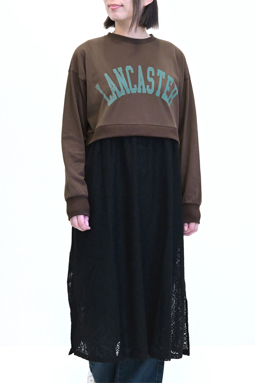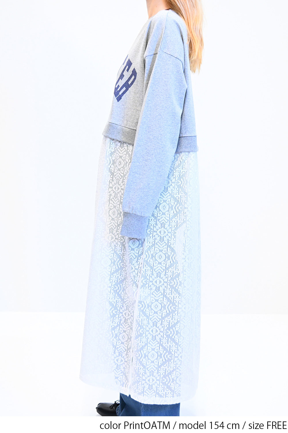カジュアルなTシャツとフェミニンなレースが一つになった、ドッキングデザインのワンピースです。