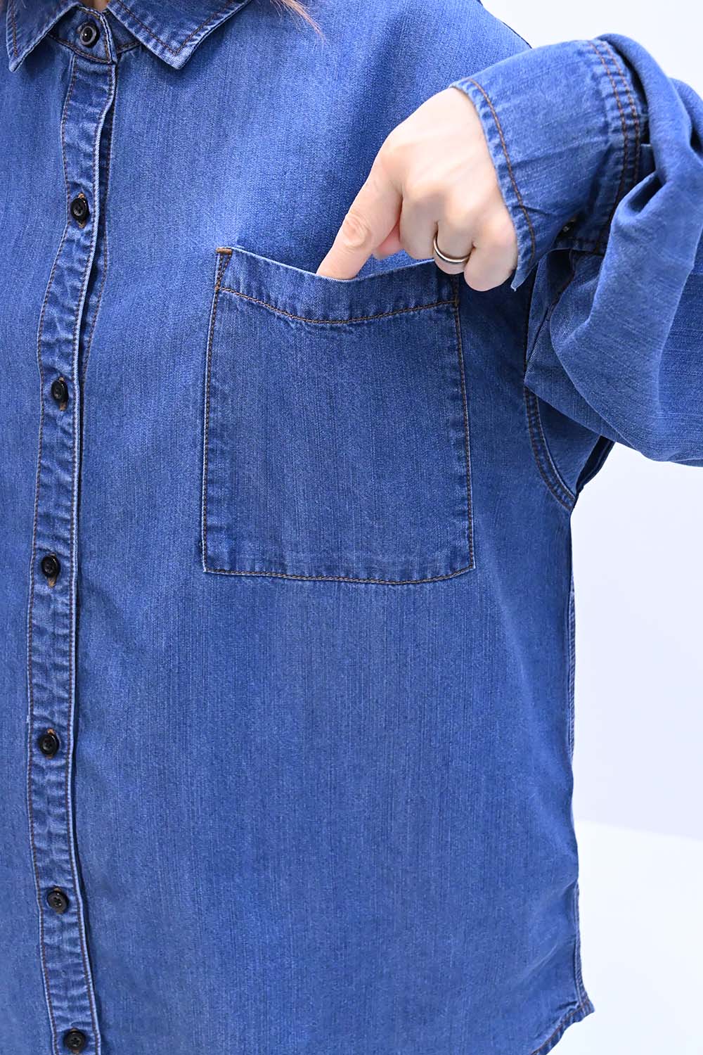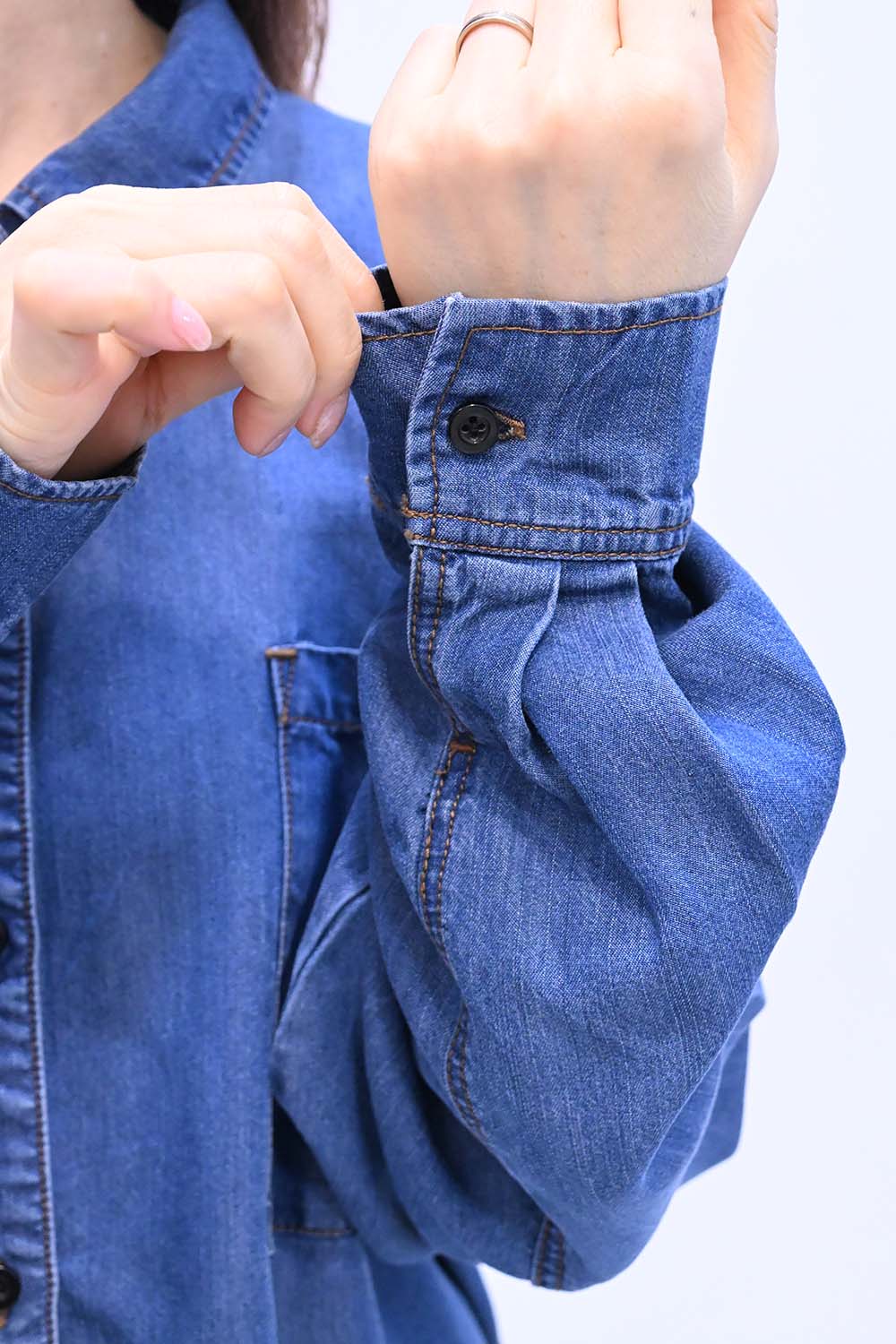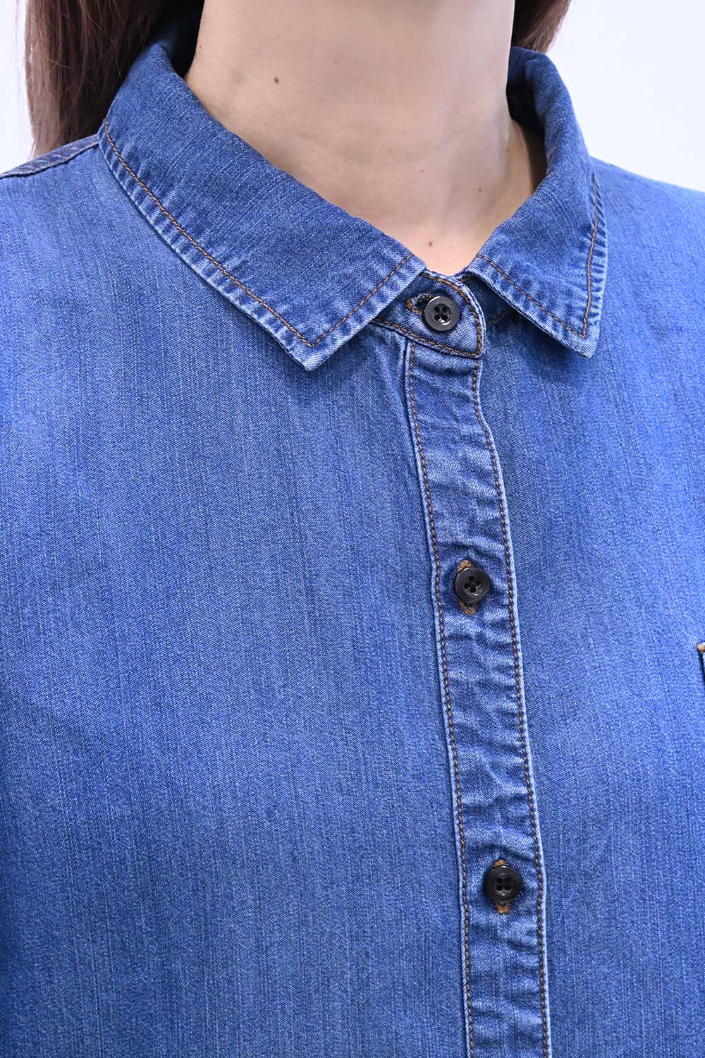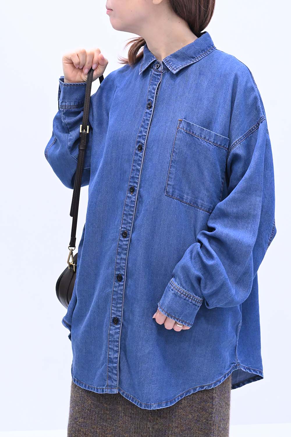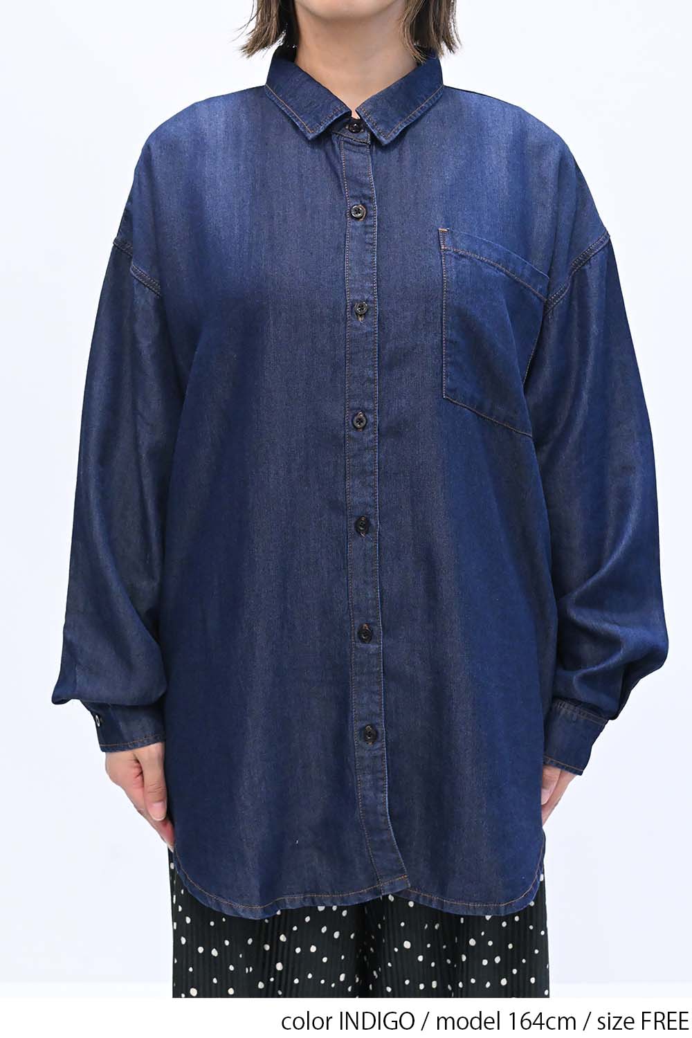 柔らかく軽やかな素材を使用した、薄手のデニムシャツ。