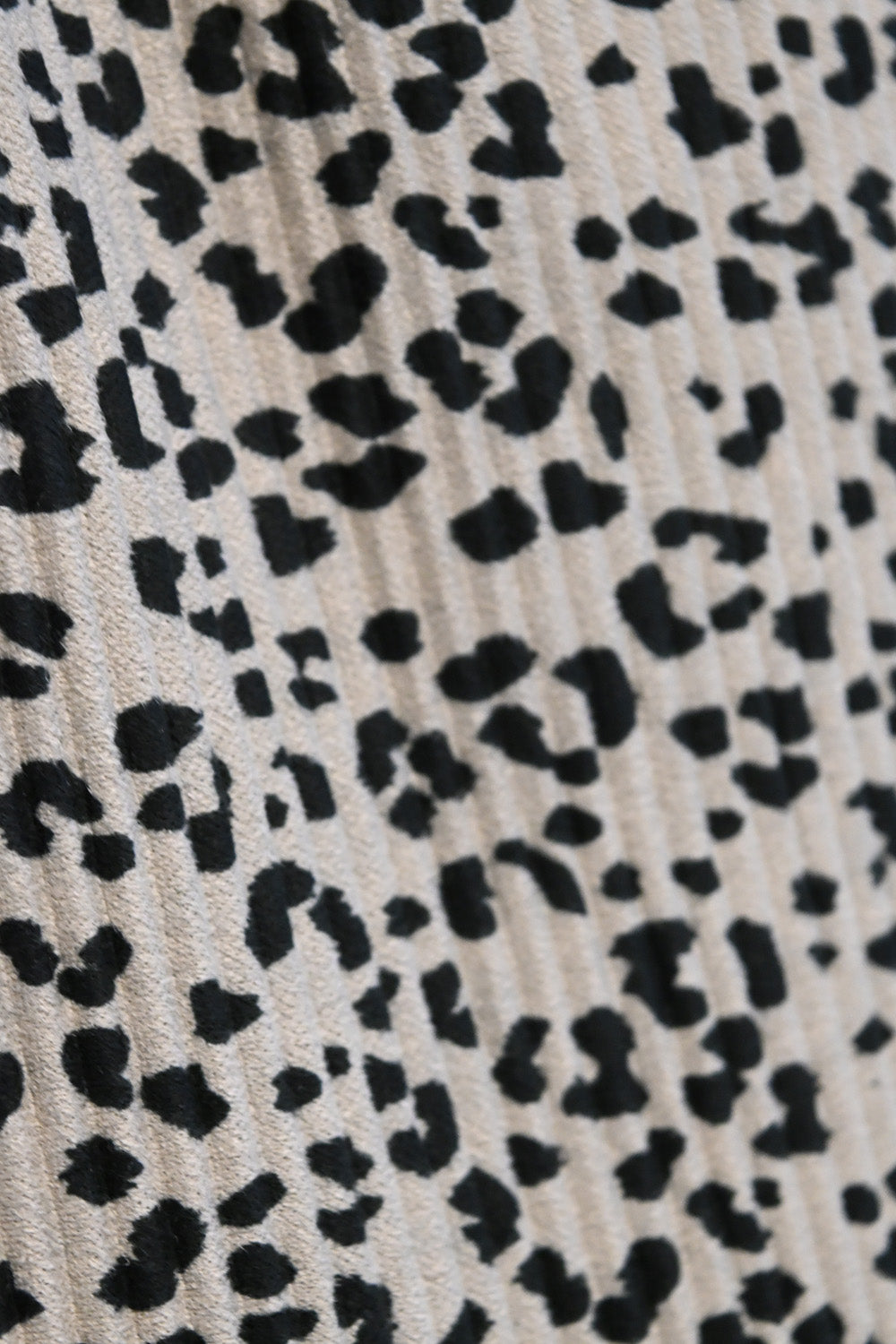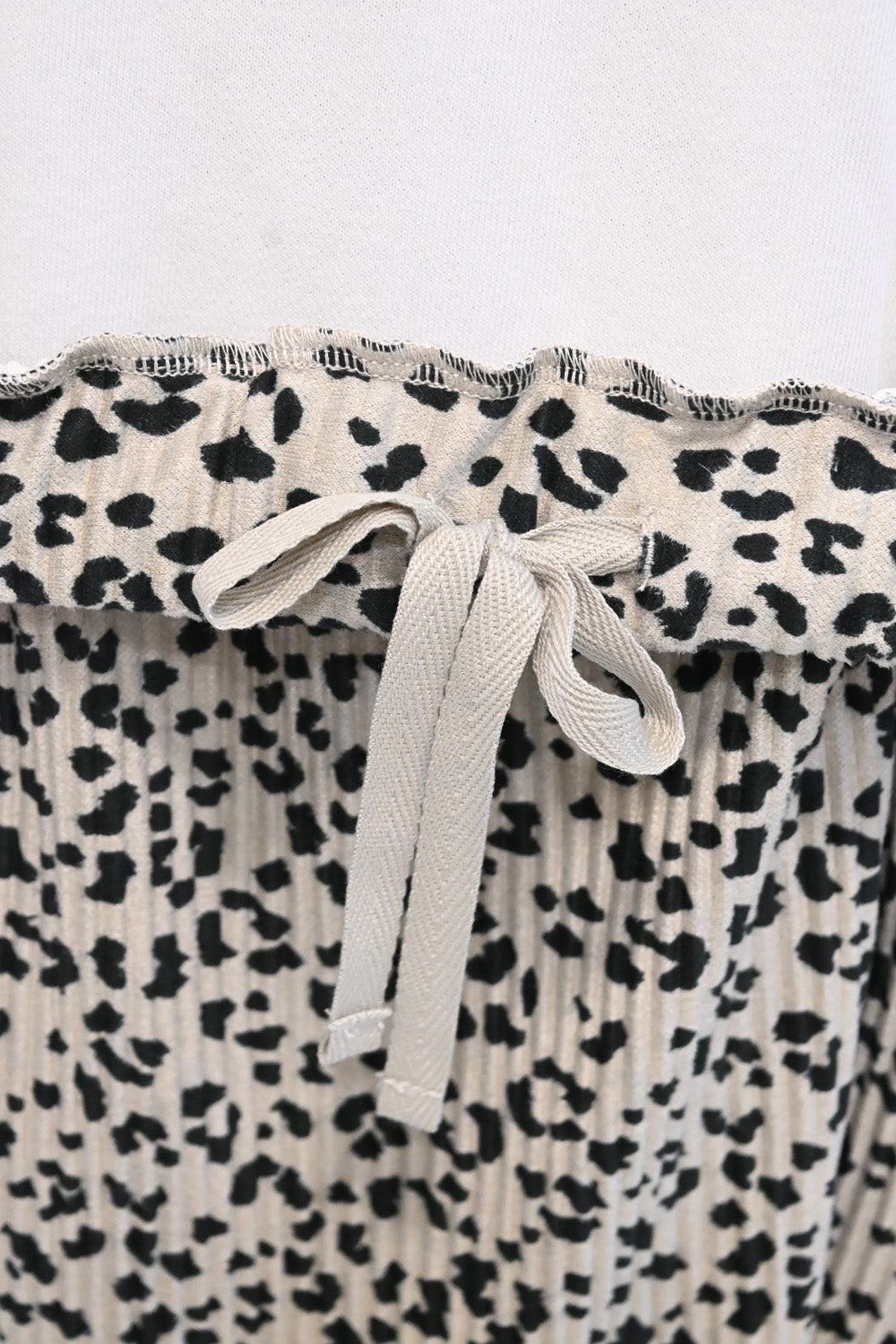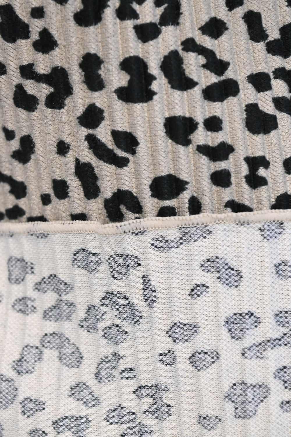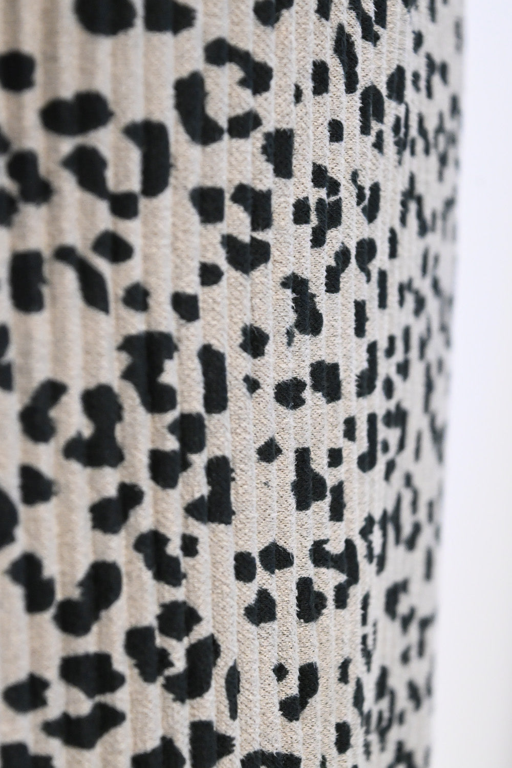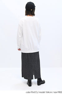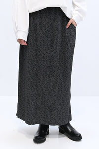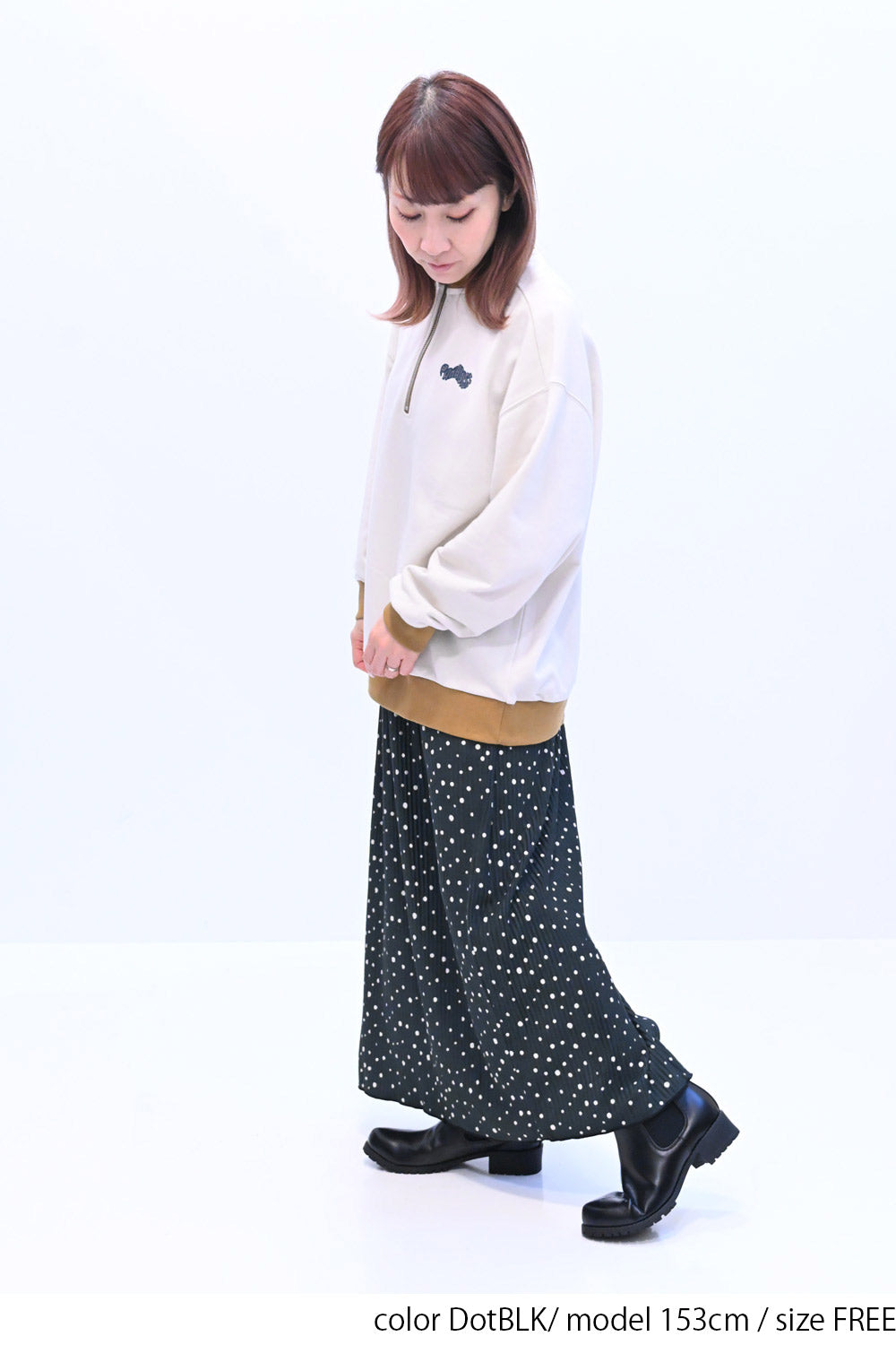 ヒョウ柄やドット柄など、遊び心あるアソートプリントが目を惹くロングスカート。