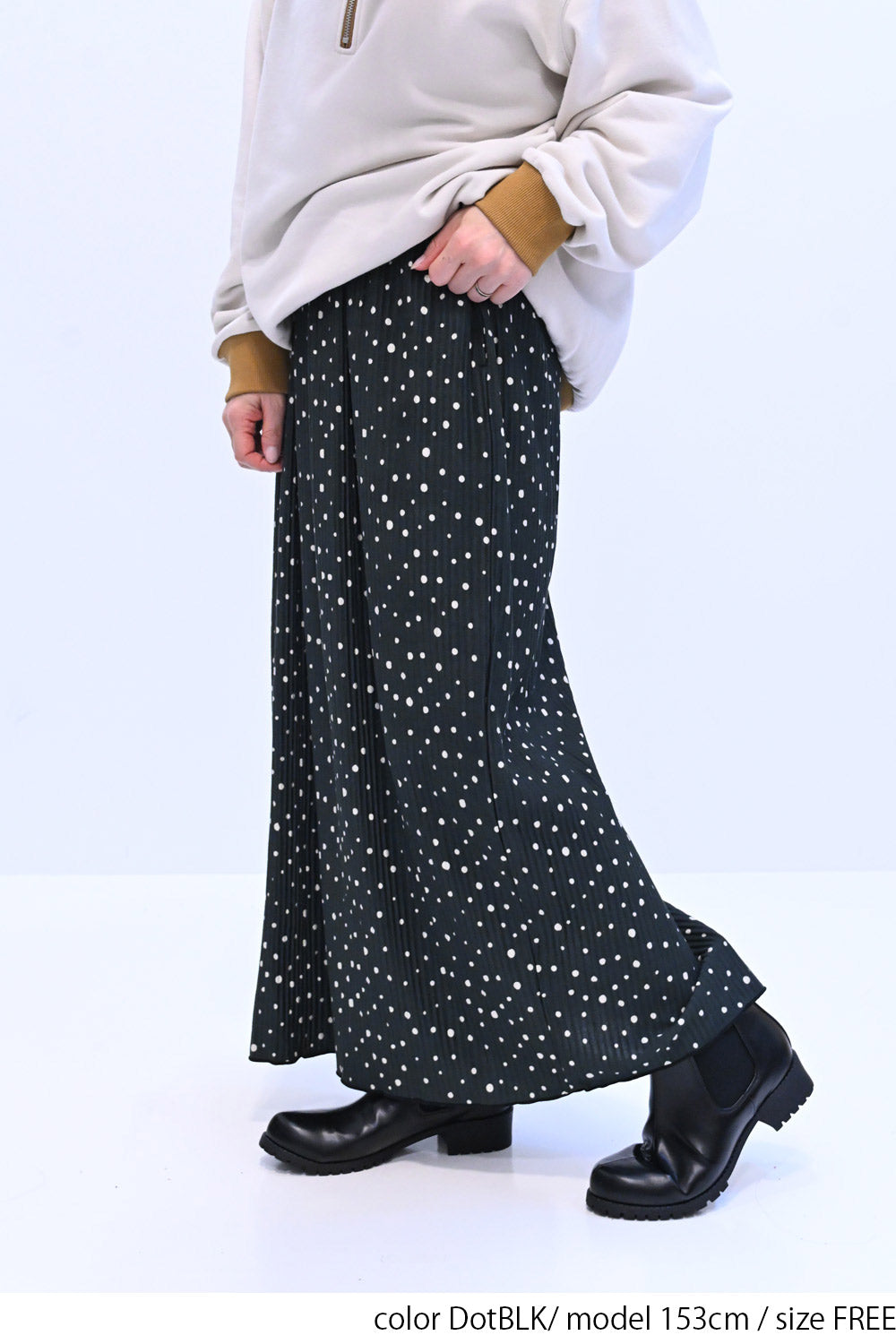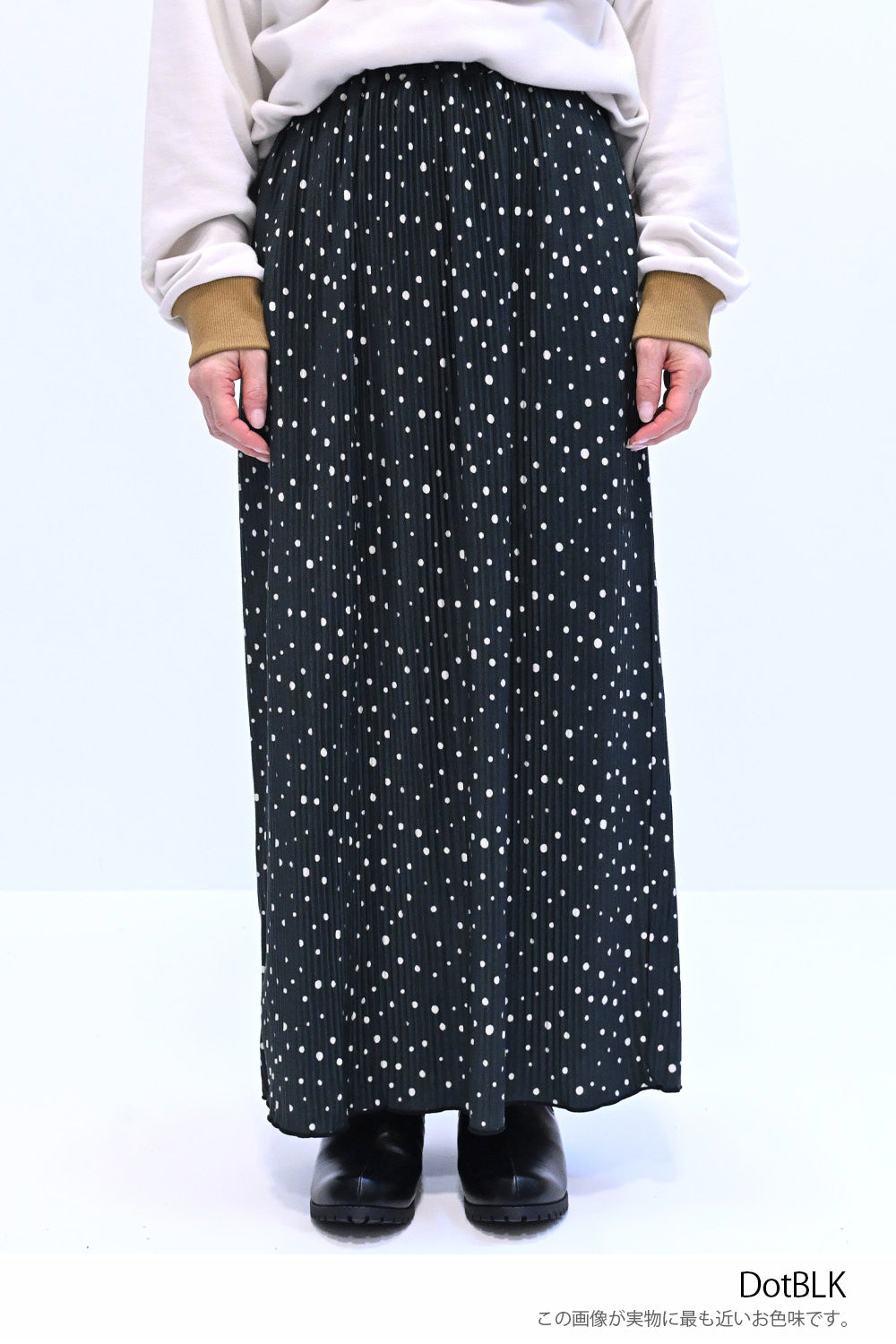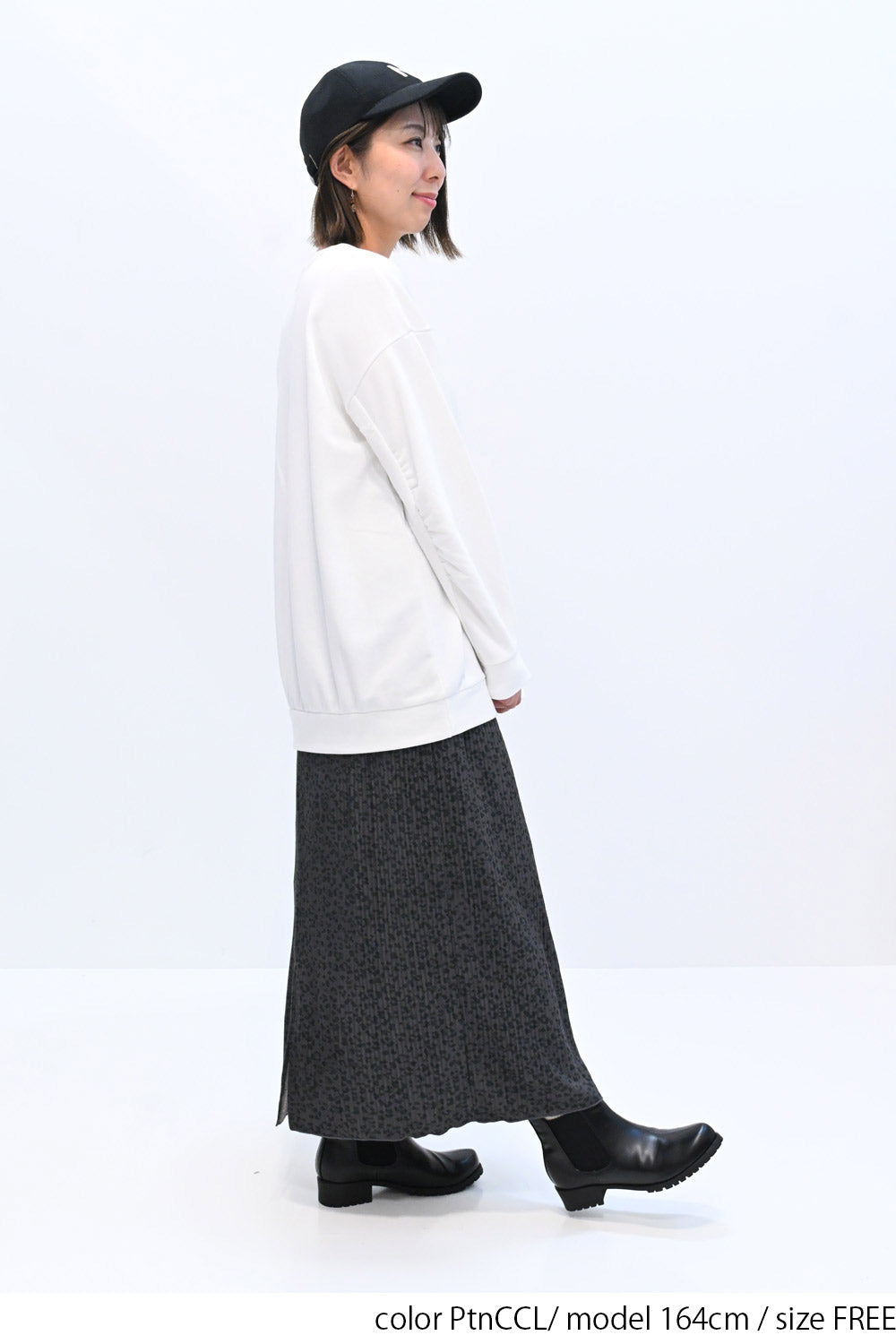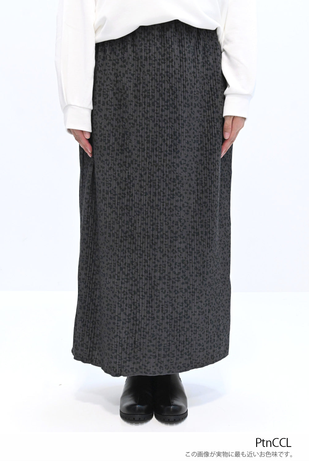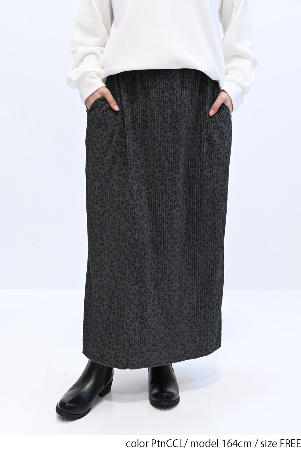 存在感のあるプリント×プリーツデザインなので、シンプルなトップスを合わせるだけでスタイルが決まります。