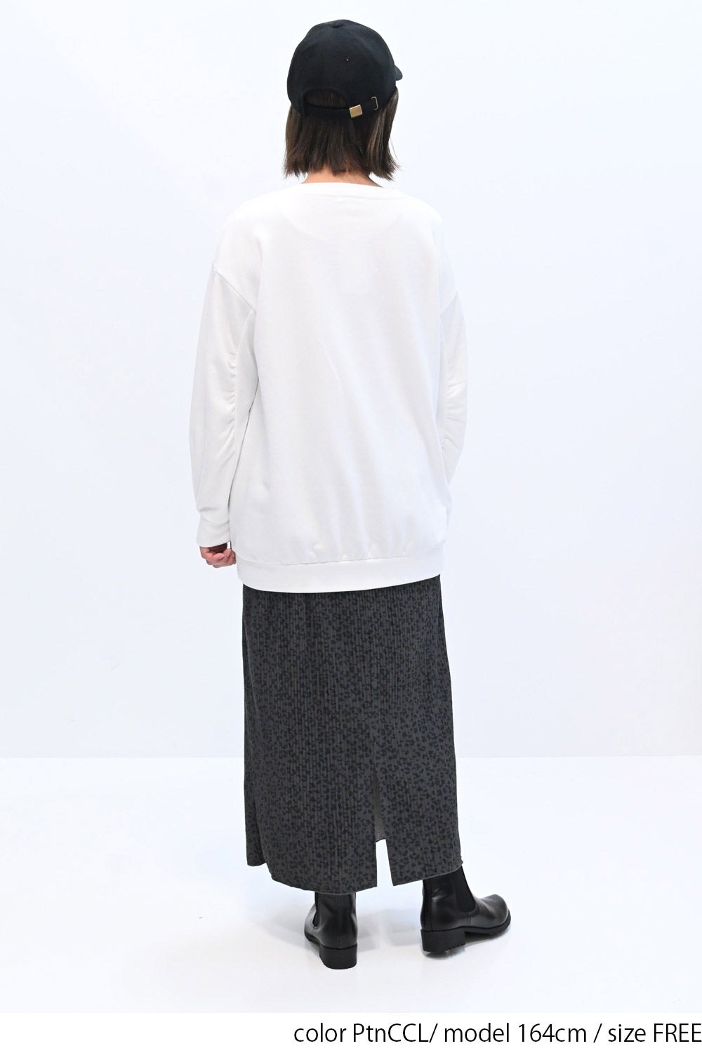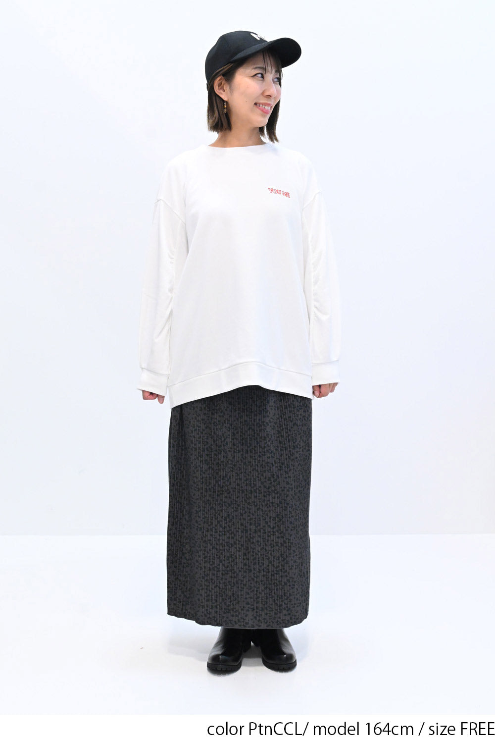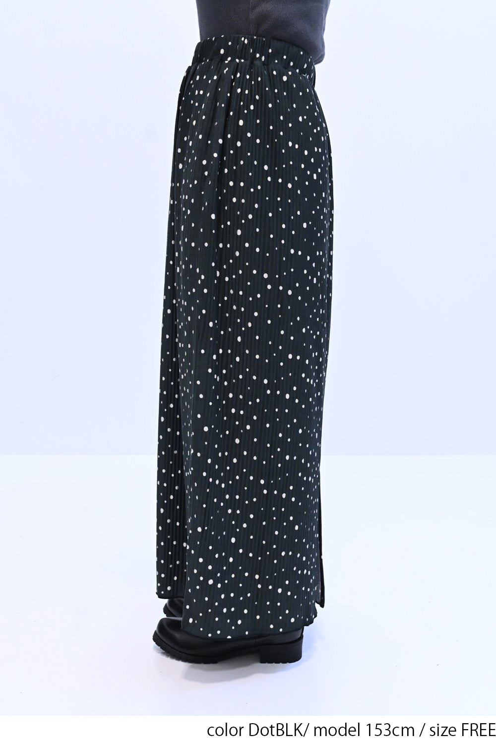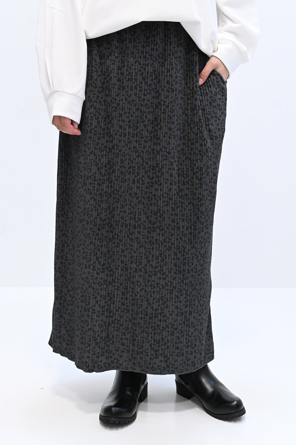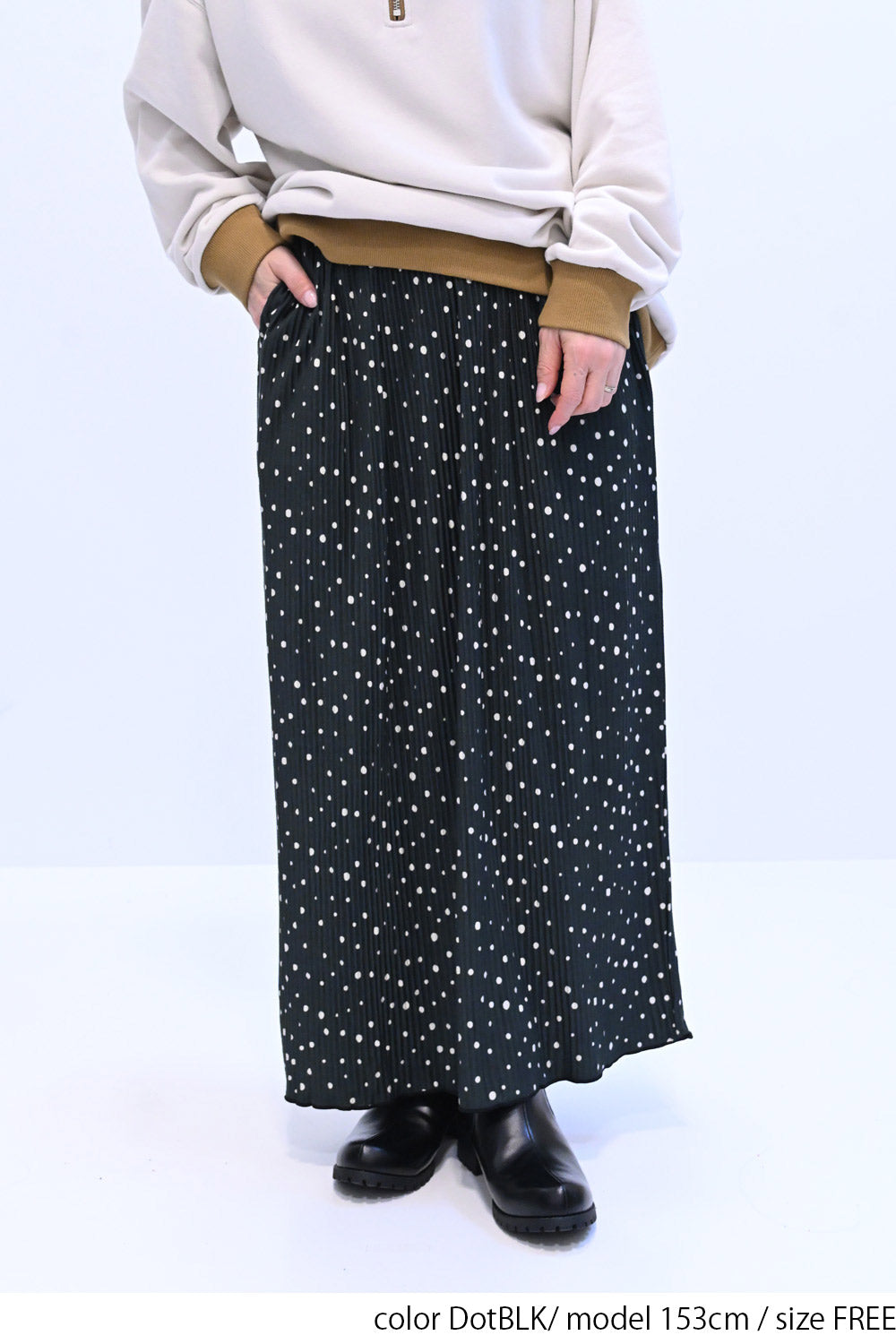 存在感のあるプリント×プリーツデザインなので、シンプルなトップスを合わせるだけでスタイルが決まります。