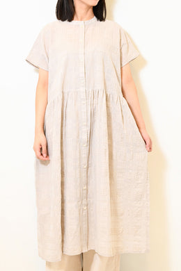 チェックポケ付きギャザーワンピース
