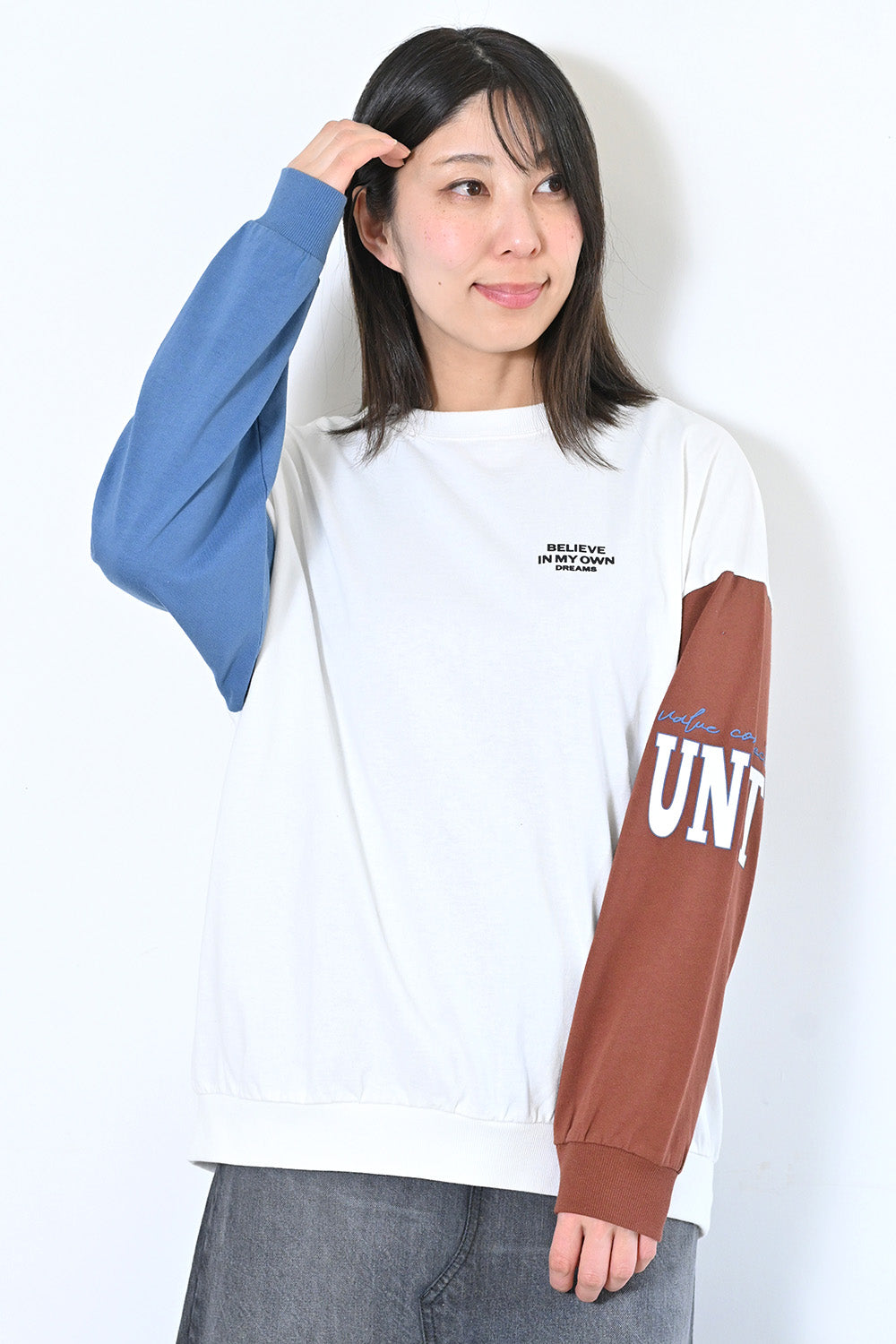 袖配色カレッジ風ロゴプルオーバー |