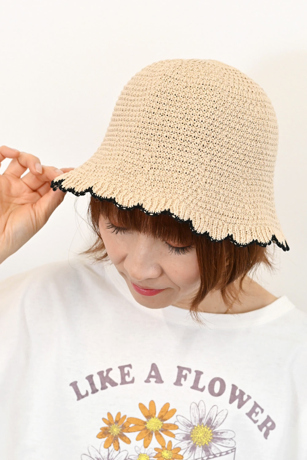 春夏のコーディネートにマッチする、程よく個性的なバイカラーのスカラップデザインがポイント。