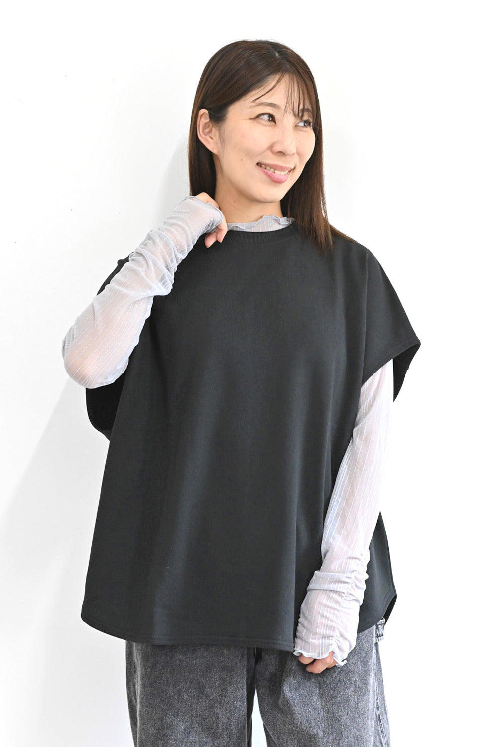 シアー素材が重ね着インナーに使いやすくスラブ素材が甘さを抑えカジュアルな仕上がりに。