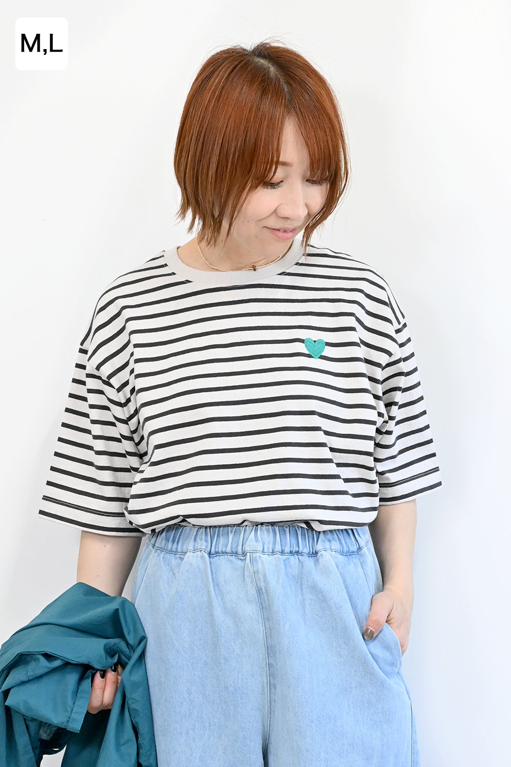 シンプルなゆったりTEEシャツにハートのワンポイントがアクセント。 1枚で着こなせる万能TEEシャツです。 選べるM・Lの2サイズ展開。 生地と刺繍の配色が9色それぞれ異なるので、お好みの1枚を見つけられるかも、、、!