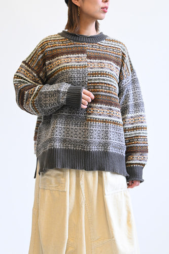 【CUBE SUGAR】9NMピーチヤーン切替ジャガードプルオーバー