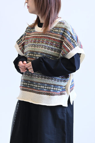 【CUBE SUGAR】9NMピーチヤーン2Wayジャガードベスト