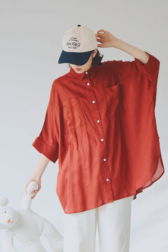 ≪SALE≫【夏ルックブック掲載item】レーヨンポケ付BIGシャツ