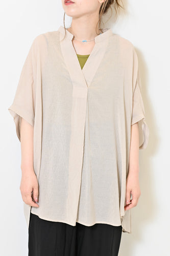 ≪SALE≫麻ブレンド多釦スキッパーブラウス