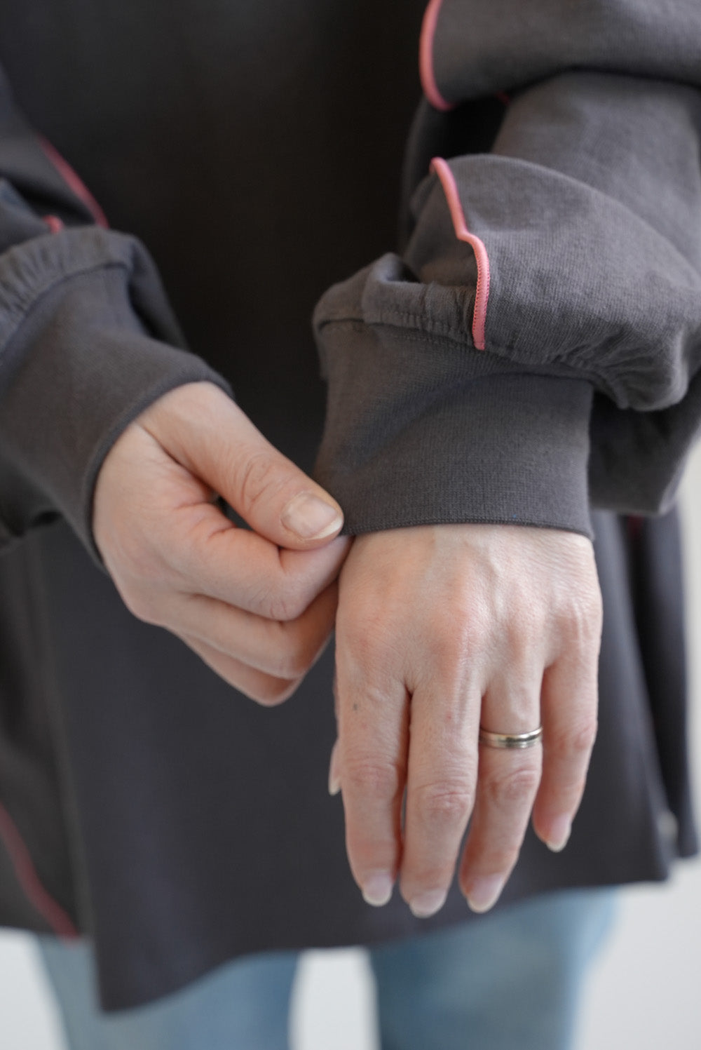 A simple yet expressive tunic top with subtly striking contrasting color melow.