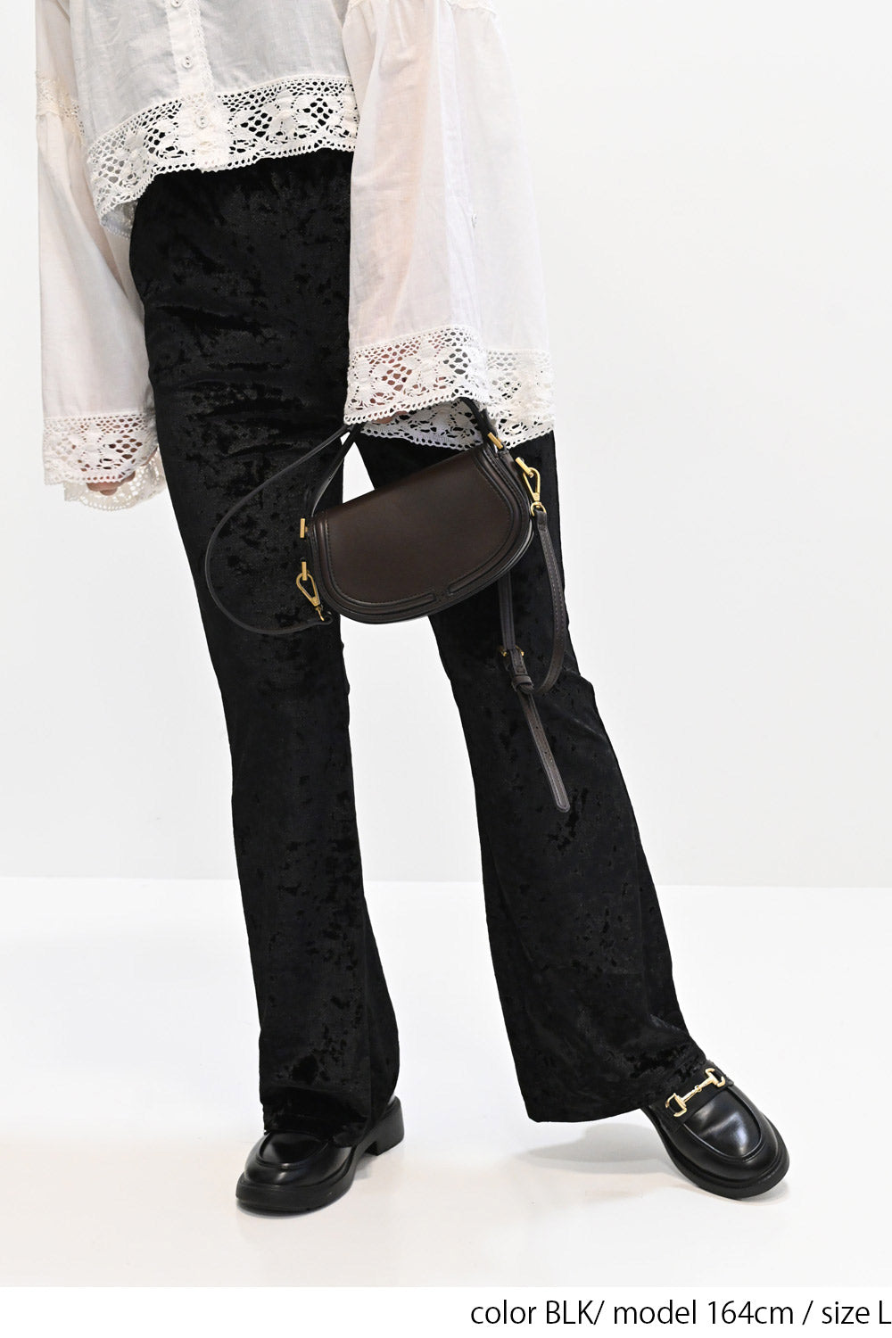 The moderate flare and elegant shine of the velour add a mature, refined touch to your outfit—highly recommended.