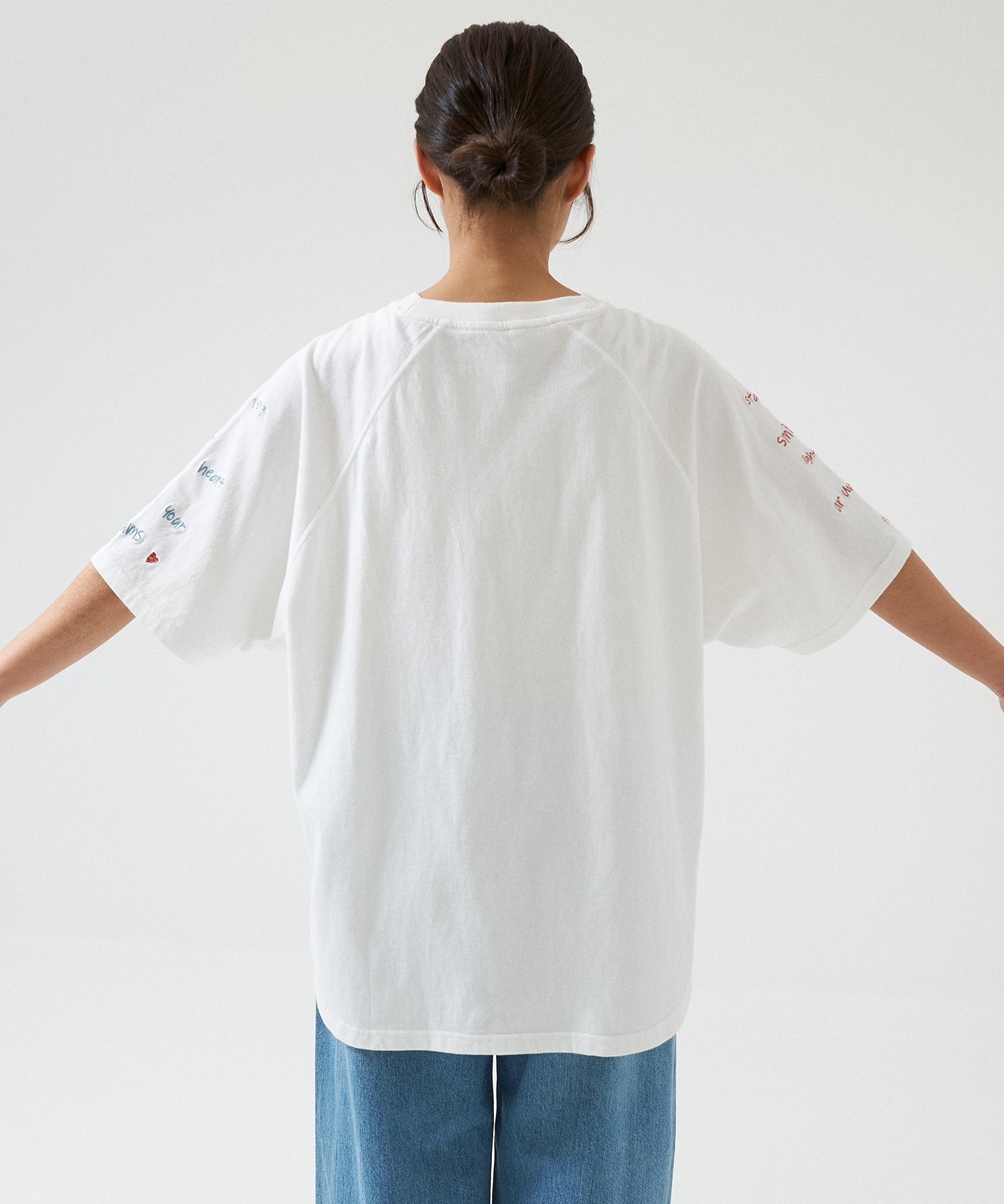 A tunic designed for a casual fit, accented with embroidery on the sleeves for a touch of detail.