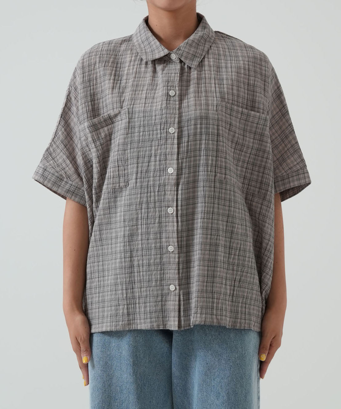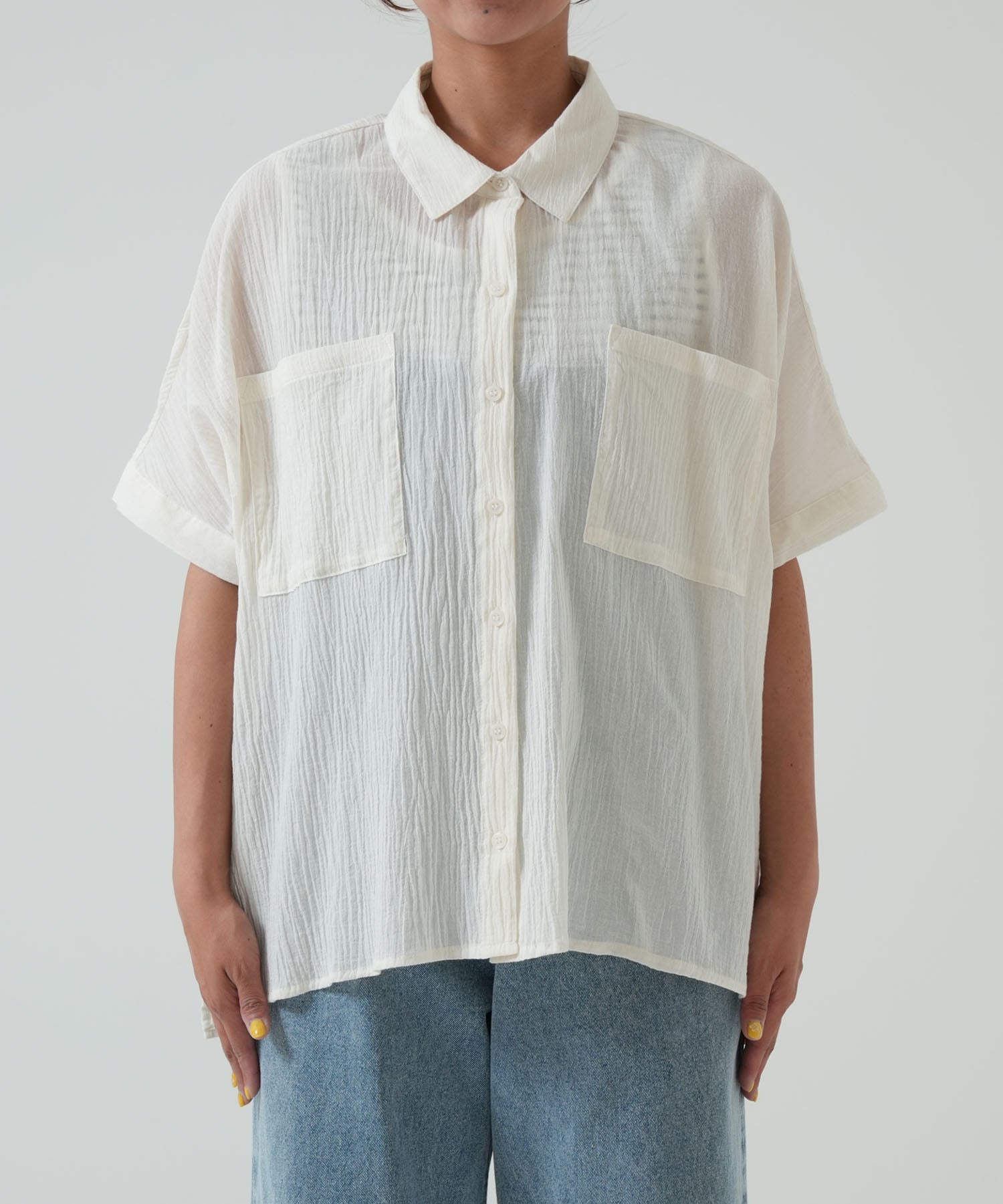 A front-button short-sleeve shirt featuring a lightweight feel and a wide silhouette.