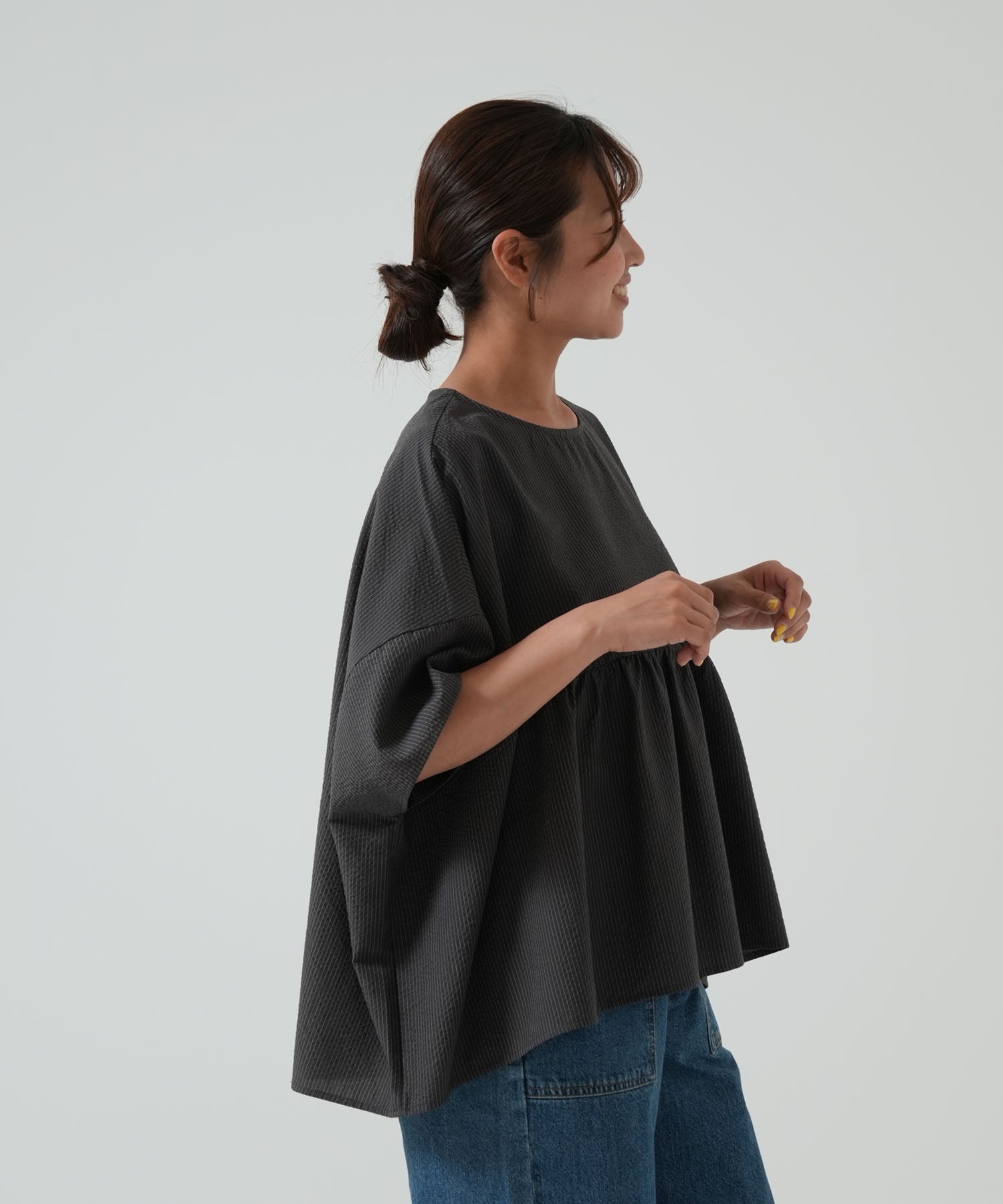 やわらかく軽やかに広がるギャザープルオーバー