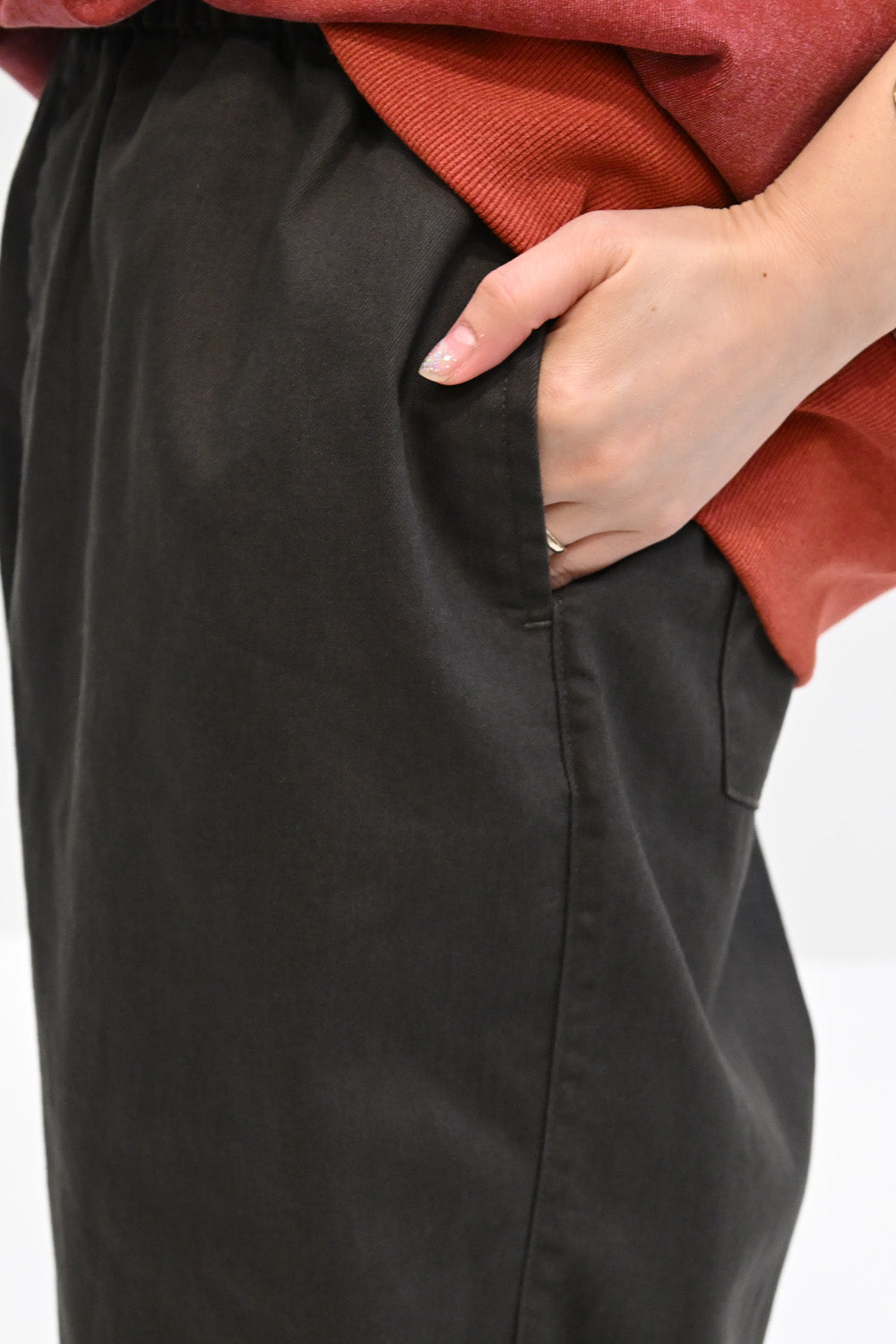 ストレッチ素材が快適な履き心地を叶えるシンプルワイドパンツ