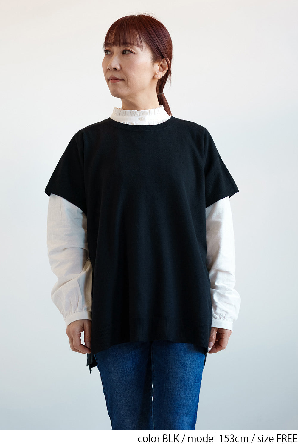 A lightweight knit poncho vest with a smooth texture that feels comfortable on the skin.