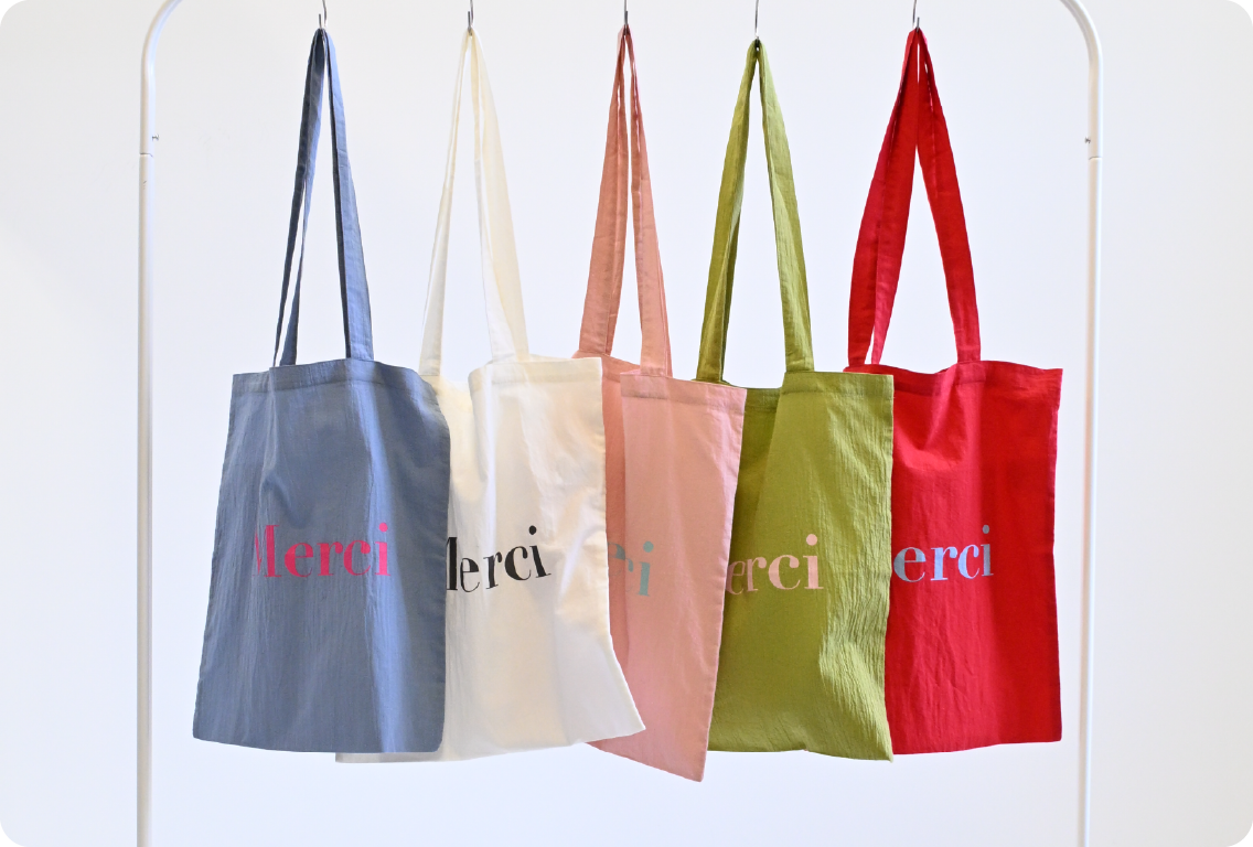 日頃の感謝の気持ちを詰め込んだ、色とりどりのトートバッグが登場!シンプルになりがちな秋冬コーディネートに華やかさプラスできる配色にエコバックとしても持ち運びしやすい柔らかな生地。肩がけし易い取手の太さや、たっぷり入る大きさなどこだわりがぎゅぎゅっと詰まった特別トートバッグ。各店舗、WEBサイトにて500円!期間限定販売です!
