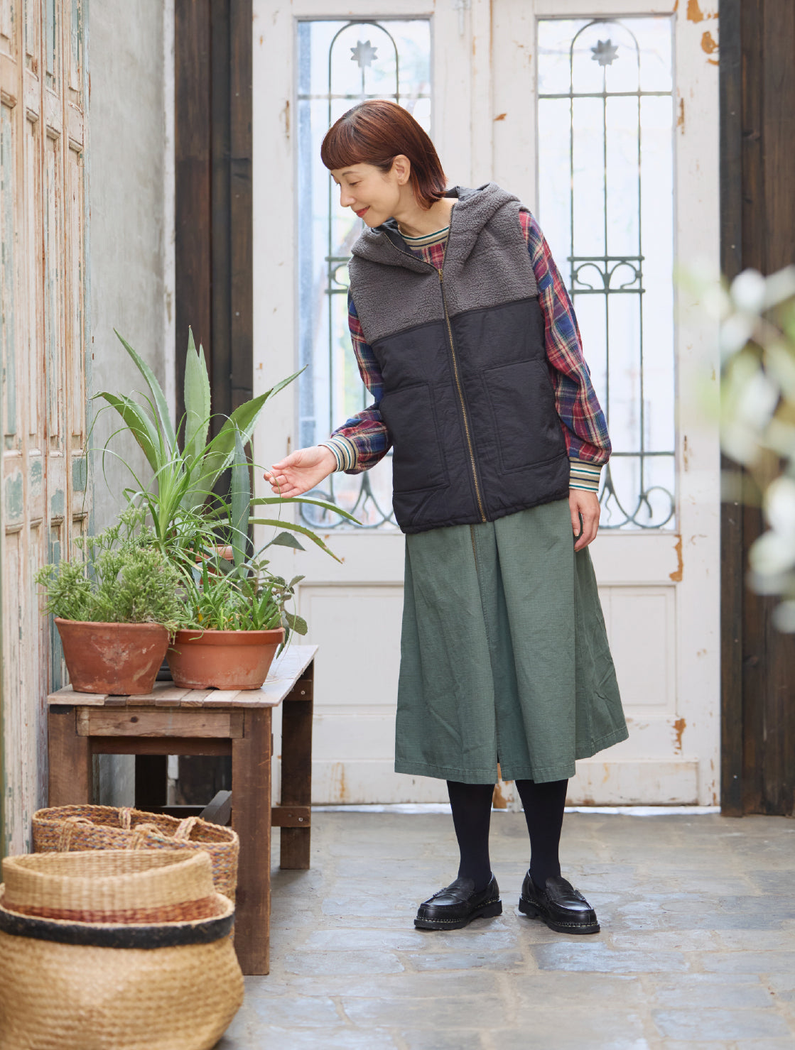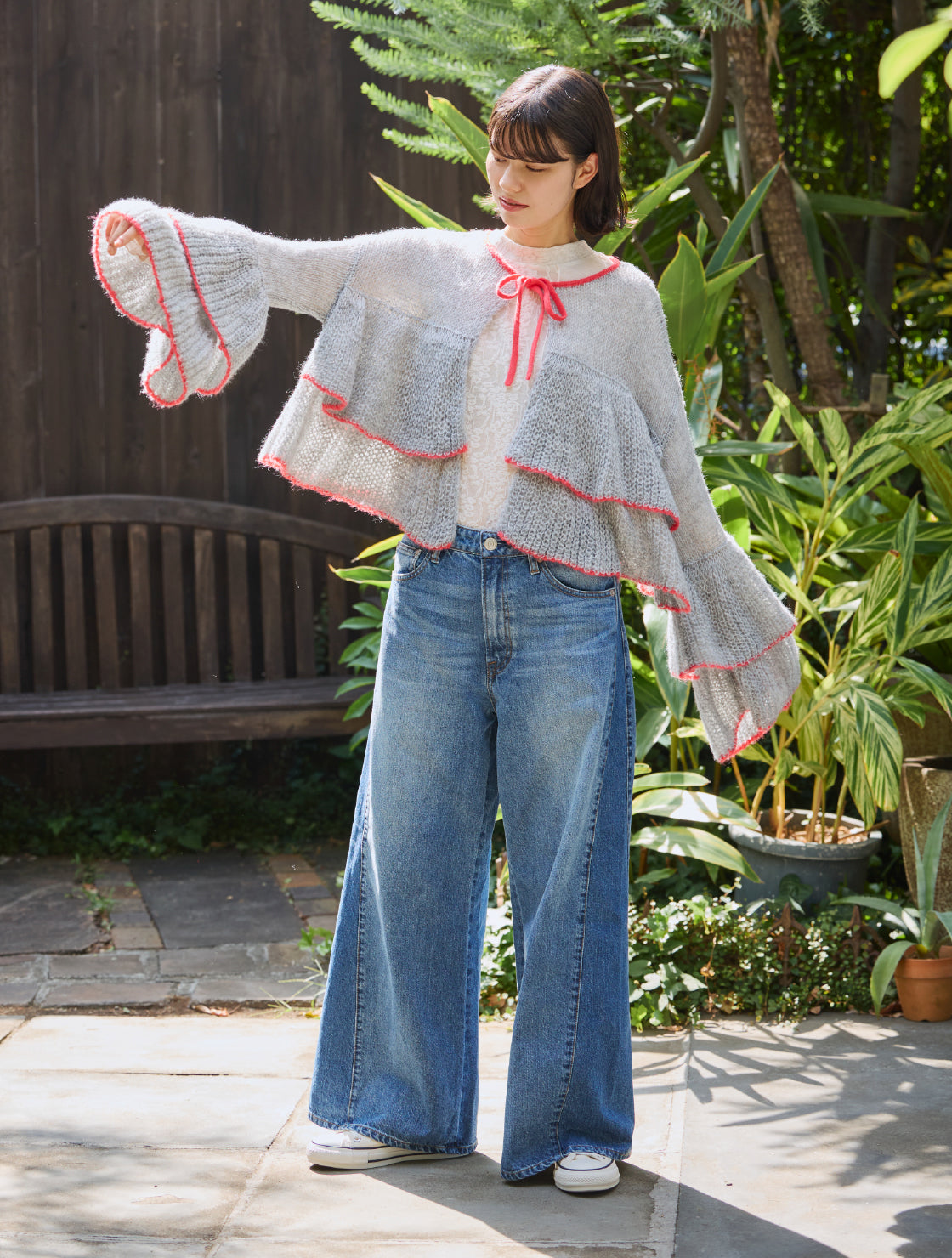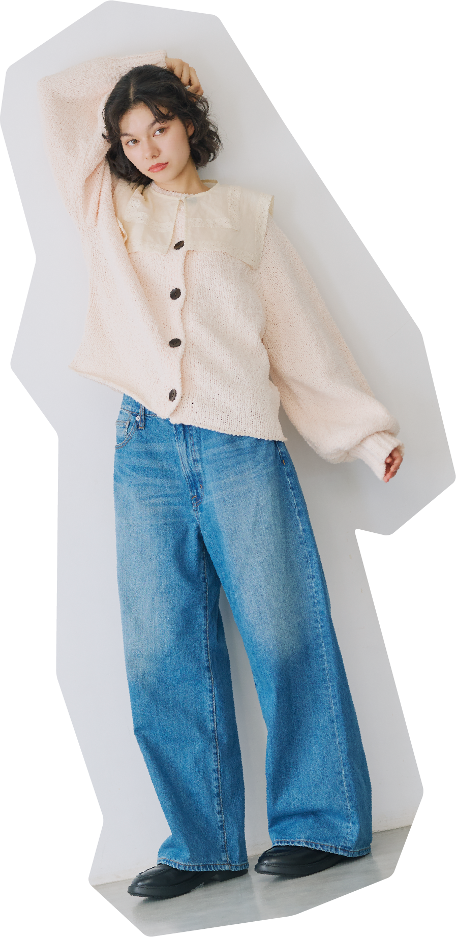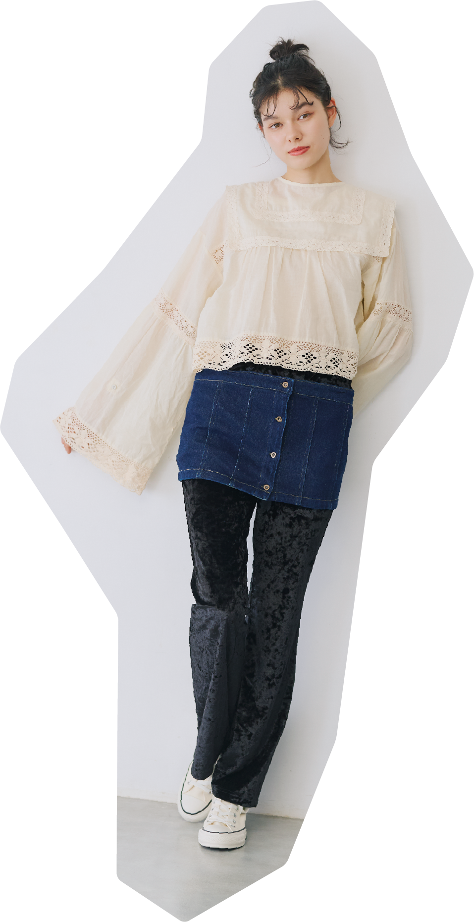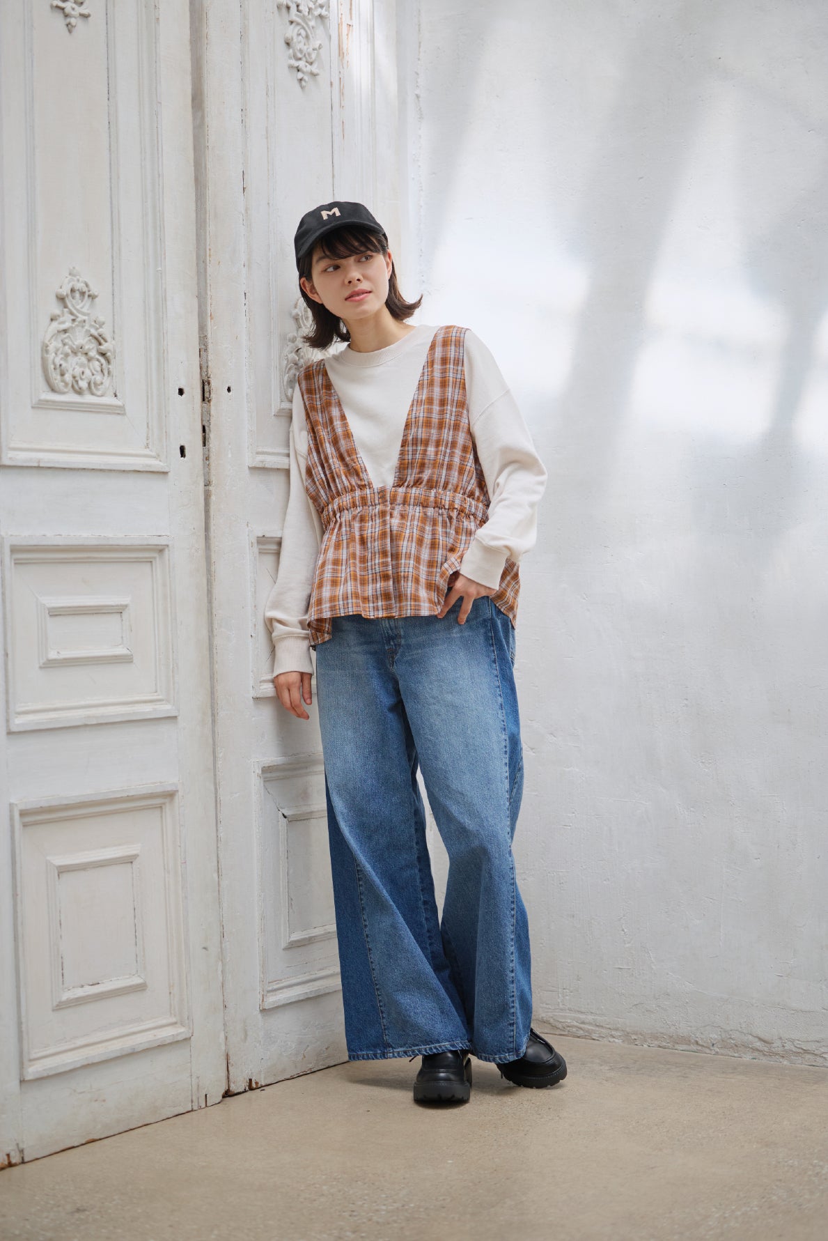 ちょっとの工夫でおしゃれな印象に。※ビスチェ=「2way denim vest」