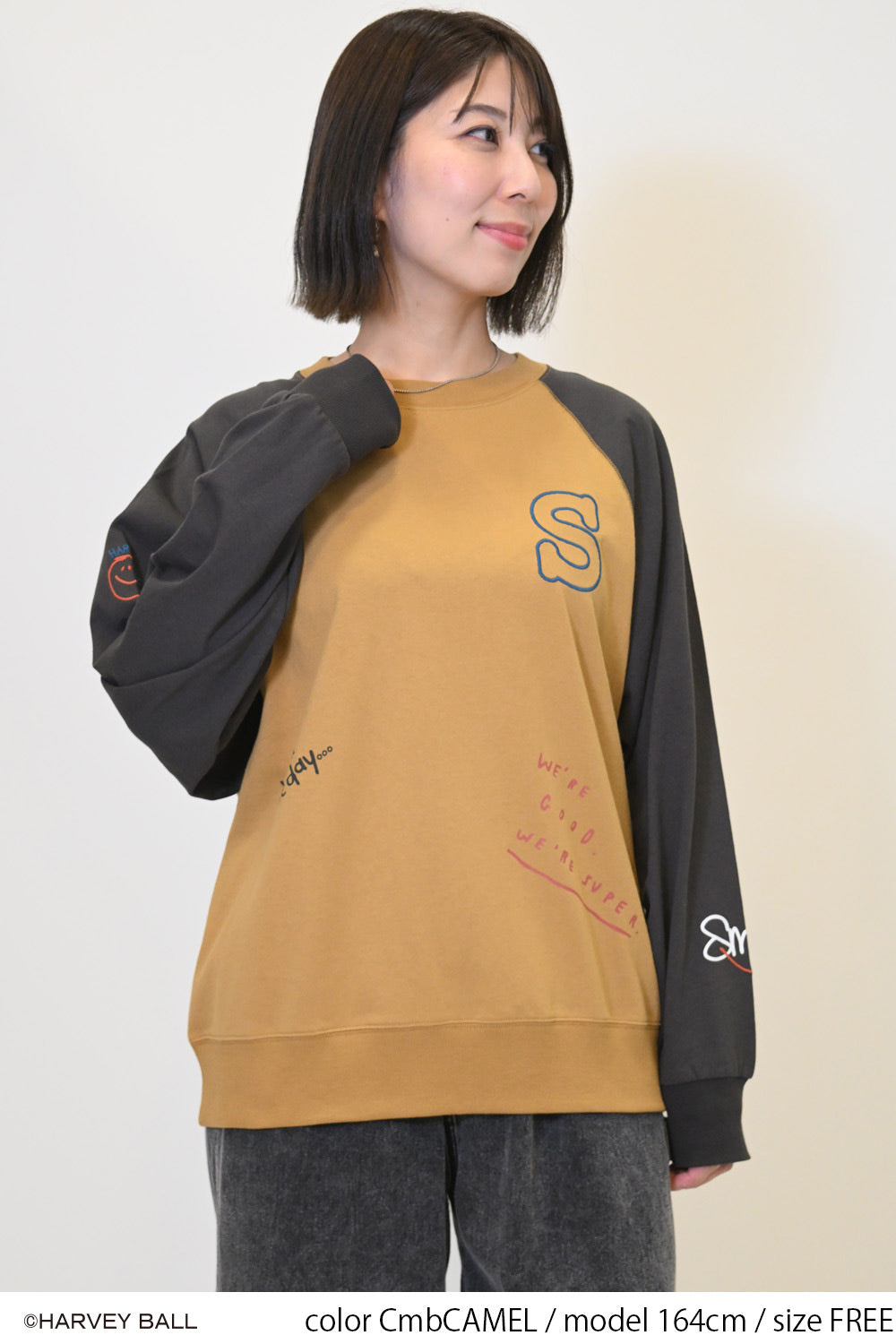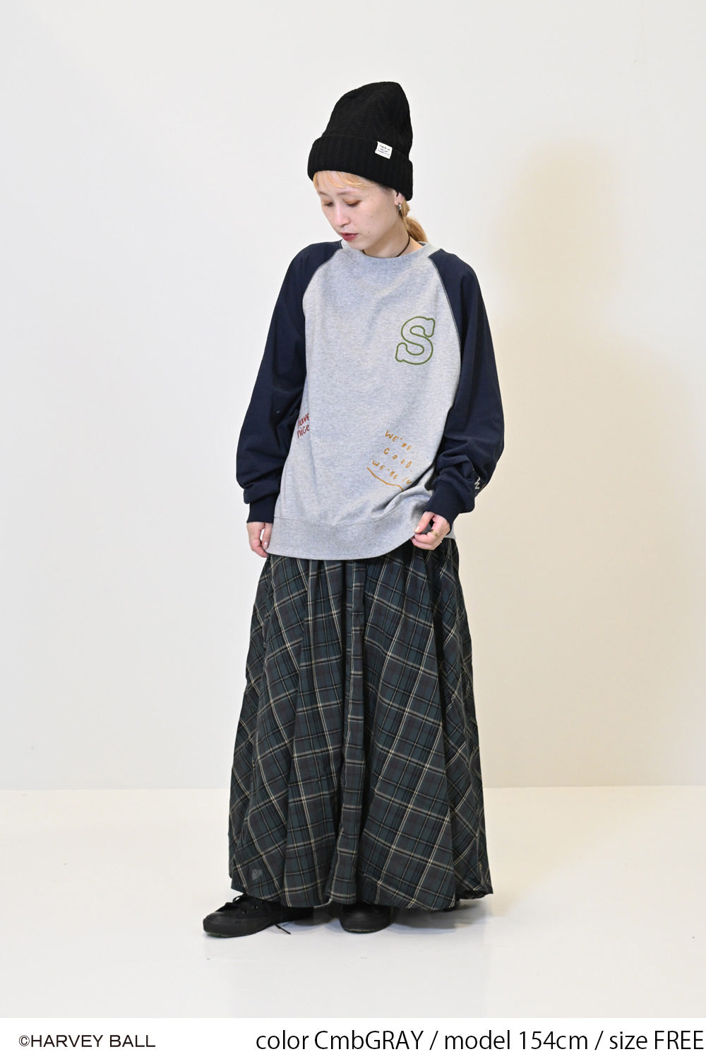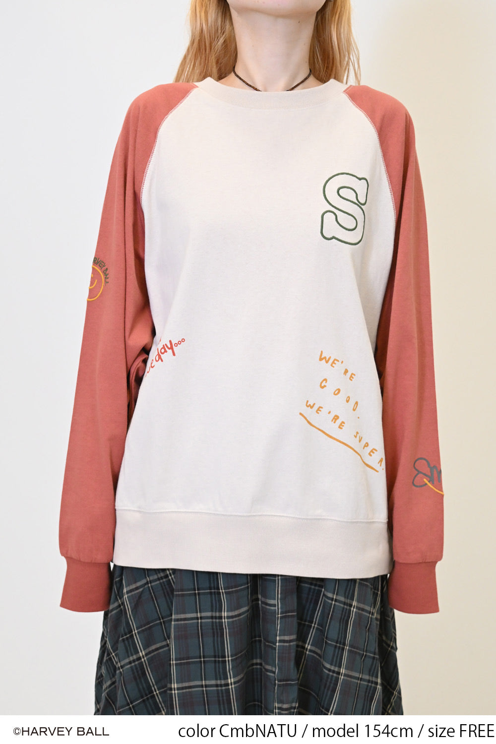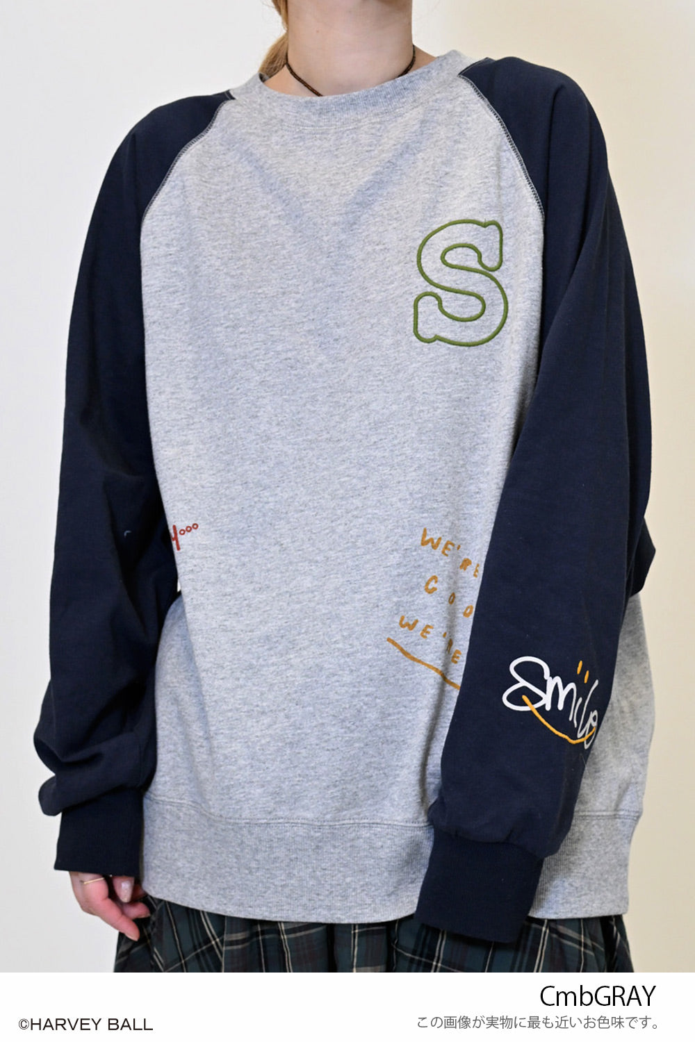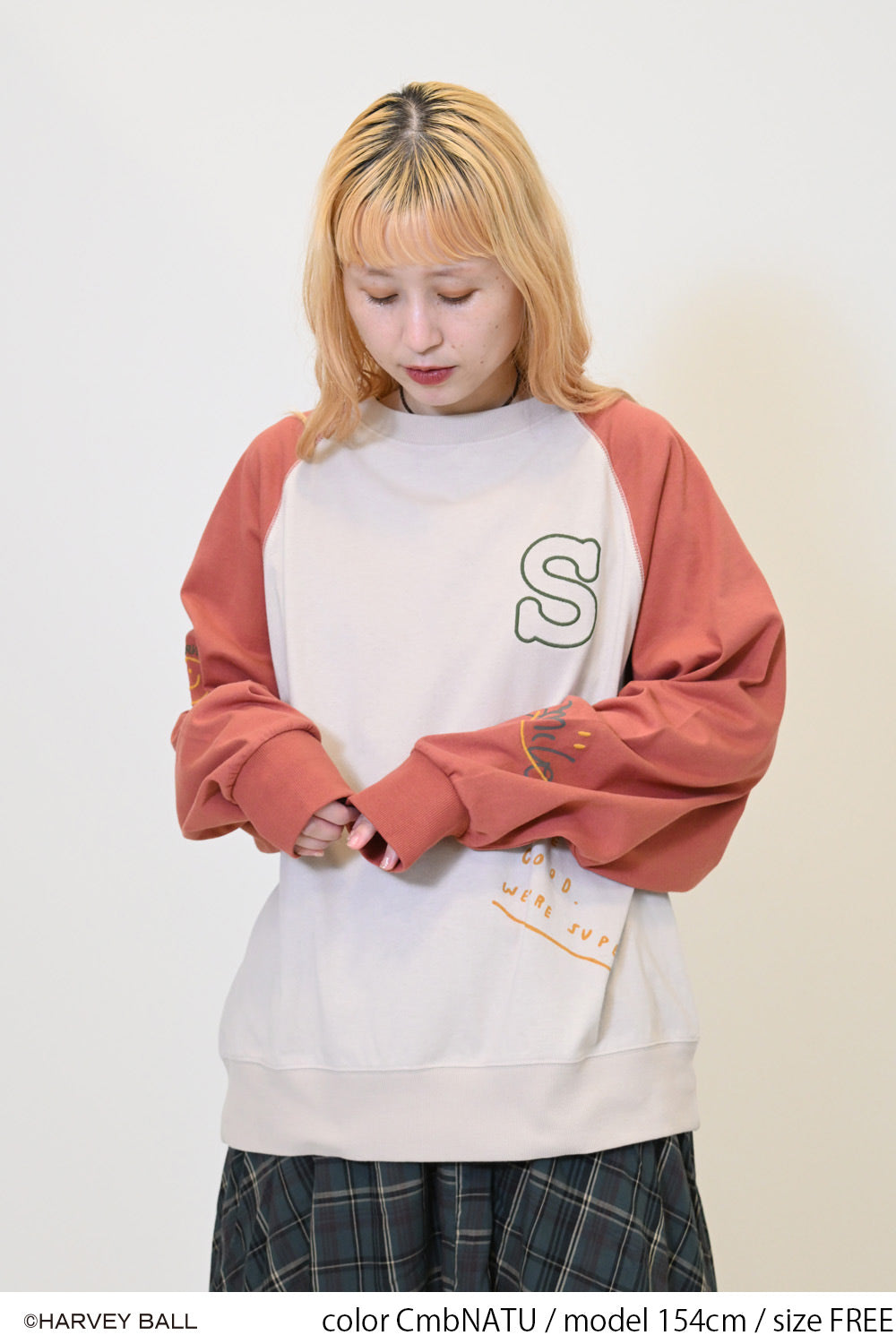Sの刺繍がポイントの配色ラグランプルオーバーです。