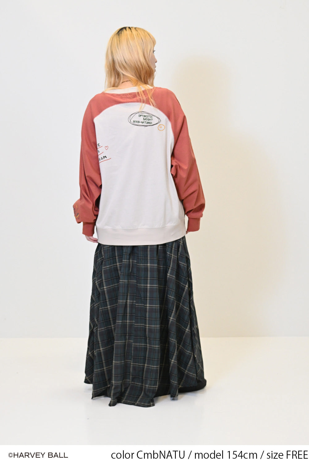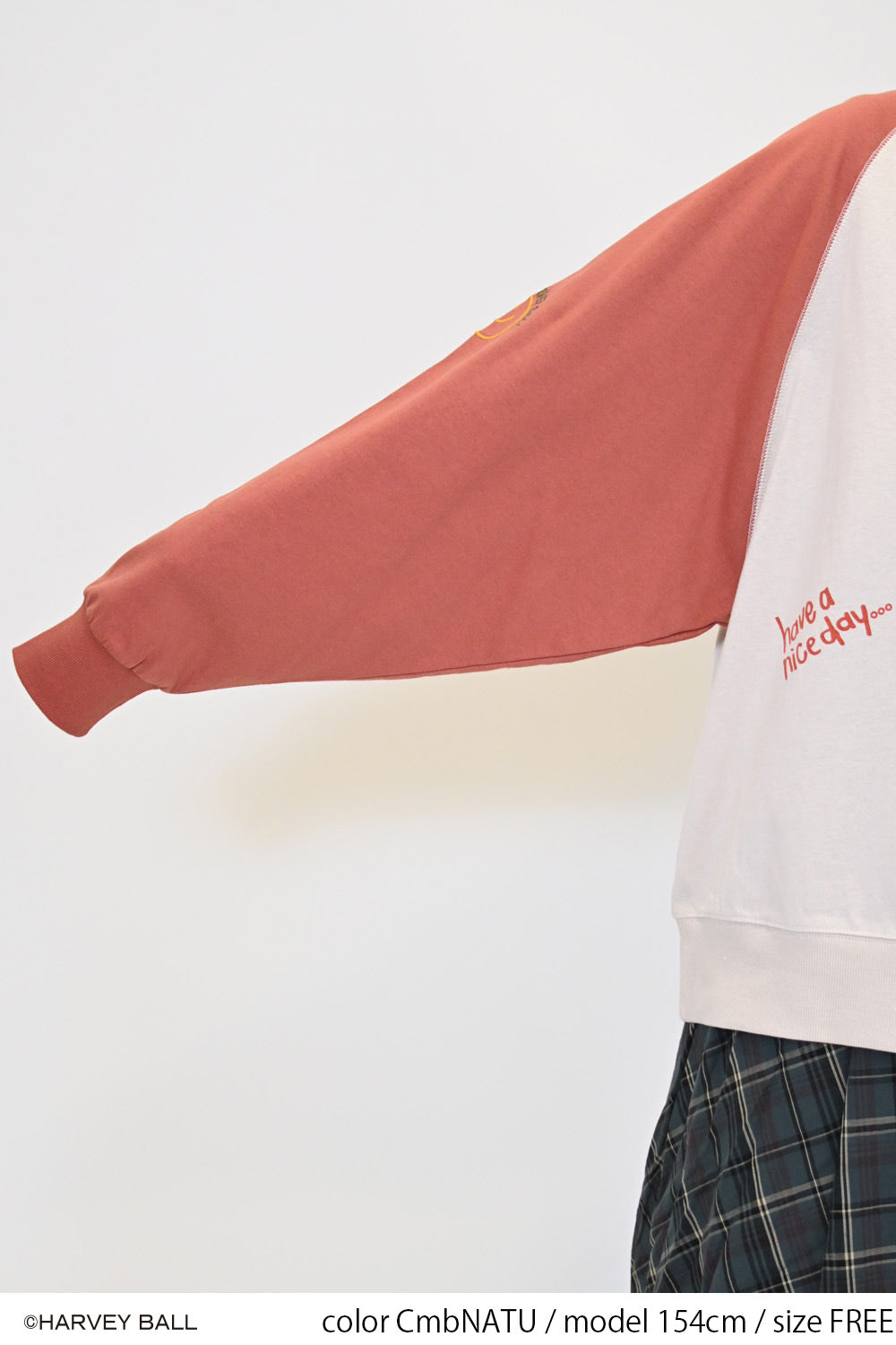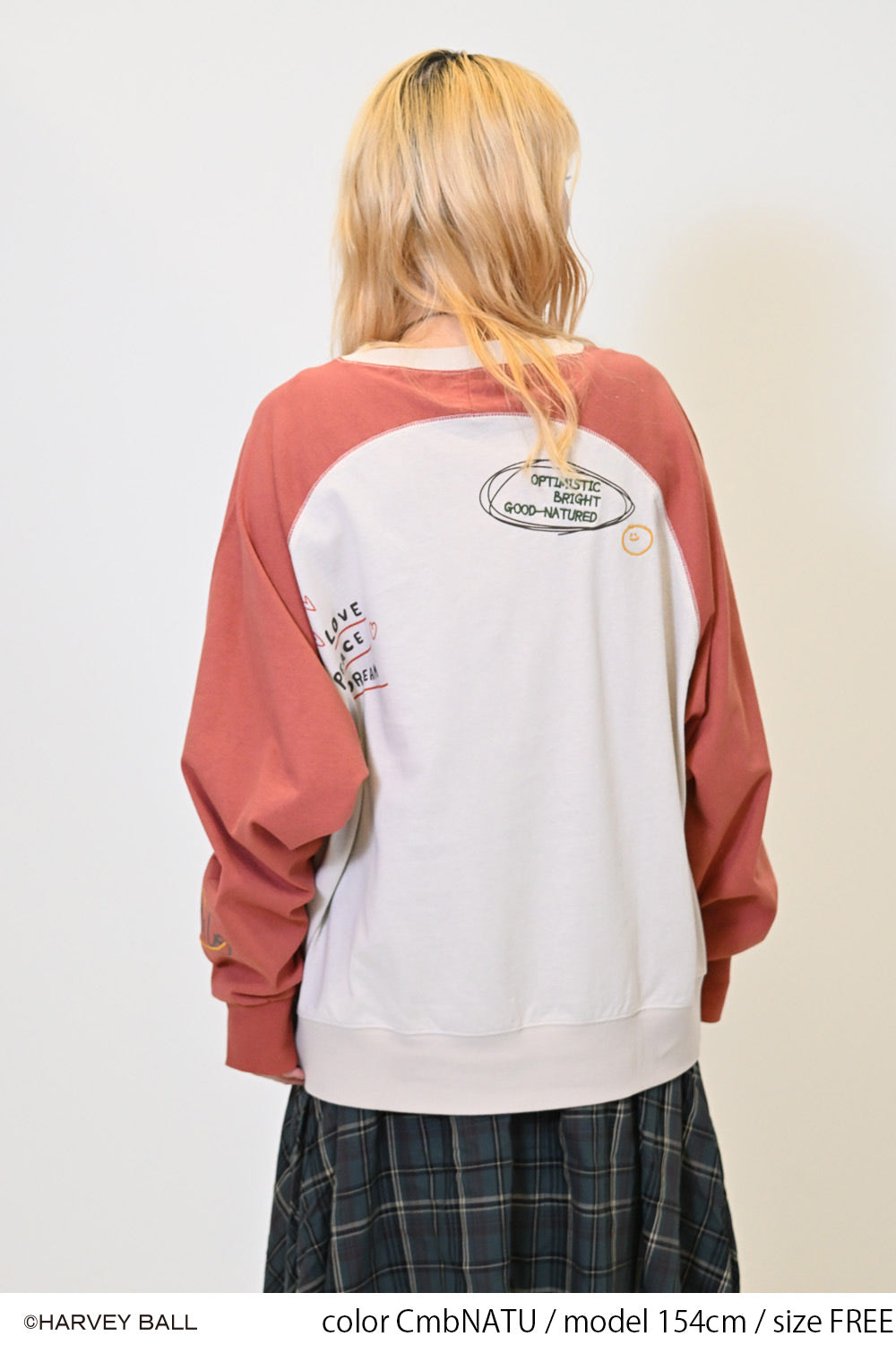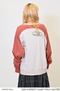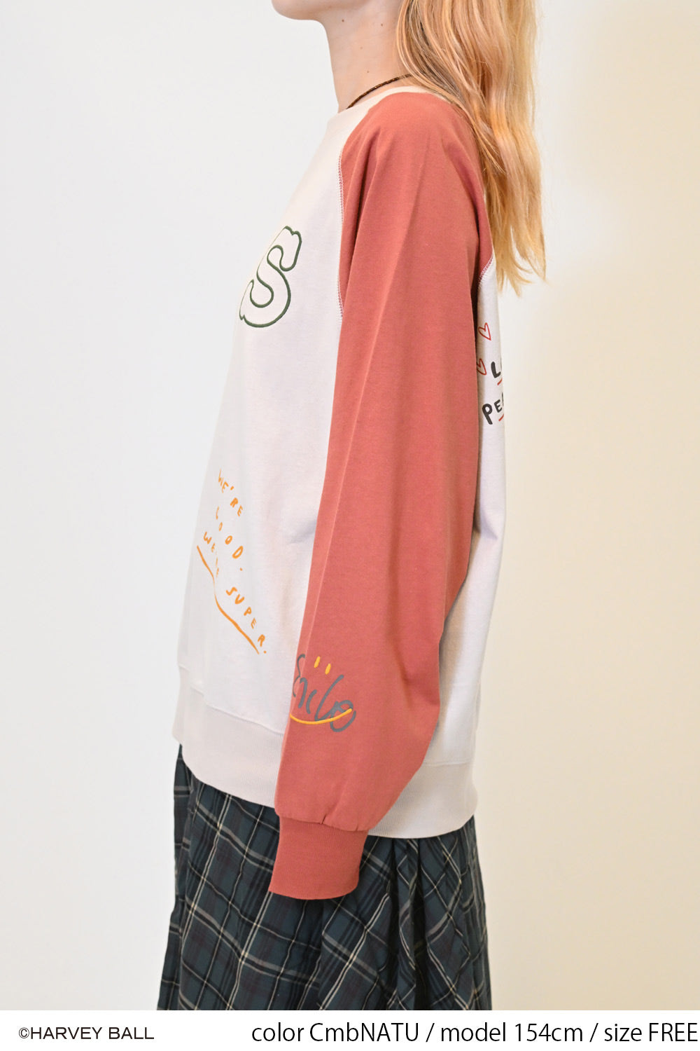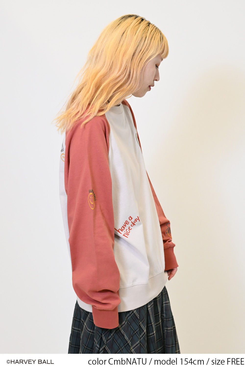 Sの刺繍がポイントの配色ラグランプルオーバーです。