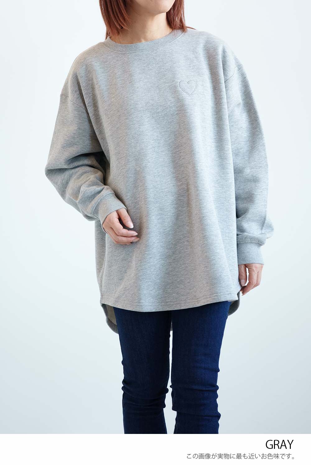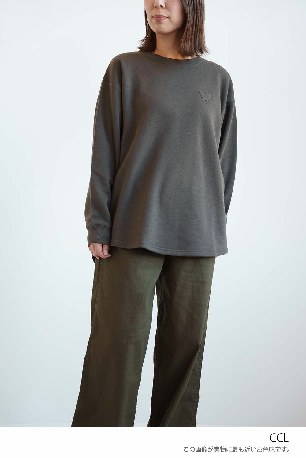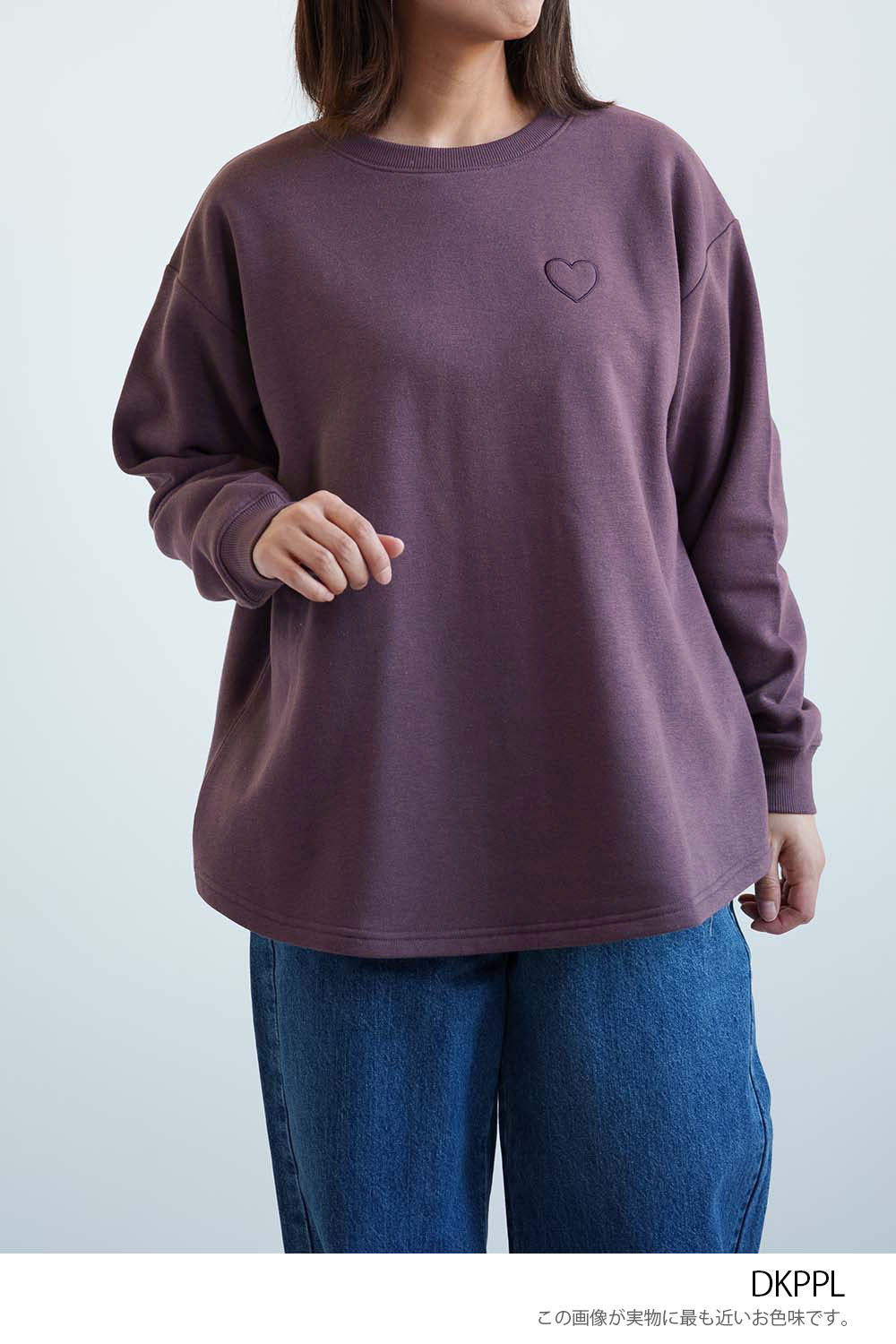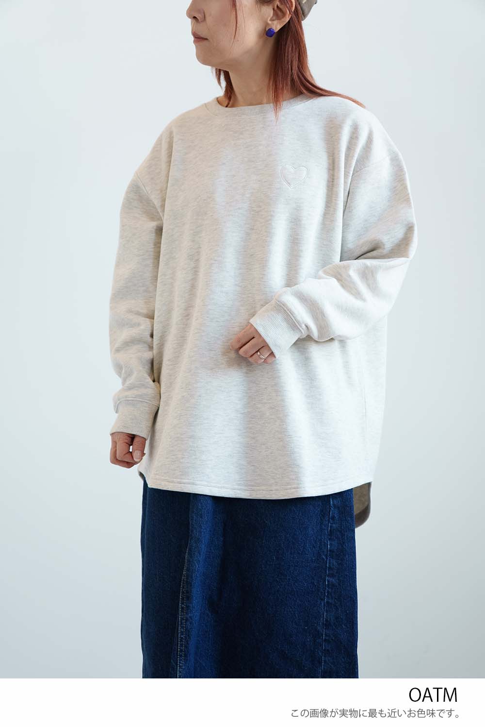 左胸にさりげないハートモチーフをプラスした裏起毛プルオーバー。