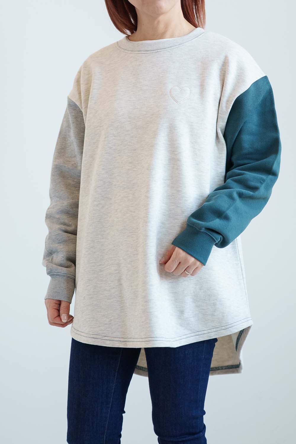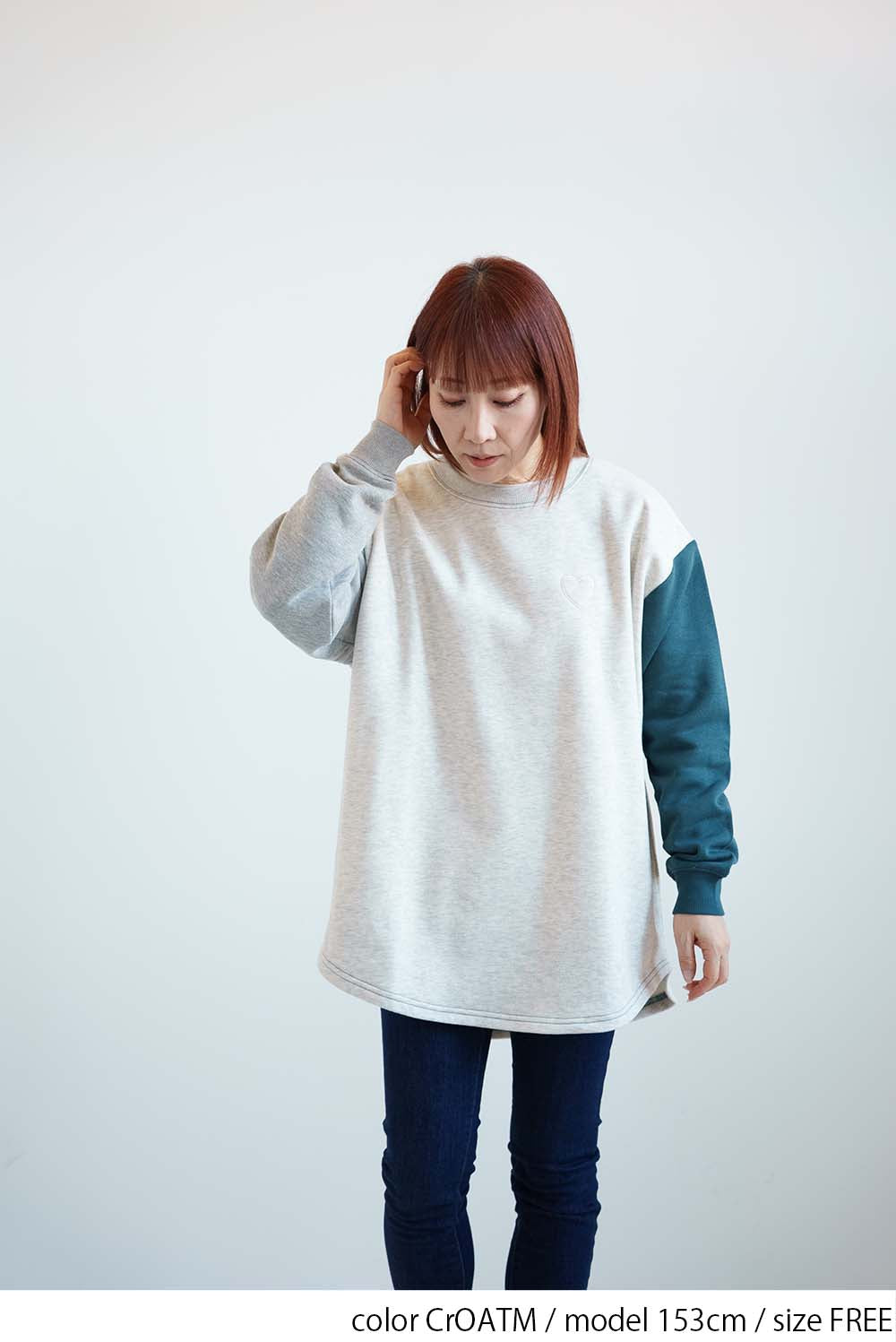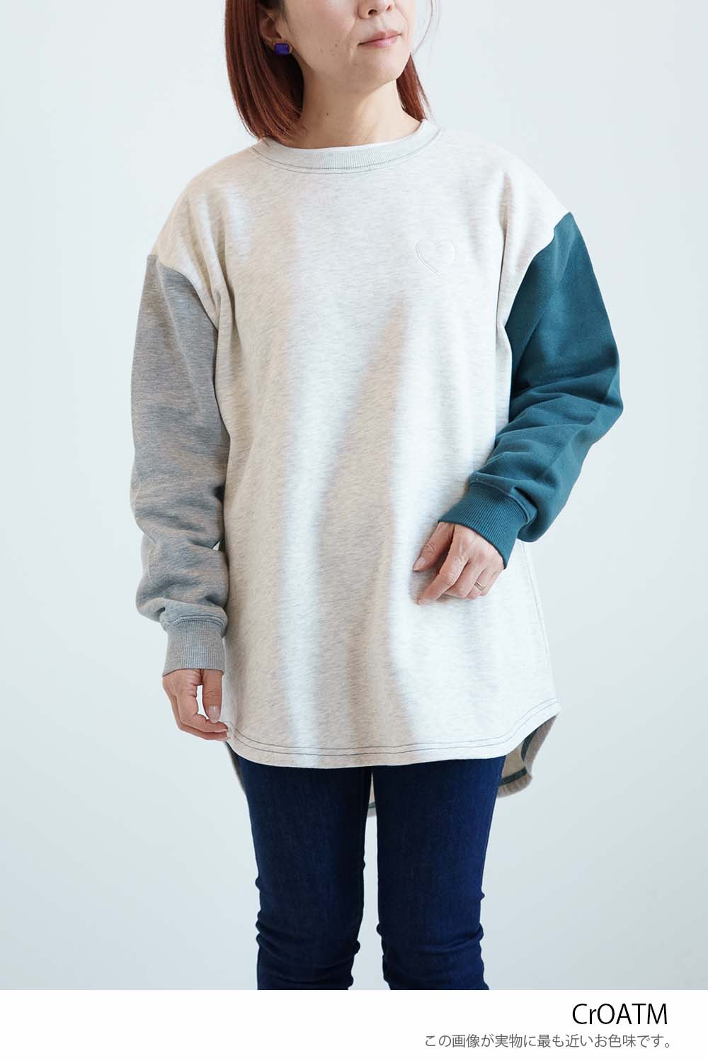 左胸にさりげないハートモチーフをプラスした裏起毛プルオーバー。